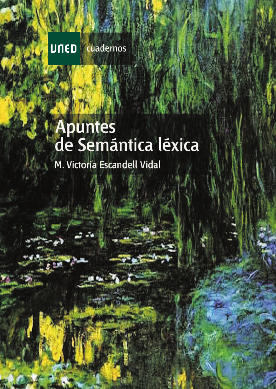 CUADERNOS DE LA UNED Apuntes de Semántica léxica M. VICTORIA ESCANDELL VIDAL UNIVERSIDAD NACIONAL DE EDUCACIÓN A DISTANCIA CUADERNOS DE LA UNED (0135278CU01A01) APUNTES DE SEMÁNTICA LÉXICA Quedan rigurosamente prohibidas, sin la autorización escrita de los titulares del Copyright, bajo las sanciones establecidas en las leyes, la reproducción total o parcial de esta obra por cualquier medio o procedimiento, comprendidos la reprografía y el tratamiento informático, y la distribución de ejemplares de ella mediante alquiler o préstamos públicos. © Universidad Nacional de Educación a Distancia Madrid 2007 Librería UNED: c/ Bravo Murillo, 38 - 28015 Madrid Tels.: 91 398 75 60 / 73 73 e-mail: libreria@adm.uned.es © M. Victoria Escandell Vidal ISBN: 978-84-362-5501-0 Depósito legal: M. 45.903-2008 Primera edición: septiembre de 2007 Primera reimpresión: octubre de 2008 Impreso en España - Printed in Spain mailto:libreria@adm.uned.es ÍNDICE 1. El estudio del significado léxico...................................................... 11 1.1. Semántica y significado ............................................................... 13 1.2. Objetivos de la Semántica léxica ................................................. 14 1.3. Las dificultades de una teoría del significado léxico ................. 16 1.3.1. Los principales problemas ................................................ 16 1.3.2. Algunas respuestas ............................................................ 19 1.4. El metalenguaje de la Semántica léxica...................................... 20 1.4.1. Unidades básicas: palabras, lexemas, lemas.................... 20 1.4.2. Convenciones de notación ................................................ 22 1.5. Significado, denotación y referencia........................................... 23 1.6. Tipos de significado...................................................................... 26 1.6.1. Significado descriptivo / significado no descriptivo........ 26 1.6.2. Significado léxico / significado gramatical ...................... 29 1.6.3. Significado literal / significado figurado.......................... 31 1.7. Consideraciones finales................................................................ 32 Lecturas complementarias................................................................... 34 2. Ambigüedad léxica ............................................................................. 35 2.1. Ambigüedad léxica ....................................................................... 37 2.1.1. Criterios para la distinción de significados ..................... 38 2.1.2. Clases de ambigüedad léxica: homonimia y polisemia... 41 2.2. Homonimia ................................................................................... 42 2.2.1. Tipos de homónimos ......................................................... 42 2.2.2. Criterios para la distinción de homónimos ..................... 42 2.3. Polisemia ....................................................................................... 44 2.3.1. Causas de la polisemia ...................................................... 44 2.3.2. Tipos de polisemia............................................................. 47 2.3.3. Significados y facetas ........................................................ 47 2.3.4. Significados y perspectivas ............................................... 49 2.4. Vaguedad....................................................................................... 49 Lecturas complementarias................................................................... 51 7 3. Relaciones de significado ................................................................. 53 3.1. Identidad y semejanza: Sinonimia .............................................. 55 3.1.1. ¿Existe realmente la sinonimia? ...................................... 56 3.1.2. Criterios para la identificación de sinónimos ................. 58 3.2. Inclusión........................................................................................ 63 3.2.1. Hiponimia/hiperonimia .................................................... 63 3.2.2. Meronimia/holonimia ....................................................... 66 3.3. Exclusión y oposición .................................................................. 71 3.3.1. Relaciones de exclusión o incompatibilidad ................... 71 3.3.2. Relaciones de oposición.................................................... 72 Lecturas recomendadas ....................................................................... 77 4. Configuraciones léxicas..................................................................... 79 4.1. Jerarquías...................................................................................... 81 4.1.1. Jerarquías taxonómicas .................................................... 83 4.1.2. Jerarquías meronómicas................................................... 88 4.2. Estructuras lineales ...................................................................... 90 Lecturas recomendadas ....................................................................... 92 5. El análisis del significado ................................................................. 93 5.1. Los requisitos del análisis del significado .................................. 95 5.2. El enfoque estructuralista y los campos léxicos......................... 97 5.3. Los postulados de significado...................................................... 100 5.4. Los enfoques cognitivos ............................................................... 103 Lecturas recomendadas ....................................................................... 108 6. El cambio de significado................................................................... 109 6.1. Cambios en el significado léxico ................................................. 111 6.1.1. Causas de los cambios de significado.............