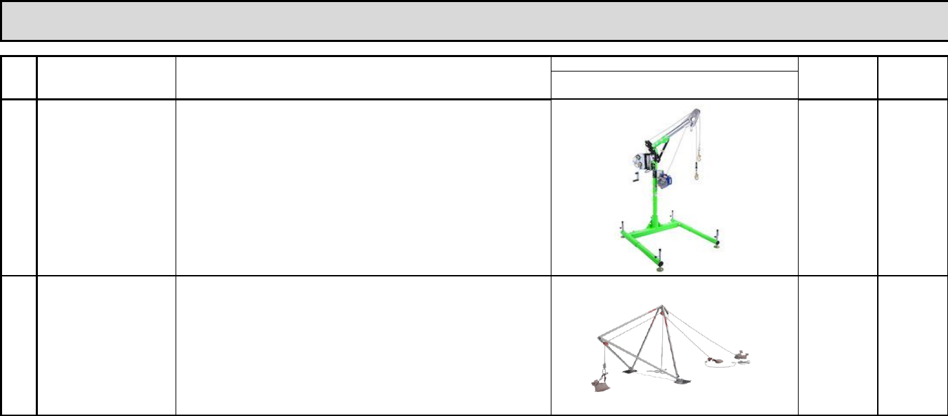 IMAGEN EQUIPOS 1 BRAZO PESCANTE PARA ESPACIOS CONFINADOS SISTEMA DE GRÚA AVANZADO DE 5 PIEZAS El sistema de base y brazo de pescante incluye un mástil superior de desplazamiento ajustable de 29,2 cm a 69,8 cm (11 1/2 in a 27 1/2 in), un mástil inferior liviano de 83,8 cm (33 in) y base liviana de tres piezas. Incluye soporte de montaje del cabrestante, peso: 45,5 kg (100 lb).sobre el usuario a 4 kN (900 lb) o menos, soporte de liberación rápida, mástiles superiores e inferiores avanzados. SOPORTE DE ADAPTADOR DEL CABESTRANTE/SRL PARA PLANO INCLINADO DE 30 GRADOS, para conectar el cabrestante o el SRL al mástil superior de desviación de 29,2 a 69,8 cm (11-1/2 - 27-1/2 in), mecanismo extraible, 18 m (60ft) de longitud en acero inoxidable. Anticaidas autoretractil, cable en acero inoxidable longitud 15 m ( 50 ft) SRL de 3 vias. UNIDAD 6 2 BIPODE PARA TRABAJO Y RESCATE EN ESPACIOS CONFINADOS Bipode que, usado como un componente de un sistema de recuperación, permite dejar caer o la elevación de cargas, posicionándose en el borde de una pared de evitar el roce de las cuerdas contra obstáculos. Gracias a la estructura del movimiento giratorio, facilita la fase final de la seguridad de la carga recuperada. Equipado con pies reversibles que garantizan la perfecta adherencia al suelo, tanto en superficies resbaladizas (arañó lado) tanto en superficies lisas (lado de rueda). Se quita fácilmente transportables y el hombro en su bolsa. Alta calidad, producido completamente en Italia! UNIDAD 6 OBJETO: CONTRATAR LA COMPRA VENTA DE EQUIPOS DE ESPACIOS CONFINADOS PARA LOS SIGUIENTES CENTROS DE FORMACION: CENTRO DE LA INNOVACIÓN, LA AGROINDUSTRIA Y LA AVIACIÓN; ANTIOQUIA, 2.) CENTRO INDUSTRIAL DE MANTENIMIENTO Y MANUFACTURA; BOYACÁ, 3.) CENTRO DE GESTIÓN INDUSTRIAL; DISTRITO CAPITAL, 4.) CENTRO DE INDUSTRIA Y CONSTRUCCIÓN; TOLIMA, 5.) CENTRO DE LA CONSTRUCCIÓN Y, 6.) CENTRO AGROPECUARIO DE BUGA; VALLE PARA LA VIGENCIA 2017 LOTE I EQUIPOS DE RESCATE PARA ESPACIOS CONFINADOS C a n ti d a d s o lic it a d a Item Descripción del elemento Caracterización U n id a d d e m e d id a 3 TRÍPODE PARA TRABAJO Y RESCATE EN ESPACIOS CONFINADOS El trípode diseñado para trabajar y rescate de espacios confinados, cabeza del trípode en alecion de aluminio de alta resistencia, patas telescópicas totalmente ajustables. Regulable de 175cm a 255cm a la cabeza del trípode 2.31 m bajo la cabeza del trípode. Posee dos puntos de anclaje con anillo de giro integrado para evitar las peligrosas torsiones laterales. Esos anillos permiten montar sistemas de polipastos, con dos poleas de acero inoxidable en la parte superior para poder montar sistemas de polipastos por malacate, winche o para montar un sistema retráctil anti caídas. Cada polea está equipada con un pin de seguridad para evitar que el cable se salga accidentalmente de la polea. Permite ajustar un retráctil para detención de caídas y un winche o malacate al mismo tiempo, as patas del trípode se controlan por mecanismo interno de bloqueo en la cabeza del trípode lo que previene que las patas colapsen en caso de que el trípode se mueva durante su uso así poderlo utilizar sobre superficies con tierra.las zapatas esta sobre suela de goma para aumentar la fricción y la estabilidad, bebe incluir soporte para la instalación de winche o malacate fácil de instalar, con dispositivo de recuperación diseñado para detención de caídas. Equipado con gancho de cierre giratorio. Para uso vertical y protección de caídas de personal con pesos superiores a 136 kg. Lineas SRL con sistema de rescate cable de acero galvanizado de 5mm. Certificación ANSI Z359.1, EN 795 y regulaciones aplicables OSHA UNIDAD 6 4 SKEDCO/CMC RESCUE DRAG- N-LIFT HARNESS Debidoaqueexistelanecesidaddeundispositivodeextracciónrápidacuandolainmovilizacióndel acolumnavertebralnoesunapreocupación,elrescateCMC/SKEDCODrag-N- LiftHarness™fuedesarrolladoydiseñadocomounmediopararápidamentepaqueteyextraerunp acientedeunespacioconfinado.Permitequeelsocorristaproporcioneunatécnicadecargarápida quepermitaqueelpacienteseempaquedemaneraeficienteyseguraparaunaelevaciónvertical,u naextracciónhorizontalounaextracciónporarrastre.Elalmacenamientocompacto,lafacilidadde usoylaflexibilidadeneltransportehanhecholascamillasSked®popularesentodoelmundo.Lahoj adearrastreestáconstruidadeplásticopesadodedeslizamientoE- Zquesevuelverígidocuandosecurvaalrededordelpaciente.Unavariedaddemanijasycorreaspe rmitenquelacamillaseatransportadallevando,levantando(verticaluhorizontalmente)deunsiste madelacuerda,otiradaconlacamilladeslizándoseensusuperficieinferiorlisa.Enelcasodequelain movilizacióndelacolumnavertebralesnecesaria,eldispositivoescompatibleconelOregónSpine SplintSystem(OSS)ycuellocervical. UNIDAD 6 5 MANIQUÍ PARA RESCATE Maniquí Simulador que permite mantener la realidad de la formación, Totalmente articulado, La cabeza y el cuerpo se construyen de denso vinilo flexible, en color natural, robusto y resistente al agua. Con punto Conexión dorsal, con traje de neopreno de 3 mm de cuerpo completo 18,7 KN (4,200 lb-f), 6 pies 1 pulgada (183 cm) de altura, 75 kg de peso. UNIDAD 6 6 CAMILLA DE RESCATE SKED Camilla de Rescate Sked Descripción:: Camilla fabricada en plastico de alta resistencia, para ser usada en rescates aereos en espacios confinados y edificios. Brinda proteccion al paciente. El kit incluye una mochila de nylon para transportarla en color narajna con cintas para usar tipo back pack.Ademas incluye 1 mosqueton de acero y 2 cintas planas. Su peso aproximado es de 9kgs Material:: Plastico UNIDAD 6 7 TRIÁNGULO DE EVACUACIÓN TR – W Certificación: CE EN 1497 / CE EN 1498 Diseñado para evacuar heridos en vertical o en horizontal imposibilitados de caminar, Grupo de hebillas pre-ajustadas, permiten socorrer desde niños (a partir de 2 años) hasta adultos. Este triángulo de evacuación permite transportar la víctima en los hombros del rescatista para desplazarse e