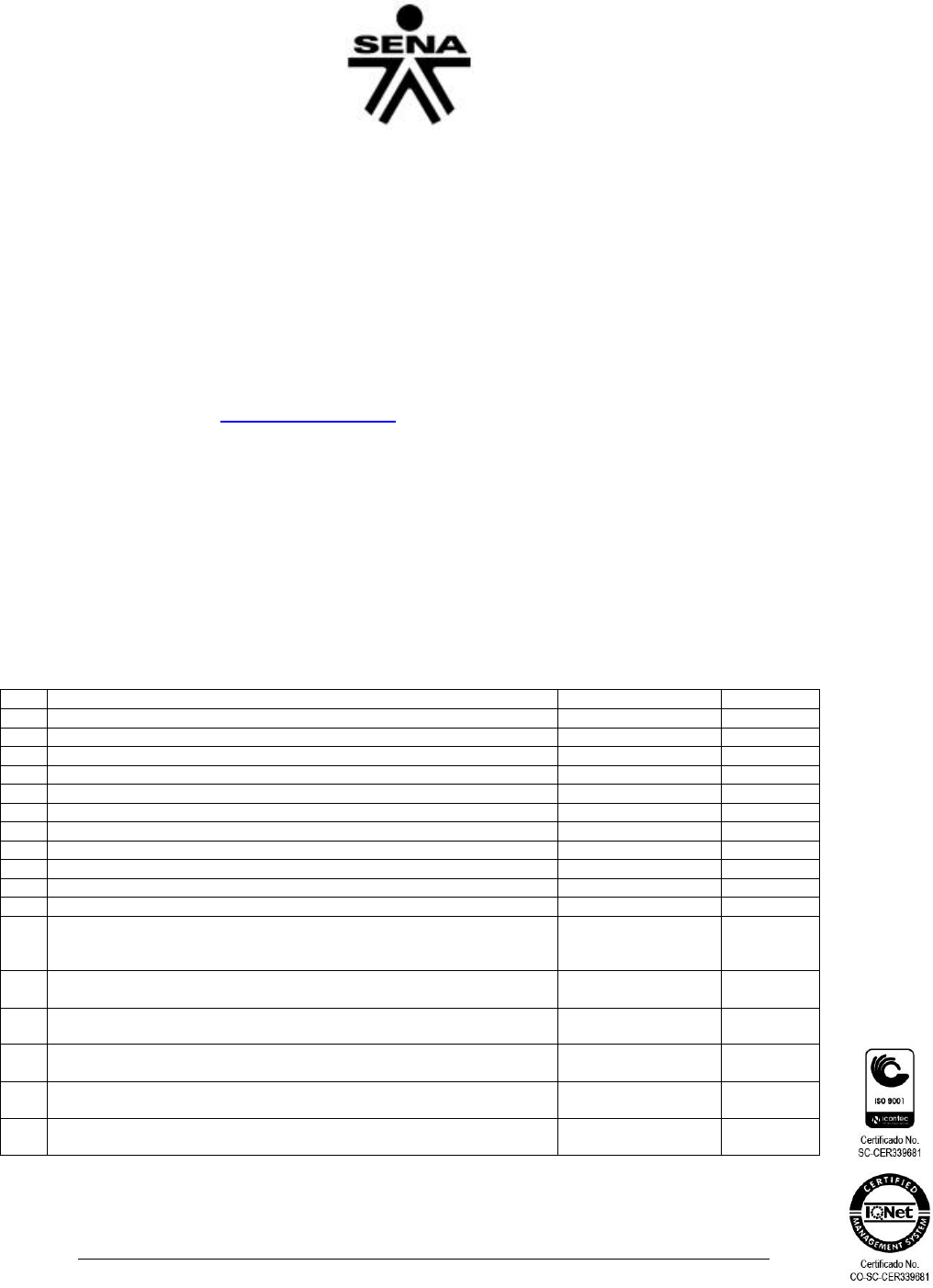 SOLICITUD DE INFORMACION PARA ESTUDIO DE MERCADO Ministerio de Trabajo SERVICIO NACIONAL DE APRENDIZAJE Regional Sucre Carretera Troncal de Occidente en la Vía Sincelejo Sampuès Kilometro 5 – Corregimiento de la Gallera Municipio de Sincelejo. Tels: 2800273 -2800596 Fax: 2800289 www.sena.edu.co - Línea gratuita nacional: 01 8000 9 10 270 GD-F-011 V04 Pag 1 El Servicio Nacional de Aprendizaje SENA, de conformidad con los principios de transparencia para la contratación, convoca públicamente a todos los interesados a participar con su pre-cotizaciones, como parte del estudio de mercado a realizar del proceso que tiene por objeto: CONTRATAR EL SUMINISTRO DE MATERIALES DE FORMACION PARA LOS PROGRAMAS TECNICOS Y COMPLEMETARIOS DEL AREA AGROPECUARIA DEL CENTRO DE LA INNOVACIÓN LA TECNOLOGÍA Y LOS SERVICIOS Y PROGRAMAS SENA EMPRENDE RURAL, DE LA REGIONAL SUCRE, VIGENCIA 2020. El desarrollo de la presente contratación, los proponentes podrán comunicarse con el SENA Regional Sucre, y así informarse de todos los aspectos relacionados con ella y solicitar aclaraciones y registrar su pre-cotización al correo iarroyo@sena.edu.co Para radicar las pre-cotizaciones: Oficina de Administración de Documentos ubicada en Carretera Troncal de Occidente en la Vía Sincelejo Sampués Kilometro 5 – Corregimiento de la Gallera Municipio de Sincelejo, en la Ciudad de Sincelejo, en caso de anexar algún archivo digital este debe venir en formato Word o Excel en ningún caso se aceptan archivos comprimidos. Fecha límite de recepción de cotizaciones: 27 de febrero de 2020 Se presenta la siguiente información como referencia de consulta: 1. ESPECIFICACIONES TECNICAS REQUERIDAS ITEM ELEMENTO UNIDAD DE MEDIDA CANTIDAD 1 AHUMADOR DE ACERO INOXIDABLE UNIDAD 6 2 ADAPTADOR HEMBRA PVC ¾" UNIDAD 15 3 ADAPTADOR HEMBRA PVC 1" UNIDAD 10 4 ADAPTADOR MACHO PVC 1" UNIDAD 25 5 AGUJAS DESECHABLES 16. 1/2 UNIDAD 100 6 AISLADORES PINTILLA PIVOTE PLANO X 100 UNIDADES BOLSA 1 7 ALAMBRE ACERADO CERCA ELECTRICA # 12 ROLLO 1 8 ALAMBRE DE PÚAS CALIBRE 16,5 X 400 MT ROLLO X 400 MT 131 9 ALAMBRE ELECTRICO CALIBRE 14 ROLLO X 1000MT APROX ROLLO X 1000 MT 3 10 ALEVINOS DE BOCACHICO DE 1" ALEVINO 15.900 11 ALEVINOS DE TILAPIA ROJA, TAMAÑO 1 PULGADA ALEVINO 15.000 12 ALIMENTO BALANCEADO COMERCIAL PARA CERDOS. LEVANTE: (PROTEÍNA (MÍN.): 17%, GRASA (MÍN.): 5%, HUMEDAD (MÁX.): 13%, FIBRA (MÁX.): 7%, CENIZA (MÁX.): 8%) BULTO X 40 KG 120 13 ALIMENTO BALANCEADO COMERCIAL PARA POLLOS (ENGORDE)PROTEINA CRUDA 19%,GRASA 2,5%,HUMEDAD (MÁX) 13%,FIBRA (MÁX) 5%,CENIZA (MÁX) 8% BULTO X 40 KG 147 14 ALIMENTO BALANCEADO COMERCIAL PARA POLLOS (INICIO) PROTEINA CRUDA 21%,GRASA 2%,HUMEDAD (MÁX) 13%,FIBRA (MÁX) 5%,CENIZA (MÁX) 8% BULTO X 40 KG 74 15 ALIMENTO CONCENTRADO PARA PECES CON 24% EN PROTEÍNA. EN PELLETS ( GRANOS) BULTO X 40 KG 176 16 ALIMENTO CONCENTRADO PARA PECES CON 30% EN PROTEÍNA. EN PELLETS ( GRANOS) BULTO X 40 KG 6 17 ALIMENTO CONCENTRADO PARA PECES CON 32% EN PROTEÍNA. EN PELLETS ( GRANOS) BULTO X 40 KG 8 mailto:iarroyo@sena.edu.co SOLICITUD DE INFORMACION PARA ESTUDIO DE MERCADO Ministerio de Trabajo SERVICIO NACIONAL DE APRENDIZAJE Regional Sucre Carretera Troncal de Occidente en la Vía Sincelejo Sampuès Kilometro 5 – Corregimiento de la Gallera Municipio de Sincelejo. Tels: 2800273 -2800596 Fax: 2800289 www.sena.edu.co - Línea gratuita nacional: 01 8000 9 10 270 GD-F-011 V04 Pag 2 18 ALIMENTO CONCENTRADO PARA PECES CON 34% EN PROTEÍNA. EN PELLETS ( GRANOS) BULTO X 40 KG 124 19 ALIMENTO CONCENTRADO PARA PECES CON 36% EN PROTEÍNA. EN PELLETS ( GRANOS) BULTO X 40 KG 2 20 ALIMENTO CONCENTRADO PARA PECES CON 40% EN PROTEÍNA. EN PELLETS ( GRANOS) BULTO X 40 KG 7 21 ALIMENTO CONCENTRADO PARA PECES CON 45% EN PROTEÍNA. (EN HARINA) BULTO X 40 KG 10 22 ALIMENTO DE LEVANTE PARA GALLINAS PROTEINA CRUDA 14%,GRASA 2,5%,FIBRA (MÁX) 8%,CENIZA (MÁX) 8% BULTO X 40 KG 76 23 ALIMENTO POSTURA PROTEINA CRUDA 15%, GRASA 2%,HUMEDAD (MÁX) 13%,FIBRA (MÁX) 6%,CENIZA (MÁX) 15%,CALCIO (MÍN) 4,2%,FOSFORO (MÍN) 0,7% BULTO X 40 KG 52 24 ALLIANCEPUR ON FRASCO X 1000 ML 2 25 ANTIBIÓTICO ENROFLOXACINA AL 10% ORAL REGISTRO 3251DB LITRO 24 26 ANTIMICROBIANO: COMPUESTO ACTIVO: ESPIRAMICINA 600.000 UI FRASCO X 50 ML 3 27 ASPERSOR NAAN x ½" UNIDAD 4 28 AZADÓN CON MANGO UNIDAD 79 29 AZUFRE KILOGRAMO 120 30 BALDE PLÁSTICO POR 12 LITROS UNIDAD 76 31 BARRETÓN CON MANGO UNIDAD 41 32 BASCULA DE BOLSILLO DE 22 KG UNIDAD 22 33 BASCULA ELECTRÓNICA CON PRECISIÓN DE 5G, CAPACIDAD HASTA 30000 G PANTALLA LED CON BATERÍA RECARGABLE UNIDAD 15 34 BATERIA 9V UNIDAD 5 35 BEBEDEROS MANUALES (PLÁSTICO POR 5 LITRO) UNIDAD 151 36 BELAMY-R X 100ML FRASCO X 100 ML 3 37 BOLSA PARA ENSILAJE PARA 40KG CALIBRE 6 UNIDAD 660 38 BOLSAS PLÁSTICAS PERFORADAS DE 1 LIBRA PAQUETE X 100 UNIDADES PAQUETE X 100 UNIDADES 130 39 BOMBA ASPERSORA DE 20 LT - CAPACIDAD DEL TANQUE : 18 L - 20 L : 4.75 - 5.28 GL. SISTEMA DE INYECCIÓN Y PRESIÓN: PRESIÓN HIDRÁULICA. PISTÓN Y CÁMARA EXTERNOS. CAPACIDAD DE LA CÁMARA: 1 L, PROBADA EN FÁBRICA A 300 PSI. PRESIÓN DE TRABAJO: 40 PSI +/- 10%. RANGO DE PRESIÓN: 1 - 13.79 BAR / 14.7 - 200 PSI. PALANCAZOS POR MINUTO: 10 CON UNA BOQUILLA DE 600 C/MIN. PESO NETO : 6 KG / 12 LB. DIMENSIONES CON EMPAQUE : ALTO 52.5 CM ANCHO 21.5 CM LARGO 42.5 CM. DIMENSIONES CON EMPAQUE : ALTO 54 CM ANCHO 22 CM LARGO 43 CM UNIDAD 59 40 BUJE ROSCADO PVC 1" X ½" UNIDAD 4 41 BUJE ROSCADO PVC 1" X ¾" UNIDAD 2 42 BUJE SOLDADO PVC I" X ½" UNIDAD 5 43 CABLE DÚPLEX N° 12 BLANCO METRO 190 44 CABLE VEHICULAR #24 METRO 100 45 CACHAMA HIBRIDA DE 1 GR DE PESO ALEVINO 64.500 46 CAJA EN MADERA (CAMPANO) TIPO LANGSTROTH UNIDAD 54 47 CAL AGRÍCOLA BULTO X 50 KG 30 48 CAL VIVA BOLSA X 10 KG 64 49 CALDO BORDELES FUNGICIDA - PASTA CONCENTRADA: COMPOSICIÓN EN 1 KILO (SULFATO DE COBRE 21%, SULFATO DE CALCIO 18%) KILOGRAMO 94 50 CALFOSVIT S.E FRASCO X 250 ML 1 51 CALIFORNIA MASTITIS TEST (GALÓN X 4 LITROS) GALON 1 52 CANASTAS PLÁSTICAS PERFORADA TIPO FRUVER (LA