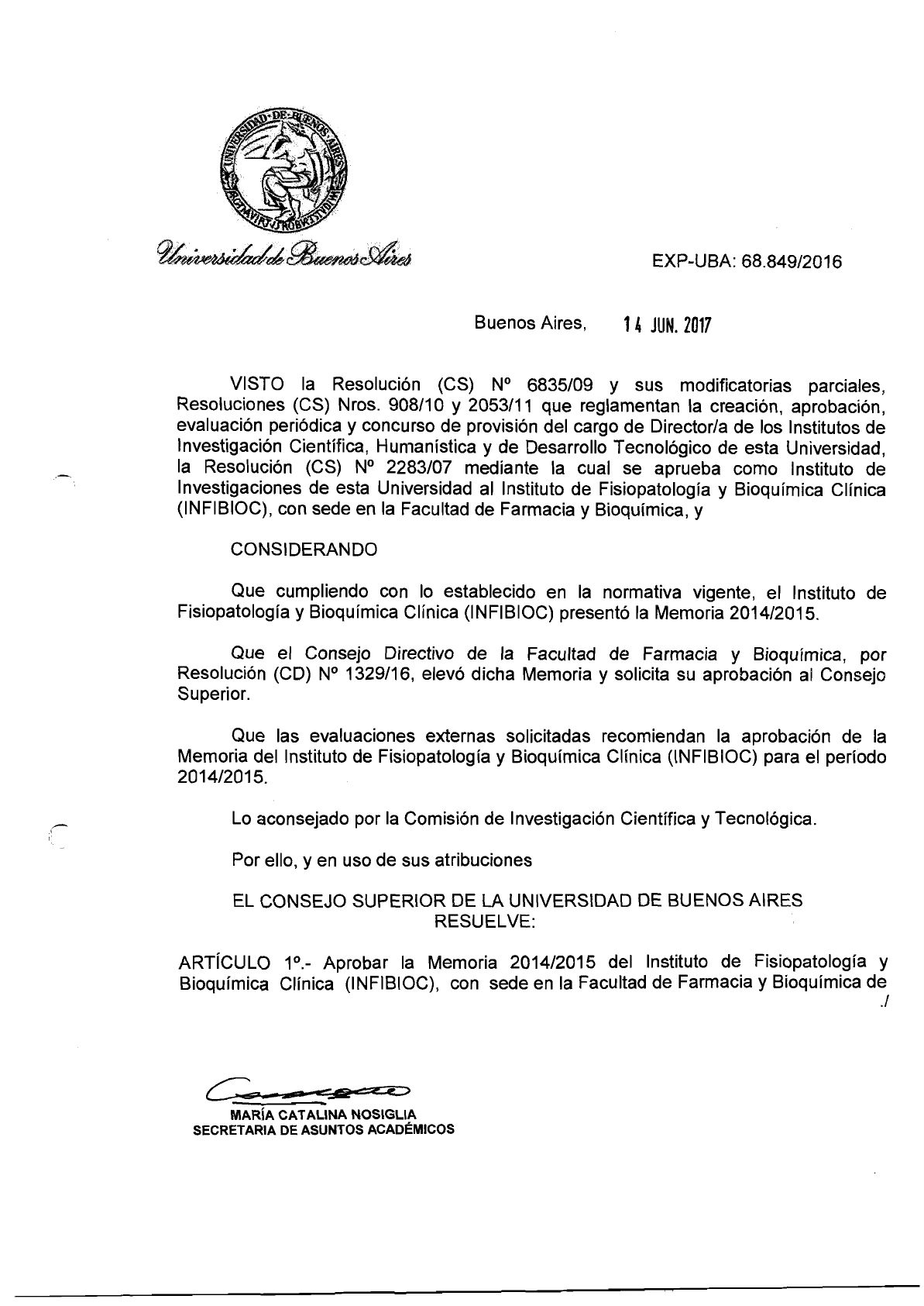 Fisiopatologia y Bioquimica Clinica (INFIBIOC) present0 la Memoria 20141201 5.