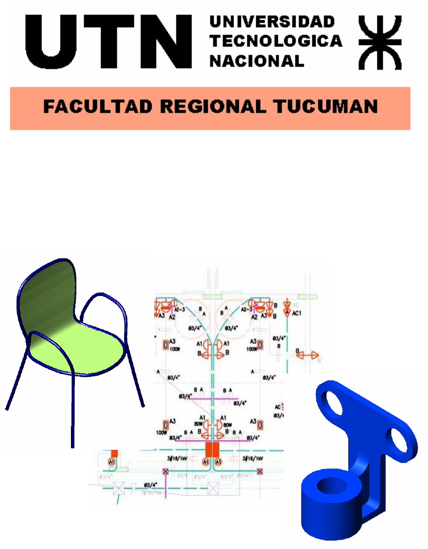 GUIA PRÁCTICA DE AUTOCAD 2006 CATEDRA DE SISTEMAS DE REPRESENTACIÓN AÑO 2006 INTRODUCCIÓN Este curso de AutoCAD está especialmente indicado para personas que se inicien con este programa, es decir que si usas habitualmente este programa quizá sólo te sirva para resolver algunas dudas que puedas tener.- El curso consta de una parte en 2D y otra en 3D. AutoCAD es el software más popular entre todos los programas de CAD del mercado. Desde su introducción, AutoCAD fue creciendo desde un programa relativamente simple hasta uno grande, complejo y veloz. Con las últimas actualizaciones se ha hecho más simple el uso del mismo, llegando a convertirse en un valioso aliado para la elaboración de los más complejos diseños. AutoCAD trabaja por medio de órdenes o Comandos que nosotros debemos introducir, ya sea mediante el teclado o seleccionándolos de los Menús desplegables con un dispositivo apuntador, en este caso utilizaremos el "mouse" o "ratón". Se entiende por Menú al conjunto de opciones disponibles en cualquier programa de Computadora. El botón izquierdo del ratón se utiliza para seleccionar Comandos u objetos y el derecho se puede configurar para indicarle a AutoCAD que repita el último comando introducido, o que actúe como la tecla Enter para dar por terminada la selección y entonces continuar con el siguiente paso. Al trabajar con AutoCAD tendremos que familiarizarnos con las herramientas que utiliza. Cuando hacemos un dibujo a la manera tradicional utilizamos el lápiz o el estilógrafo para trazar líneas, en AutoCAD usaremos el comando LINE - LÍNEA -, auxiliándonos del ratón y el teclado para marcar un punto de inicio y un punto final. Al trazar un círculo utilizamos ya sea una plantilla de círculos o un compás, ahora utilizaremos la orden CIRCLE - CÍRCULO -, para dibujar círculos de la medida que queramos, así como el Comando ELLIPSE - ELIPSE -, para dibujar elipses. Para acotar nuestro dibujo ya no tendremos que estar tomando medidas, que inclusive en ocasiones ya no coinciden porque el papel se encogió o se estiró con los cambios de temperatura, en su lugar, tenemos la orden DIM - DIMENSIONAR -, con la cual se colocarán medidas exactas. Cuando nos equivocamos al dibujar algo usamos una goma o una navaja para hacer correcciones, en AutoCAD usaremos la orden ERASE - BORRAR -. Para tomar una medida en el dibujo en vez de usar el escalimetro, usaremos el comando DIST - DISTANCIA -. Con AutoCAD también podemos elaborar textos con la medida que deseemos, ya sea normales, achaparrados o inclinados. Pero lo más importante, es el enorme ahorro de tiempo cuando tenemos que dibujar elementos repetitivos, por ejemplo, varias plantas de un edificio en las que solo hay que cambiar algunos elementos de posición, ya que esto lo podemos hacer rápidamente con el comando "COPY" - COPIAR -, copiando varias veces la misma planta y solo modificando lo que se requiera. Así mismo, en caso de requerirse, podemos sacar cualquier numero de originales tan solo con plotearlos (imprimirlos). Como podemos ver, son notables las ventajas que nos ofrece AutoCAD en comparación con el dibujo a mano. Guia de AutoCAD Catedra de Sitemas de Representacion UTN - FRT Realizado por Ing. Juan Campos, Guillermo Brito. Marcelo Garcia 2 de 44 INICIAR AUTOCAD Lo primero que debemos saber sobre cualquier programa es cómo ponerlo en funcionamiento. Suponemos que ya tiene el programa bien instalado en el disco rígido de su computadora. Como cualquier otra aplicación Windows, AutoCAD se ejecuta a través del menú Inicio. Despliegue, en la opción Programas de dicho menú, la opción AutoCAD y seleccione la opción con el mismo nombre para iniciar la aplicación. Aunque AutoCAD se ejecuta desde el menú Inicio, también puede iniciar esta aplicación más rápidamente utilizando el icono de acceso directo que AutoCAD instala en el escritorio. Así su inicio será más rápido. Al iniciarse el programa tendremos la siguiente ventana gráfica. Capas Color capas Tipos de líneas Barra Superior Grosor de líneas Barra de herramientas de edición Barra de herramientas de dibujo Cursor VENTANA DE DIBUJO Icono del sistema de coordenadas Línea de comandos Botones de ayuda del dibujo En la parte superior de la ventana gráfica se localiza la barra de título, la cual es común en muchas aplicaciones Windows, muestra el nombre del dibujo y contiene los iconos Minimizar y Maximizar y Cerrar ubicados en la parte derecha, y el icono Control del lado izquierdo. Guia de AutoCAD Catedra de Sitemas de Representacion UTN - FRT Realizado por Ing. Juan Campos, Guillermo Brito. Marcelo Garcia 3 de 44 Debajo de la barra de título se encuentra la barra de menús, mejor conocida como barra de menús desplegables. Debajo de la barra de menús desplegables, se localiza la barra de herramientas. Enseguida de la barra de herramientas, se localizan 5 cajas que aparecen vacías las cuales corresponden a Layer Control, Color Control, Linetype Control, Lineweight Control y Plot Style. Del lado izquierdo de la pantalla de dibujo se localizan dos barras de herramientas, la de la izquierda contiene herramientas para dibujar y la de la derecha herramientas de edición. En la parte inferior se localiza un área de texto llamada línea de comandos; es aquí donde AutoCAD dialoga con nosotros, solicitándonos información cuando dibujamos o modificamos un objeto. Por último, se encuentra la barra de estado, la cual contiene, la caja de coordenadas que muestra los valores de los ejes X, Y y Z, y los modos SNAP, GRID, ORTHO, POLAR, OSNAP, OTRACK, LWT y MODEL. Preparando el entorno para dibujar Si fuéramos a dibujar a mano, comenzaríamos escogiendo la medida del papel, la escala, el sistema de unidades de medición (inglés o decimal), etc. Con AutoCAD haremos cosas similares para establecer el formato del Grid, límites del dibujo y unidades. Escogiendo el sistema de unidades de dibujo En AutoCAD, en vez de escalar objetos en
