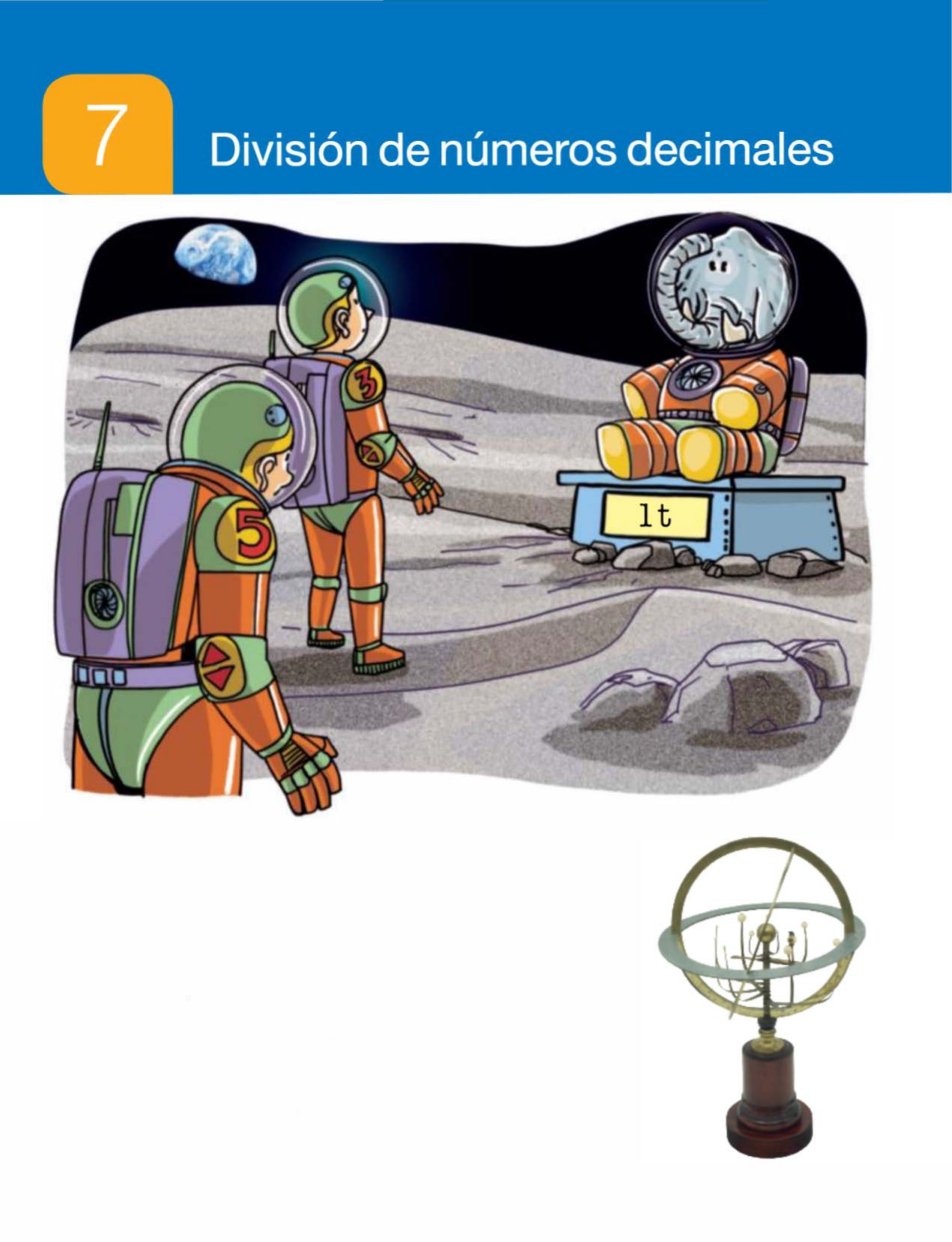 1 02 ¿Cuánto pesa un elefante en la Luna? El animal terrestre más grande de nuestro planeta es el elefante africano. Un elefante puede llegar a pesar 6 toneladas. Pero no en todos los lugares es así. Si pudiéramos transportar el elefante en una nave espacial, su peso sería diferente en cada planeta. En la Luna, el peso de un elefante se reduciría a la sexta parte que en la Tierra, es decir, pesaría 1 tonelada. En los planetas más cercanos a la Tierra, Venus y Marte, su peso sería de 5,4 toneladas en Venus y de 2,25 toneladas en Marte. Si nos alejamos, en el planeta Júpiter el elefante multiplicaría por 2,5 su peso. En Neptuno, su peso aumentaría en una décima parte, llegando a las 6,6 toneladas, y en Urano disminuiría en una décima parte, pesando 5,4 toneladas. SI Lee, comprende y razona - 0 Expresa en forma de fracción decimal el peso del elefante en Venus y en Marte. ¿Cuál es el denominador de cada fracción? a ¿Qué diferencia hay entre los pesos del elefante en Neptuno y Urano? ¿Y entre los pesos en Venus y Marte? El ¿Cuánto pesaría el elefante en Júpiter? ¿Cómo lo has calculado? 0 ¿Cuál es la dé cima parte de 6 toneladas? ¿Qué operación haces para calcularlo? a EXPRESIÓN ORAL. Un poni en la Tierra pesa 60 kg. ¿Cuánto pesaría el poni en la Luna? Explica cómo lo has averiguado. ¿Es cierto que podrías sostenerlo en brazos? Q ¿Cuántos kilos como máximo puedes levantar en la Tierra? ¿Cuántos podrías levantar en la Luna? ¿Qué sabes ya? TAREA FINAL :lJ Entender la etiqueta de un alimento A l final de la unidad estudiarás la etiqueta de un alimento. A ntes, aprenderás a dividir n úmeros decimales y aplicar esas divisiones a situaciones reales. � División de un número decimal Cambios en los términos de una división entre la unidad seguida de ceros Para dividir un número decimal entre la unidad seguida de ceros, se desplaza la coma a la izquierda tantos lug ares como ceros siguen a la unidad. Si es necesario, se añaden ceros. 34,75: 10 = 3,475 24,8 : 100 = 0,248 Completa en tu cuaderno. 2,3 5 : 10 12,9 : 10 3,245 : 1 o 19,5 : 100 21,67 : 100 4,7 : 100 16,4 : 1 .000 32,75 : 1 .000 145,268 : 1 .000 A l multiplicar (o dividir) el dividendo y el divisor de una división por un mismo número distinto de cero, el cociente no varía, pero el resto queda multiplicado (o dividido) por dicho número. 3 7 l.i_ 1 9 :2 7 4 � 2 9 x2 1 4 8 l...!_§_ .. o 4 9 Calcula 42 : 18 y, después, halla el coc iente y e l resto de cada división. 21 : 9 126 : 54 14 : 6 21 o : 90 103 División de un decimal entre un natural Elena ha preparado una tarta de chocolate que pesa 4,125 kg y la va a partir en trozos i gua les . ¿Cuánto pesará cada trozo si hace 3 trozos i guale s? Divide 4,125 entre 3 ¿Cuánto pesará cada trozo si hace 5 trozos i gua le s? Divide 4,125 entre 5 Divide como si fueran números naturales y, al bajar la primera cifra decimal del dividendo (1 ), escribe un a coma en el cociente. Lueg o , sig ue dividiendo. Como la parte entera del dividendo (4) es menor que el divisor (5), escribe O y la coma en el cociente y divide 41 entre 5. 4, 1 2 5 13 4, 1 2 5 15 1 1 1' 3 7 5 1 2 O, 8 2 5 2 2 2 5 1 5 o o Cada trozo pesará 1,375 kg. Cada trozo pesará 0,825 kg. Para dividir un número decimal entre un natural, se dividen como si fueran números naturales y, al bajar la primera cifra decimal del dividendo, se escribe una coma en el cociente. 0 Divide estos números decimales. Rodea primero en cada división la cifra o cifras que tomarías para empezar a dividir . • 36,28 : 4 • 411 ,6 : 3 •5,315 : 5 • 3,672 : 6 • 1 ,428 : 7 •3,105: 9 • 18,564 : 14 • 29,44 : 23 • 44,25 : 75 f) Calcula el factor que falta en cada multiplicación y explica cómo lo haces. • 9 X = 12,33 • X 7 = 6,23 • 12 X = 15,084 O Resuelve. • X 15 = 5,55 • La asociación de excursionismo ha reservado 35 habitaciones ig uales de un hotel para el fin de semana. Han pag ado 1.676,50 € en total. 104 ¿Cuánto han pagado por cada habitación? • En la cena, los 43 excursionistas g astaron un total de 505,25 €. Pagaron la factura a partes iguales entre todos ellos. ¿Cuánto pag ó cada uno? División de un natural entre un decimal Al polideportivo ha llegado un envío de balones. Pesan en total 240 kg y cad a bal ó n pesa 1,25 kg. ¿Cuán to s balones han llegado en el envío? Divide 240 entre 1 ,25 1.° Convierte el divisor en un número natural. Para ello, multiplica el dividendo y el divisor por la unidad seguida de tantos ceros como cifras decimales tiene el divisor. 240 : ¡ 24.000 : 1 ,25 ¡ 125 1,25 tiene 2 c if ras decimales Multipl ica por 1 00 2.0 Haz la división de números naturales que has obtenido. 2 4 0 0 0 1 1 5o 0 2 5 0 0 0 0 11 2 5 1 9 2 Han ll eg ado 192 bal ones en el e nví o. Para dividir un número natural entre un decimal, se multiplican ambos por la unidad seguida de tantos ceros como cifras decimales tiene el divisor, y despué s se hace la división obtenida. 0 Calcula. • 986 : 6,8 • 88 : 5,5 • 34: 0,05 • 16 : 0,008 • 66 : 8,25 • 182 : 0,208 • 18 : 1 ,125 • 57 : 2,375 B P iensa y resuelve. • Mónica quiere embaldosar una sala de 35 m2 con baldosas iguales de 0,07 m2 de superficie. ¿Cuántas baldosas necesitará? • En una fábrica tienen 270 kg de mermelada. La mitad los van a envasar en tarros de 1 ,5 kg y el resto en envases de 0,25 kg. ¿Cuántos envases obtendrán? Cálculo mental Multiplica un número por 11: multiplica por 1 O y luego suma e l n úme ro X 11 _[ 35 X 10 .. 350 + +35 .. 385 14 X 11 17 X 11 20 X 11 26 X 11 22 X 11 31 X 11 43 X 11 50 X 11 300 X 11 400 X 11 510XI1 630 X 11 1 05 106 División de un decimal entre un decimal Ramó n paga 124,74 € por un jamón de 6,3 kg. ¿Cuánto cuesta u n kilo de jamón? Divide 1 24,7 4 entre 6,3 1.° Convierte el divisor en un número natural. Para ell o, multiplica el dividendo y el divisor por la unidad seguida de tantos ceros como cifras decimales t