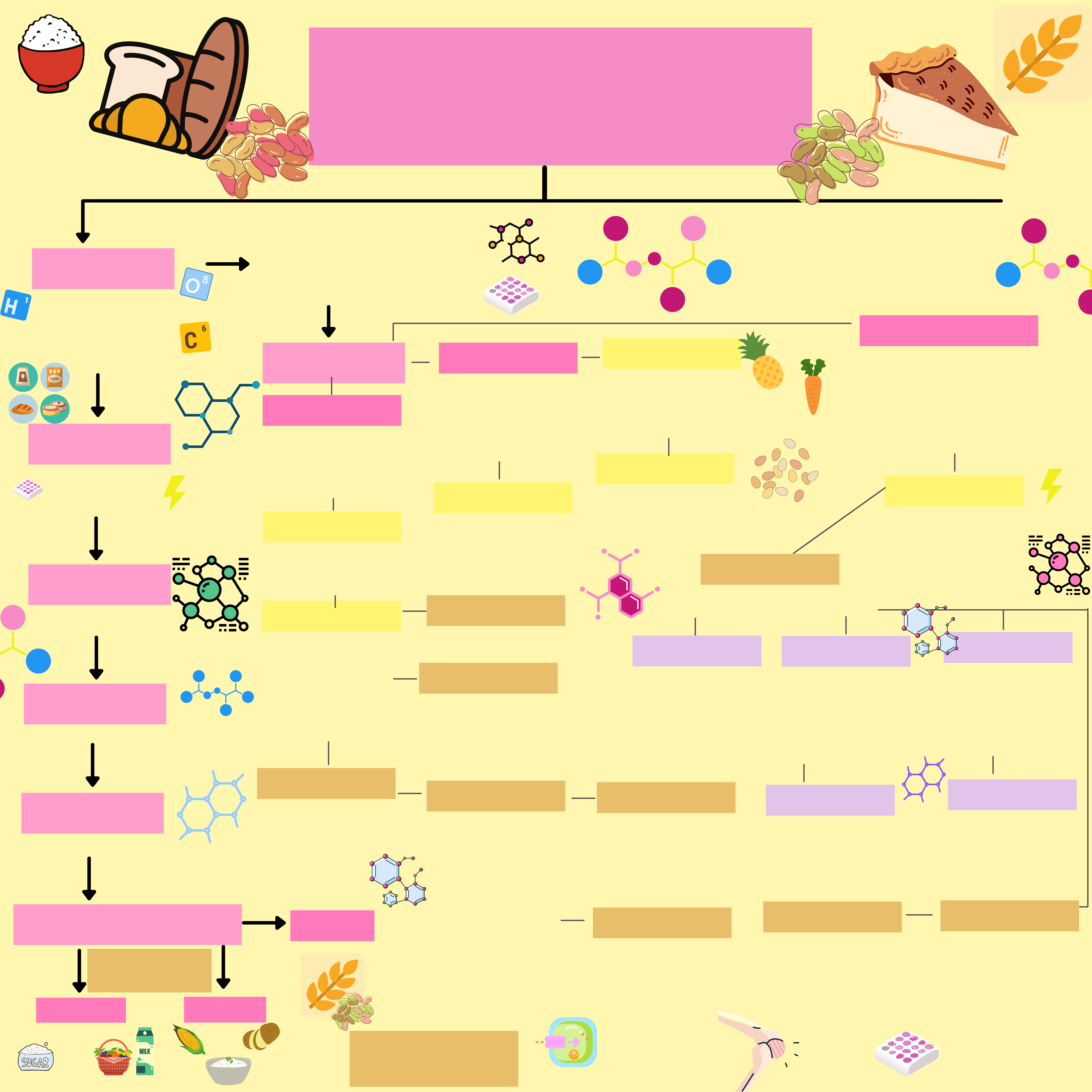 carbohidratos Fibra Es la parte del alimento que el cuerpo no descompone. a)Fibra soluble. Ayuda a reducir los niveles de colesterol y puede ayudar a mejorar el control del azúcar en la sangre. b)Fibra insoluble. Agrega volumen a las heces para que pueda tener deposiciones regulares. Clasificacion derivados Son aquellos monosacáridos que tienen en su molécula otros grupos funcionales de gran importancia biológica, sobre todo los derivados de algunas aldohexosas como la glucosa, manosa y galactosa. Estos derivados se obtienen por sustitución de alguno de los grupos hidroxilo por algún otro grupo funcional, o bien por oxidación o reducción de alguno de los átomos de carbono del monosacárido original. AMINOAZUCARES AZUCARES-ACIDOS se obtienen por oxidación de algún átomo de carbono del monosacárido de origen a grupo carboxilo. Si el carbono oxidado es el carbono carbonílico se obtienen los ácidos aldónicos; si es el carbono hidroxílico del otro extremo de la cadena se obtienen los ácidos urónicos. Entre los azúcares-ácidos destacan los derivados de la glucosa denominados ácido glucónico y ácido galacturónico. Disacarido maltosa Se forma por la unión entre el OH del carbono #1 de una glucosa y el carbono #2 de la fructosa, se le conoce como azúcar de caña, aunque también lo contienen el betabel, sorgo, piña, zanahoria etc. SIMPLES Formados por moléculas de monosacáridos iguales, los cuales pueden ser de origen animal o vegetal, representan el material de reserva energética. son cadenas de glucosa que forman el exoesqueleto de artrópodos, o de los insectos, hongospolisacárido la estructura de los invertebrados, se encuentra en los caparazones de los crustáceos. Químicamente está constituida por n-acetil – D-glucosamina. GLICOSAMINOGLICANOS Formados por largas cadenas de monosacáridos diferentes, tienen peso molecular elevado se llaman también mucopolisacáridos, formados también por aminoazúcares y ácidos urónicos. Dentro de este grupo tenemos compuestos con las más diversas funciones: en las articulaciones como amortiguadores o lubricantes, Son un tipo de biomoléculas funcionales y estructurales, presentes fundamentalmente en el tejido conectivo, epitelial y óseo, así como en el medio intercelular. En Bioibérica producimos los principales glicosaminoglicanos, como son el condroitín sulfato, la glucosamina y el ácido hialurónico. Básicos para el mantenimiento de la elasticidad y flexibilidad de la articulación, minimizando la degradación de ésta. Son compuestos de alto peso molecular, (polímeros de un monosacárido) que por hidrolisis dan más de 10 moléculas de monosacáridos como por ejemplo el almidón y el glucógeno, Son insolubles en agua, insípidos, carentes de poder reductor. usados por las plantas y animales como reservas de energía. Glucogeno Insulina es el polisacárido de reserva o almacenamiento en los animales. Está constituido por cadenas de glucosa parecidas a la amilopectina, pero mucho más ramificada; se encuentra almacenado en el hígado principalmente y en menor cantidad en el músculo. Definicion Son compuestos orgánicos formados por carbono, hidrogeno y oxigeno; en algunos carbohidratos participan también el azufre y nitrógeno. Químicamente, se definen como derivados aldehídicos o cetónicos de alcoholes polihidricos, (Cn H2n On). Funciones 1.-Proporcionar energía 2.- Son compuestos de reserva (glucógeno) 3.- Formar estructuras o cuerpo Disacarido Es la unión de dos monosacáridos, oligosacarido Son cadenas de muchos monómeros la unión menos de diez monomeros. polisacarido Princ. Carbohidratos azúcares almidón El cuerpo descompone los azúcares y la mayoría de los almidones en glucosa (azúcar en la sangre) para utilizarlos como energía. azúcares agregados azúcares naturales Fructuosa LactosaSucrosa La fibra contribuye a la salud digestiva, hace que se le mueva el estómago con regularidad y lo ayuda a sentirse lleno y satisfecho después de comer.Los adultos deben tratar de comer de 25 a 30 gramos de fibra al día. -Los carbohidratos o hidratos de carbono más simples tienen dos grupos hidroxilo y son el gliceraldehído y la dihidroxiacetona. -Se definen como derivados aldehícos o cetónicos de alcoholes polihidroxilados, (que tienen varios OH, en su molécula). -se les encuentra tanto en los tejidos vegetales es como animales. Los carbohidratos constituyen los productos finales de la síntesis fotoquímica de las plantas verdes, de donde son ingeridas por los animales, y el hombre. Monosacarido Es el azucar más simple,tienen de 3 a 7 carbonos pueden tener un grupo aldehíco o cetónico el más importante biológicamente hablando es la glucosa, manosa, fructuosa, ribosa.Y son REDUCTORES y SOLUBLES EN AGUA, ESTRUCTURA CICLICA.. Simple Son aquellos carbohidratos que no pueden ser hidrolizados en moléculas más pequeñas. Los monosacáridos simples son las aldosas y las cetosas el grupo hidroxilo unido al carbono 2 del monosacárido de origen está sustituido por un grupo amino. Así sucede por ejemplo en la glucosamina, manosamina y galactosamina. AZUCARES-ALCOHOLES se obtienen por reducción del grupo carbonilo a grupo hidroxilo, de manera que en ellos todos los átomos de carbono están unidos a grupos hidroxilo. Entre los azúcares-alcoholes destaca la glicerina, un polialcohol de tres átomos de carbono que se encuentra formando parte de muchos lípidos. DESOXIAZUCARES alguno de los grupos hidroxilo del monosacárido de origen está sustituido por un átomo de hidrógeno. El más importante es la 2 ́- desoxirribosa, que forma parte de los ácidos nucleicos. AZUCAR -FOSFATO son azúcares fosforilados (unidos a un grupo fosfato mediante enlace éster) en alguno de sus grupos hidroxilo. En la síntesis y degradación de los glúcidos, los compuestos intermedios no suelen ser los propios azúcares sino sus derivados fosforilados. Ello se debe a que estos derivados poseen cargas netas a pH