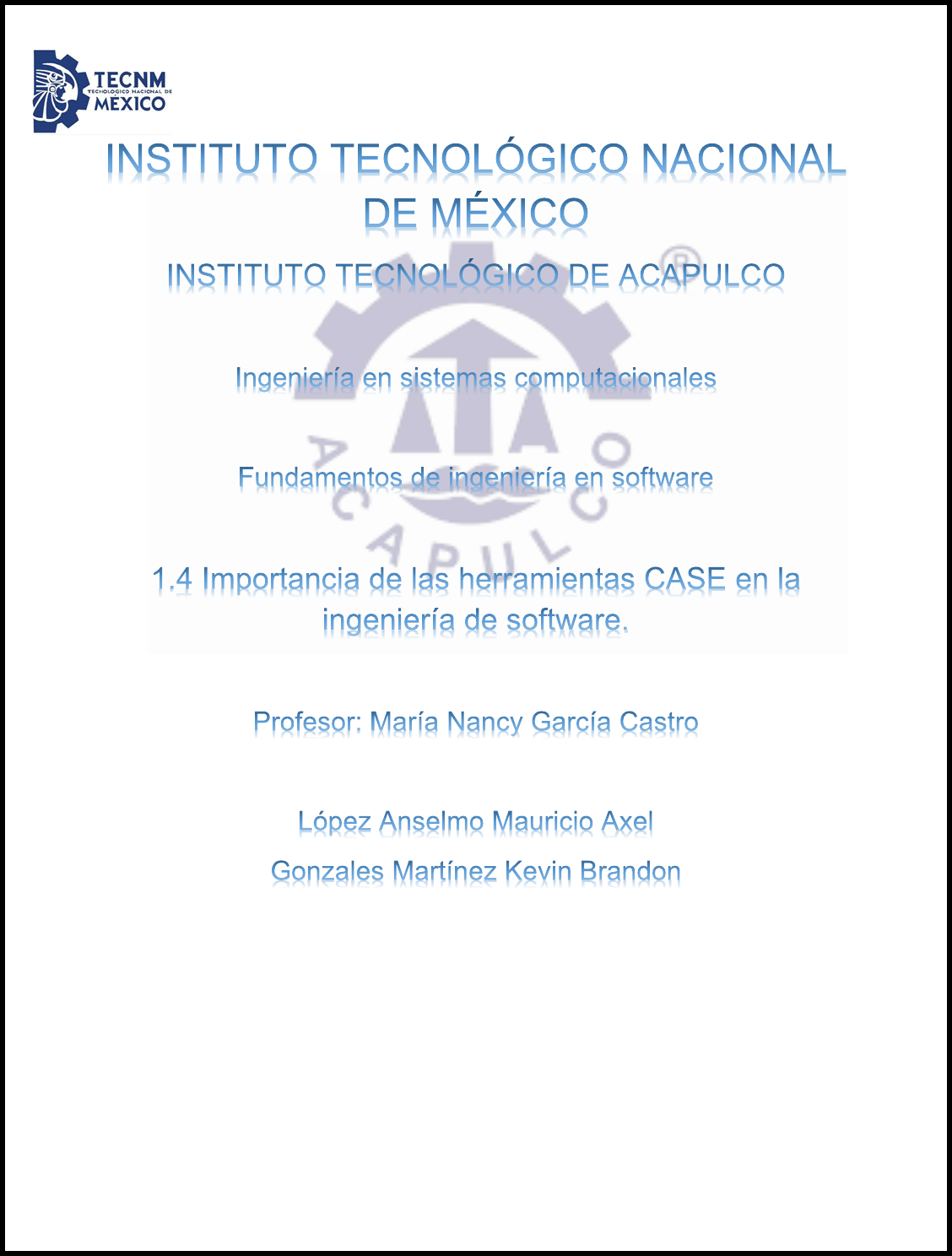 Lenguajes y autómatas 1 P á g i n a 1 | 15 Acapulco Gro. 30 de octubre de 2020 Lenguajes y autómatas 1 P á g i n a 2 | 15 Acapulco Gro. 30 de octubre de 2020 1.4 Importancia de las herramientas CASE en la ingeniería de software. HERRAMIENTA CASE Las herramientas CASE (Computer Aided Software Engineering, Ingeniería de Software Asistida por Computadora) son diversas aplicaciones informáticas o programas informáticos destinadas a aumentar el balance en el desarrollo de software reduciendo el costo de las mismas en términos de tiempo y de dinero. Estas herramientas pueden ayudar en todos los aspectos del ciclo de vida de desarrollo del software en tareas como el proceso de realizar un diseño del proyecto, cálculo de costos, implementación de parte del código automáticamente con el diseño dado, compilación automática, documentación o detección de errores. En los años 70 un proyecto llamado ISDOS diseñó un lenguaje y por lo tanto un producto que analizaba la relación existente entre los requisitos de un problema y las necesidades que estos generaban, el lenguaje en cuestión se denominaba PSL (Problem Statement Language) y la aplicación que ayudaba a buscar las necesidades de los diseñadores PSA (Problem Statement Analyzer). Aunque esos son los inicios de las herramientas informáticas que ayudan a crear nuevos proyectos informáticos, la primera herramienta CASE fue Excelerator que salió a la luz en el año 1984 y trabajaba bajo una plataforma PC. En la época de los noventa algunas empresas trabajaban con sus mainframes o computadoras centrales, Pero poco a poco los mainframes han ido siendo menos utilizados y actualmente el mercado de las CASE ha ido disminuyendo, abriendo el mercado de diversas herramientas más específicas para cada fase del ciclo de vida del software. Lenguajes y autómatas 1 P á g i n a 3 | 15 Acapulco Gro. 30 de octubre de 2020 Objetivos de las herramientas CASE. 1. Mejorar la productividad del software. 2. Aumentar la calidad del software. 3. Reducir el tiempo y costo de desarrollo y mantenimiento de los sistemas 4. informáticos. 5. Mejorar la planificación de un proyecto. 6. Aumentar la biblioteca de conocimiento informático de una empresa 7. ayudando a la búsqueda de soluciones para los requisitos. 8. Automatizar el desarrollo del software, la documentación, la generación de código, las pruebas de errores y la gestión del proyecto. 9. Ayuda a la reutilización del software, portabilidad y estandarización de la documentación. 10. Gestión global en todas las fases de desarrollo de software con una misma herramienta. 11. Facilitar el uso de las distintas metodologías propias de la ingeniería del software. Lenguajes y autómatas 1 P á g i n a 4 | 15 Acapulco Gro. 30 de octubre de 2020 Clasificación. No existe una única clasificación de herramientas CASE y, en ocasiones, es difícil incluirlas en una clase determinada. Podrían clasificarse atendiendo a: • Las plataformas que soportan. • Las fases del ciclo de vida del desarrollo de sistemas que cubren. • La arquitectura de las aplicaciones que producen. • Su funcionalidad. Según fases del ciclo de vida del desarrollo La siguiente clasificación es la más habitual basada en las fases del ciclo de desarrollo que cubren: • Upper CASE (U-CASE) Herramientas de alto nivel, U-CASE (Upper CASE - CASE superior) o front-end ,orientadas a la automatización y soporte de las actividades desarrolladas durante las primeras fases del desarrollo: análisis y diseño • Middle CASE (M-CASE) Middle CASE (M-CASE), herramientas para automatizar tareas en el análisis y diseño de la aplicación. • Lower CASE (L-CASE) Herramientas de bajo nivel, L-CASE (Lower CASE - CASE inferior) o back-end, dirigidas a las últimas fases del desarrollo: construcción e implantación. Estas herramientas son las que semi-automatizan la generación de código, crean programas de detección de errores, soportan la depuración de programas y pruebas. Además, automatizan la documentación completa de la aplicación. • Tools-Case. Juegos de herramientas o Tools-Case, son el tipo más simple de herramientas CASE. Automatizan una fase dentro del ciclo de vida. Dentro de este grupo se encontrarían las herramientas de reingeniería, orientadas a la fase de mantenimiento Lenguajes y autómatas 1 P á g i n a 5 | 15 Acapulco Gro. 30 de octubre de 2020 Según funcionalidad. Por funcionalidad se pueden diferenciar algunas como: • Editores UML. los diagramas UML describen los límites, la estructura y el comportamiento del sistema y los objetos que contiene. UML no es un lenguaje de programación, pero existen herramientas que se pueden usar para generar código en diversos lenguajes usando los diagramas UML. UML guarda una relación directa con el análisis y el diseño orientados a objetos. • Herramientas de mantenimiento como los sistemas de control de versiones. Se llama control de versiones a la gestión de los diversos cambios que se realizan sobre los elementos de algún producto o una configuración de este. Una versión, revisión o edición de un producto, es el estado en el que se encuentra el mismo en un momento dado de su desarrollo o modificación. Otras clasificaciones. Existen otros nombres que se le dan a este tipo de herramientas, y que no es una clasificación excluyente entre sí, ni con las fases del ciclo de vida del desarrollo: • Integrated CASE (I-CASE) herramientas que engloban todo el proceso de desarrollo software, desde el análisis hasta la implementación. • MetaCASE. herramientas que permiten la definición de nuestra propia técnica de modelado, los elementos permitidos del metamodelo generado se guardan en un repositorio y pueden ser usados por otros analistas, es decir, es como si definiéramos nuestro propio UML, con nuestros elementos, restricciones y relaciones posibles. • CAST. herramientas de soporte a la prueba de software. • IPSE. herramientas que soporta