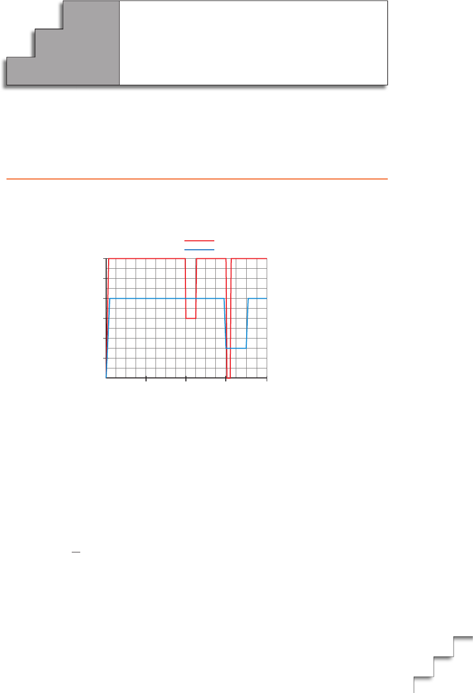 Unidad 13. La integral definida. Aplicaciones 1 Página 363 REFLEXIONA Y RESUELVE Dos trenes Un Talgo y un tren de mercancías salen de la misma estación, por la misma vía y en idéntica dirección, uno tras otro, casi simultáneamente. Estas son las gráficas TIEMPO - VELOCIDAD de ambos movimientos. Como podemos ver en la gráfica, el Talgo, a las dos horas, reduce su velocidad: ¿A qué puede deberse? ¿Por qué no aminora la marcha también el otro tren en ese instante? A las tres horas, ambos trenes modifican su marcha: el Talgo se detiene durante breves minutos, mientras que el tren de mercancías va muy despacio durante media hora. ■ Para hacernos una idea clara de estos movimientos, realicemos algunos cálculos: a) El Talgo, durante 2 h, va a 120 km/h. ¿Cuántos kilómetros recorre a esa velo- cidad? b)De 2 a 2 , el Talgo disminuye su velocidad. ¿Cuántos kilómetros recorre a esa velocidad? c) El tren de mercancías aminora la marcha a las 3 h. ¿Qué distancia ha re- corrido hasta ese momento? d) ¿Qué distancia recorre el tren de mercancías durante la media hora en que va a baja velocidad? 1 4 1 2 3 4 TIEMPO (en horas) TALGO MERCANCÍAS 120 100 80 60 40 20 VELOCIDAD (en km/h) LA INTEGRAL DEFINIDA. APLICACIONES13 Haciendo los cálculos anteriores, podrás comprobar que: Ambos trenes recorren 240 km a velocidad normal. Reducen la velocidad en el mismo lugar y recorren, así, otros 15 km (puede ser debido a obras en la vía) y, a continuación, recupera cada cual su velocidad normal. (Es decir, el tren de mercancías no frena cuando el Talgo, pero sí donde el Talgo). Más adelante, el Talgo para en una estación. e) ¿A qué distancia de la estación de salida está esta otra en la que para el Talgo? f ) Observa que en todos los cálculos que has realizado hasta ahora se han ob- tenido áreas bajo las gráficas, roja o azul. Señala los recintos cuyas áreas has calculado y asigna a cada uno su área correspondiente. a) 120 · 2 = 240 km. b) A 60 km/h durante de hora, recorre = 15 km. c) Ha ido a 80 km/h durante 3 horas, luego ha recorrido 80 · 3 = 240 km. d) Va a 30 km/h durante hora, luego recorre 30 · = 15 km. e) La parada la hace a las 3 horas; en este momento lleva recorrida una distancia de: 120 · 2 = 240 km en las dos primeras horas 60 · = 15 km el siguiente cuarto de hora 120 · = 90 km los siguientes tres cuartos de hora Total: 240 + 15 + 90 = 345 km hasta llegar a la parada. f) 1 2 3 4 TIEMPO (horas) TIEMPO (horas) 120 100 80 60 40 20 VELOCIDAD (km/h) VELOCIDAD (km/h) 1 2 3 4 80 60 40 20 Área 240 Área 240 Área 15 Área 90 Área 15 TALGO MERCANCÍAS 3 4 1 4 1 2 1 2 60 4 1 4 Unidad 13. La integral definida. Aplicaciones2 Consumo de energía eléctrica La gráfica adjunta nos da la potencia eléctrica que hay en funcionamiento en una vivienda, a cada instante, entre las 7 de la mañana y las 12 de la noche. El área bajo la curva es la energía consumida: potencia Ò tiempo = energía Un cuadradito equivale a 0,1 kWh. ■ ¿Cuántos kWh se han consumido, aproximadamente, en esas 17 horas? Hay 81,25 cuadritos, luego se han consumido: 0,1 · 81,25 = 8,125 kWh Página 367 1. Halla gráficamente las siguientes integrales: a) ∫ 6 2 + 1 dx b)∫ 4 – 4 dx a) Es un trapecio cuyas bases miden 2 y 4 y cuya al- tura mide 4. Área = · 4 = 12 u2 b) y = ò y2 = 16 – x2 ò x2 + y2 = 42 (Circunferencia) El recinto cuya área queremos calcular es medio círculo de radio 4 u. Área = · π · r2 = · π · 42 = = · π = 8 · π = 25,1 u216 2 1 2 1 2 √16 – x2 2 + 4 2 √16 – x2)x2( 1000 500 100 POTENCIA (en watios) 7 8 10 12 14 16 18 20 22 24 TIEMPO (en horas) Unidad 13. La integral definida. Aplicaciones 3 13UNIDAD 4 2 4 x 2 y = — + 1 –4 –3 –2 –1 0 1 2 3 4 y = √ — 16 – x2 1 2 3 4 2. Halla gráficamente las siguientes integrales: a) ∫ 4 –4 ( + 4)dx b)∫ 4 –4 (4 – )dx a) ∫ 4 –4 ( + 4) dx = ∫ 4 –4 dx + ∫ 4 –4 4 dx Llamamos I1 = ∫ 4 –4 dx e I2 = ∫ 4 –4 4 dx. Resolvemos gráficamente ambas integrales para posteriormente sumar los resultados. I1: y = ò y 2 = 16 – x2 ò x2 + y2 = 42 (circunferencia) El recinto cuya área queremos calcular es medio círculo de radio 4 u. Área = · π · r2 = · π · 42 = = · π = 8 · π = 25,1 u2 I2: Se trata de un rectángulo de dimen- siones 8 u Ò 4 u. Por tanto, su área es 32 u2. Finalmente, I1 + I2 = 25,1 + 32 = 57,1 u 2. b) ∫ 4 –4 (4 – ) dx = ∫ 4 –4 4 dx – ∫ 4 –4 dx Observamos que se trata de las mismas integrales que en el apartado a), solo que ahora es I2 – I1, dando como resultado 32 – 25,1 = 6,9 u 2. Página 371 1. Sea la función F (x) = ∫ x 0 log (t2 + 4)dt. Calcula F' (x). F (x) = ∫ x 0 log (t2 + 4)dt = ∫ x 0 f (t )dt, siendo f (t ) = log (t2 + 4) continua. Por el teorema fundamental del cálculo: F' (x) = f (x) = log (x2 + 4) √16 – x2√16 – x2 16 2 1 2 1 2 √16 – x2 √16 – x2 √16 – x2√16 – x2 √16 – x2√16 – x2 Unidad 13. La integral definida. Aplicaciones4 –4 –3 –2 –1 0 1 2 3 4 y = √ — 16 – x2 1 2 3 4 –4 –3 –2 –1 0 1 2 3 4 y = 4 1 2 3 4 2. Calcula la siguiente integral: ∫ π/2 0 cos x dx ∫ π/2 0 cos x dx = [sen x] 0 π/2 = sen – sen 0 = 1 – 0 = 1 Página 372 1. Calcula: ∫ 6 1 (4x3 – 4x4 – 3) dx I = [x4 – x5 – 3x]6 1 = (64 – · 65 – 3 · 6) – (14 – · 15 – 3 · 1) = = – 4 942,8 + 2,8 = – 4 940 2. Calcula: ∫ 1 0 dx I = [arc tg x]1 0 = arc tg 1 – arc tg 0 = Observación: ∫ a 0 = Página 374 1. Halla el área comprendida entre la función y = x3 – x2 – 6x y el eje X. I. Hallamos las soluciones de la ecuación: x3 – x2 – 6x = 0 Son x = –2, x = 0 y x = 3. II. f (x) = x3 – x2 – 6x. Buscamos su primitiva: G (x) = ∫ (x3 – x2 – 6x)dx = – – 3x2 III. G (–2) = , G (0) = 0, G (3) = IV. G (0) – G (–2) = G (3) – G (0) = El área buscada es: + = u2 (Se incluye la gráfica para entender el proceso, pero es innecesaria para obtener el área). 25