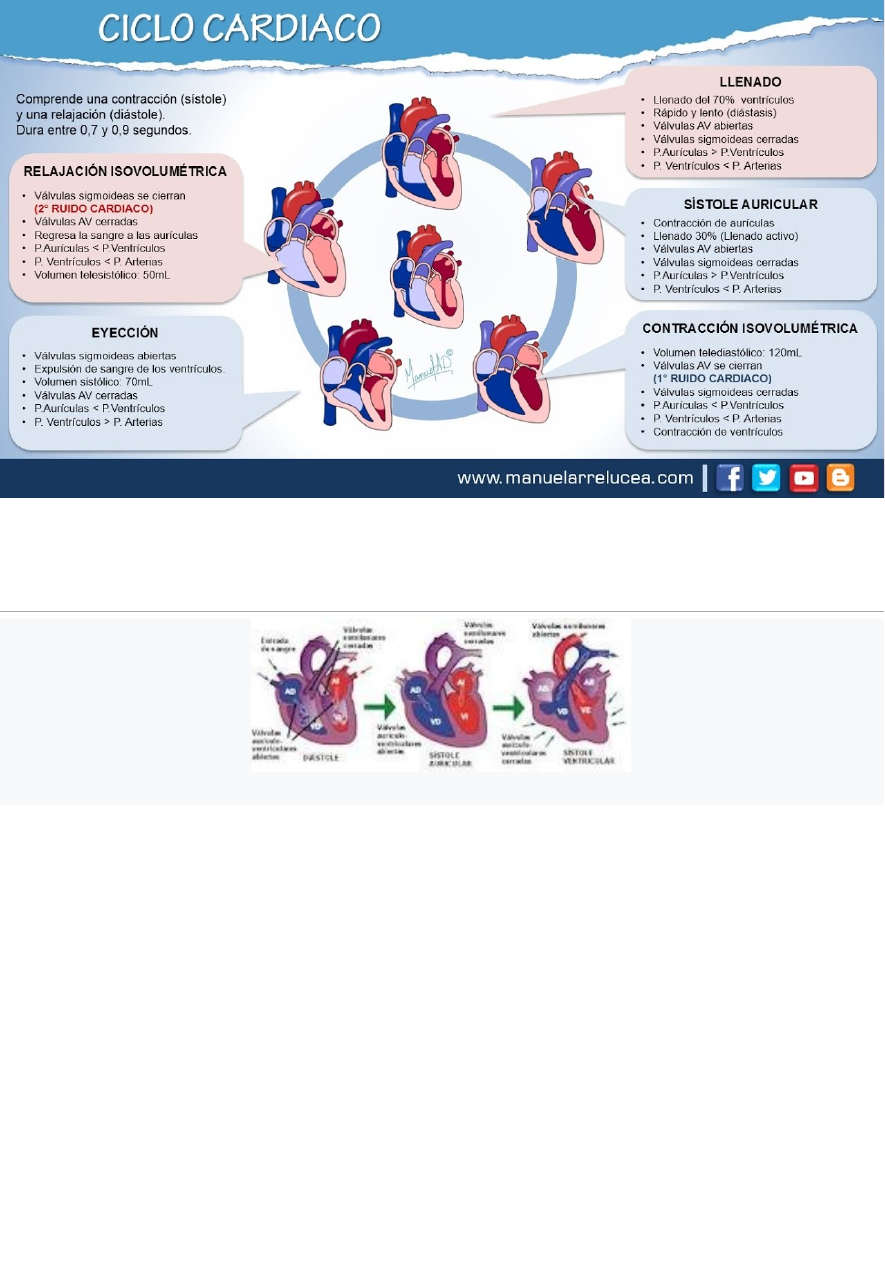 Las dos primeras corresponden a la sístole (contracción miocárdica, durante la cual el corazón expulsa la sangre que hay en su interior) y las tres últimas a la diástole (relajación cardiaca, durante el cual el corazón se llena de sangre). La diástole es más larga que la sístole: aproximadamente dos tercios de la duración total del ciclo corresponden a la diástole y un tercio a la sístole.