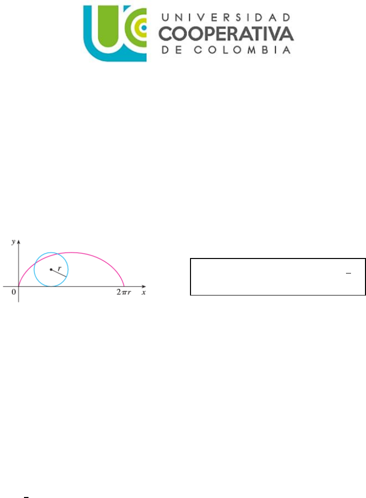 Taller de Cálculo Multivariado Programa de Ingeniería de Sistemas Docente: Ms Jesús Antonio Reyes Bruno 19-04-2023 Problema 1. Longitud de Arco de una Curva Paramétrica Encuentre la longitud de un arco de la cicloide descrito por las ecuaciones paramétricas (ver figura) 𝑥 = 𝑟(𝑡 − 𝑆𝑒𝑛𝑡) 𝑦 = 𝑟(1 − 𝐶𝑜𝑠𝑡) Problema 2. Ecuaciones paramétricas Encuentre las ecuaciones paramétricas para: A. El segmento de recta que pasa por los puntos (−2,7) y (3, −1). B. La trayectoria de una partícula que se mueve a lo largo de la circunferencia 𝑥2 + (𝑦 − 1)2 = 4. Problema 3. Uso de Ecuaciones Paramétricas Dados los ejercicios, trace la curva que representa las ecuaciones paramétricas y elimine el parámetro de la ecuación rectangular correspondiente A. 𝑥 = √𝑡, 𝑦 = 𝑡 − 5 B. 𝑥 = 3𝐶𝑜𝑠𝑡, 𝑦 = 7𝑆𝑒𝑛𝑡 Problema 4. Pendiente y Concavidad de Curvas Paramétricas Halle la pendiente y concavidad en el punto correspondiente al valor dado del parámetro para la curva paramétrica 𝑥 = 𝑡 − 𝑆𝑒𝑛𝑡, 𝑦 = 1 − 𝐶𝑜𝑠𝑡, 𝑡 = 𝜋. Problema 5. Área de una Superficie Encuentre el área de la superficie generada por la revolución de la curva alrededor del eje dado 𝑥 = 𝑎𝐶𝑜𝑠3𝑡, 𝑦 = 𝑎𝑆𝑒𝑛3𝑡, 0 ≤ 𝑡 ≤ 𝜋/2, 𝑒𝑗𝑒 𝑋 Sugerencia: 2𝑆𝑒𝑛2𝜃 = 1 − 𝐶𝑜𝑠 ( 𝜃 2 )