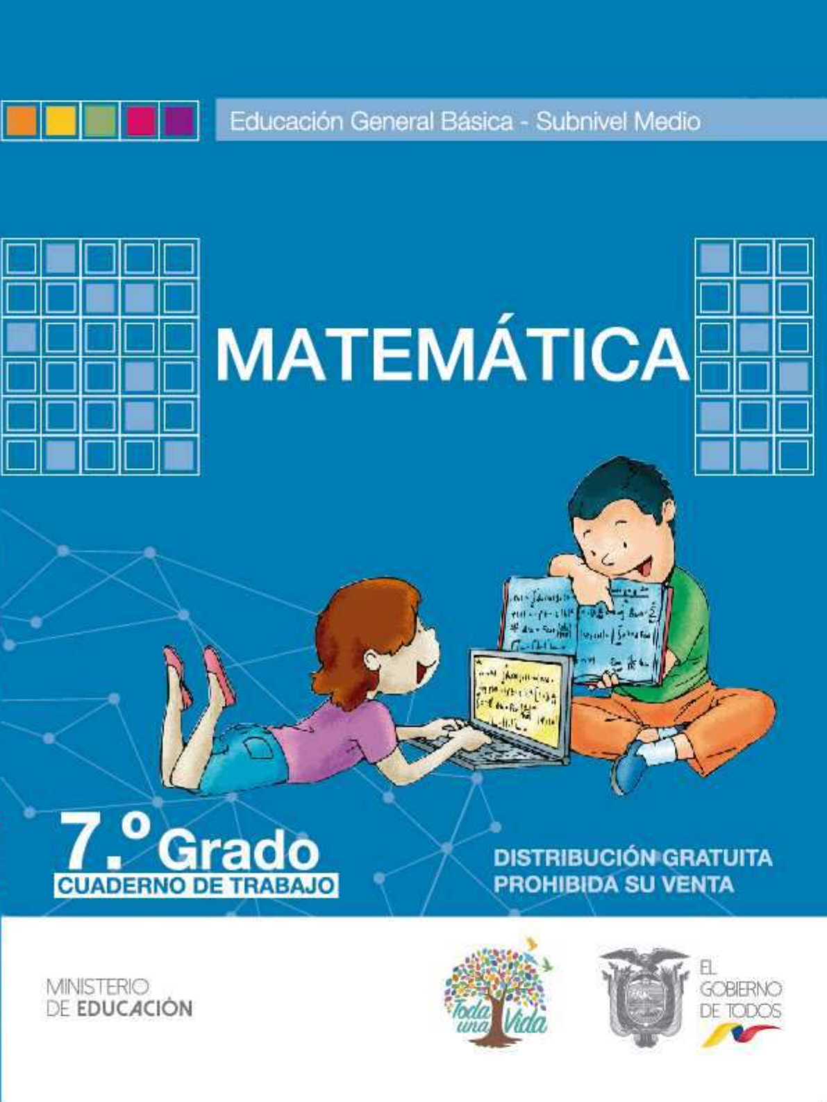 La reproducción parcial o total de esta publicación, en cualquier forma y por cualquier medio mecánico o electrónico, está permitida siempre y cuando sea autorizada por los editores y se cite correctamente la fuente. DISTRIBUCIÓN GRATUITA - PROHIBIDA SU VENTA Primera impresión: agosto 2016 Quinta impresión: junio 2018 Impreso por: Medios Públicos EP © Ministerio de Educación del Ecuador, 2018 Av. Amazonas N34-451 y Atahualpa Quito, Ecuador www.educacion.gob.ec Promovemos la conciencia ambiental en la comunidad educativa. Hemos impreso el 8% de ejemplares con certificado de responsabilidad ambiental. ADVERTENCIA Un objetivo manifiesto del Ministerio de Educación es combatir el sexismo y la discriminación de género en la sociedad ecuatoriana y promover, a través del sistema educativo, la equidad entre mujeres y hombres. Para alcanzar este objetivo, promovemos el uso de un lenguaje que no reproduzca esquemas sexistas, y de conformidad con esta práctica preferimos emplear en nuestros documentos oficiales palabras neutras, tales como las personas (en lugar de los hombres) o el profesorado (en lugar de los profesores), etc. Sólo en los casos en que tales expresiones no existan, se usará la forma masculina como genérica para hacer referencia tanto a las personas del sexo femenino como masculino. Esta práctica comunicativa, que es recomendada por la Real Academia Española en su Diccionario Panhispánico de Dudas, obedece a dos razones: (a) en español es posible <referirse a colectivos mixtos a través del género gramatical masculino>, y (b) es preferible aplicar <la ley lingüística de la economía expresiva> para así evitar el abultamiento gráfico y la consiguiente ilegibilidad que ocurriría en el caso de utilizar expresiones como las y los, os/as y otras fórmulas que buscan visibilizar la presencia de ambos sexos. PRESIDENTE DE LA REPÚBLICA Lenín Moreno Garcés MINISTRO DE EDUCACIÓN Fander Falconí Benítez Viceministro de Educación Álvaro Sáenz Andrade Viceministra de Gestión Educativa Mónica Reinoso Paredes Subsecretaria de Fundamentos Educativos Ruthy Intriago Armijos Subsecretaria de Administración Escolar Mónica García Echeverría Directora Nacional de Currículo María Cristina Espinosa Salas Director Nacional de Operaciones y Logística Germán Lynch Álvarez EvaluaciÓn diagnóstica Nombre: Fecha: año: ✄ Encuentra el máximo común divisor y el mínimo común múltiplo de un conjunto de números naturales. Identifica números primos y números compuestos por su definición aplicando criterios de divisibilidad. 1. Completo la tabla identificando si los números son primos o compuestos. Calcula sumas y restas con fracciones calculando denominador común. 3. Calculo la suma o la resta de las siguientes fracciones. 2. Calculo el mcm o el mcd de los siguientes números. El mcd de 8, 12 y 32 El mcd de 48, 72 y 120El mcm de 10, 24 y 36 El mcm de 40, 60 y 100 mcd= mcd=mcm= mcm= 8 3 3 21 8 5 32 10 + − −+= = = = = = 48 4012 4 2 5 7 9 6 24 72 6032 36 Número Se puede dividir exactamente para ¿Primo o compuesto? 3 6 8 17 28 EvaluaciÓn diagnóstica ✄ Asocia las potencias con exponente 2 (cuadrados) y 3 (cubos) con representaciones en 2 y 3 dimensiones o con áreas y volúmenes. Mide ángulos rectos, agudos y obtusos con el graduador u otras estrategias para dar solución a situaciones cotidianas. 4. Resuelvo el problema. 6. Con ayuda del graduador, mido los siguientes ángulos, ordeno de menor a mayor y escribo si es un án- gulo agudo, recto u obtuso. Analiza y representa en tablas de frecuencias, diagramas de barra, circulares y poligonales, datos discretos recolectados en el entorno e información publicada en medios de comunicación. 7. Elaboro un diagrama de barras tomando en cuenta la tabla de frecuencia. Luego, contesto las preguntas. Talleres # de estudiantes Oratoria 4 Teatro 8 Periódico escolar 10 Libro leído 12 Total • ¿Cuánto representa la mediana de esta tabla de frecuencia? • ¿Cuál es el promedio de estudiantes que prac- tican un taller? • El orden de los ángulos es: En un almacén de zapatos están api- ladas 9 cajas a lo alto, 9 a lo ancho y 9 a lo largo, si cada caja cuesta $25 ¿cuánto recaudará el almacén por la venta de todos los zapatos? Un terreno cuadrado tiene una superficie de 361 m2. El dueño quiere cercar el terre- no usando alambre de púas, dando cua- tro vueltas al mismo. ¿Cuántos metros de alambre necesita? Resuelve y plantea problemas de potenciación y radicación utilizando varias estrategias e interpreta la solución dentro del contexto del problema. 5. Planteo y resuelvo el problema. A B C D Matemática en acción Texto de Matemática: Trabajar con las páginas 8 y 9. Pares ordenados en el plano UNIDAD 1: Organizados es mejorFORTALEZCO DESTREZAS MISMISMIS Destrezas con criterios de desempeño: Leer y ubicar pares ordenados en el sistema de coordenadas rectangulares con números naturales, decimales y fracciones. Utilizar el sistema de coordenadas para representar situaciones significativas. 6 BLOQUE DE álgebra Y FUNCIONES Ciencias NaturalesMe enlazo con 2. Leo la información, analizo el gráfico, mido con la regla y escribo los pares ordenados representados en el plano. 14,0 15,0 Este gráfico muestra la variación de la temperatura en grados centígrados, en los primeros 500 m de la atmós- fera. ¿Cuáles son las coordenadas de los puntos marcados en el gráfico? Y ¿qué significa cada punto? 1. Escribo las coordenadas en la tabla, según las letras planteadas en el plano cartesiano; luego, ubico las letras en el plano según las coordenadas. A B C D E F G ; 5,75) 4 1 (4 (5,75 ; 0,5) (3 ; 6,25) 0 0,5 3 5 5,5 6,5 4 4,5 6 1,5 2 4 x y 2 4 4 4 5 2 7 2 1 5 2 1 6 2 12 4 10 2 5 2 7 2 14 2 11 2 D E F G 5✄ 1 2 6 6 1 Nombre: Fecha: año: ✄ ¡APLICO LO QUE SÉ! Para mi portafolio Indicadores de logro Utiliza una escala adecuada en los ejes. Aplica el concepto de número decimal. Aplica el concepto