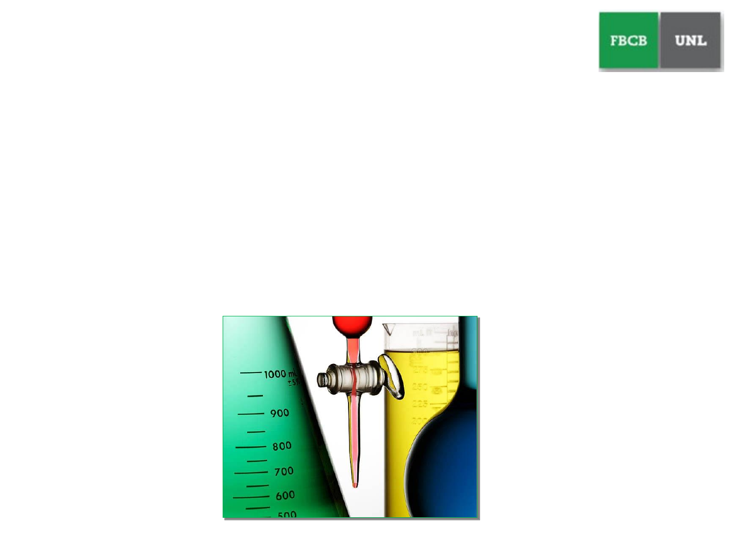 Química Analítica I Análisis Cuantitativo Etapa analítica Equilibrio Ácido-Base 2018 Contenidos Análisis volumétrico Curvas de titulación en distintos equilibrios. Revisión de términos. Cálculo de la concentración de H+. Construcción de curvas de titulación ácido-base mono y polipróticas. Detección del punto final de la titulación. Soluciones reguladoras. Proceso Analítico Total Definición del problema analítico Decisión del método más apropiado P.M.Q. Interpretación de los resultados para resolver el problema Proceso Analítico Total Operaciones previas Medición y transducción de la señal Adquisición y tratamientos de datos Muestra Resultados Análisis volumétrico P.M.Q. Análisis volumétrico Se basa en la medida exacta del volumen de una solución de un patrón o estándar analítico. Este volumen es el necesario para que el analito reaccione estequiométricamente y cuantitativamente. Valoración ó Titulación Estándares analíticos Primarios Secundarios Muestra que contiene al analito + Sistema indicador del Punto final Reacción volumétrica Analito + Patrón Producto Requerimientos de la reacción analítica: - Cuantitativa - Estequiométrica - Selectiva - Rápida Máxima pureza > 99.98 % Sustancia de composición definida con estabilidad atmosférica. Fácil obtención, purificación y secado. Bajo costo y baja toxicidad. Elevada masa molar. Solubilidad adecuada. Patrón Secundario El empleo de estándares o patrones analíticos garantiza la TRAZABILIDAD de la determinación del analito en la muestra. Patrón Primario NO cumple alguno de los requisitos para ser clasificado como patrón primario. Estandarización Valoración Titulación ¿Por qué se deben usar? Análisis volumétrico Preparación “trazable” de una Solución Patrón Primaria (SPP) SPP Disolución de masa exacta de una spp en volumen final exacto Concentración calculada a partir de la masa pesada Sustancia patrón primaria (spp) A partir Masa molecular o peso fórmula Peso equivalente según la reacción mmol mg PFmLV mgpesadamasa mL mmolM SOLUCION EXACTASPP meq mg PEqmLV mgpesadamasa mL meq N SOLUCION EXACTASPP Expresión para documentar o rotular en un envase. Expresión con fines operacionales o prácticos. Análisis volumétrico SPS Estandarización Alícuota de la SPP Disolución de patrón Secundario. SPS Estandarización Masa exacta spp Disolución de patrón Secundario. Preparación de una Solución Patrón Secundaria (SPS) Se obtiene por estandarización y se calcula a partir de la estequiometría de la valoración mLV mL meq NmLV N LEIDO SPPSPP EXACTASPS ¿Cómo se obtiene la concentración de la SPS? spsmeqsppmeqvalorantemeqvaloradomeq meq mg PEqmLV mgpesadamasa mL meq N sppLEIDO EXACTASPS Análisis volumétrico Valoración (Titulación): Se basa en la medida exacta del volumen de una SP Cambios en la [ H+ ], [ M], V, etc., que deben ser detectados. ¿Qué ocurre en el transcurso valoración? El volumen necesario de valorante para que el analito reaccione completa y estequiométricamente. Punto equivalencia Análisis volumétrico pepft VVE Punto final Es el volumen necesario de valorante para lograr: • El viraje de un indicador visual • Cambio físico detectado por una técnica instrumental asociado con la condición de equivalencia química. Error de titulación Análisis volumétrico ¿Qué es una curva de titulación o valoración? ¿Para qué se realizan? - Gráfica del pH, pM, pX o V en función del volumen de valorante. - Forma sigmoidal. - Pueden ser ascendente o descendente según el valorante. Elegir un indicador visual de acuerdo al error admitido para la valoración. Comprender las reacciones químicas que ocurren en la valoración. Salto Salto Análisis volumétrico 0.0 0.5 1.0 1.5 2.0 0 2 4 6 8 10 12 14 Mg2+ K'=108 Ca2+ K'=1010 p M Titulante Zn2+ K'=1014 Análisis volumétrico Curva de titulación de complejos Análisis volumétrico Curva de titulación redox Análisis volumétrico Curva de titulación de precipitación • El analito reacciona con un reactivo de manera directa para dar un producto. • Se conoce el final de la reacción con un indicador. Ejemplo: titulación ácido base de ácido acético con hidróxido de sodio: HAc + OH - → H2O + Ac - 1) Reacción volumétrica directa Analito + Patrón Producto Análisis volumétrico El analito reacciona con un reactivo intermediario. Ejemplo: titulación yodométrica del cloro activo en lavandina. 2) Reacción volumétrica indirecta Analito + Rvo. intermediario Producto-1 Producto-1 + Patrón Producto-2 Análisis volumétrico Cuando se agrega un exceso de una SPS para que reaccione con el analito y luego se titula el excedente de la SPS con otra solución valorada. Objetivo: forzar reacción (cuantitatividad) o ver mejor el punto final. Ejemplo: Titulación de aspirina por agregado de NaOH y retro titulación del exceso de NaOH con SPS de ácido sulfúrico. 3) Reacción volumétrica por retroceso o retorno Análisis volumétrico AF Valorante Valorados BF bd Base Fuerte Base débil PB Bases polifuncionales MAL Mezcla alcalina SR Solución reguladora BF AF ad Ácido Fuerte Áácido débil PA Ácidos polifuncionales MAc Mezcla ácida SR Solución reguladora Patrones Primarios (spp) Carbonato de sodio TRIS [tris(hidroximetil)aminometano] Tetraborato de sodio Patrones Primarios (spp) Hidrógeno ftalato de potasio Hidrógeno yodato de potasio Ácido benzoico SPS de HCl SPS de NaOH Análisis volumétrico: curvas de titulación Revisión de conceptos necesarios para poder hacer los cálculos para construir la curva de titulación Se denominan electrolitos a los solutos que se disocian para producir soluciones conductoras. ELECTROLITOS FUERTES: se disocian completamente. ELECTROLITOS DÉBILES: están sólo parcialmente disociados. Electrolitos En el disolvente agua, se define como ÁCIDO a un soluto dador de protones y BASE a un soluto aceptor de protones o dador del ión hidróxido. Para que esto se pued