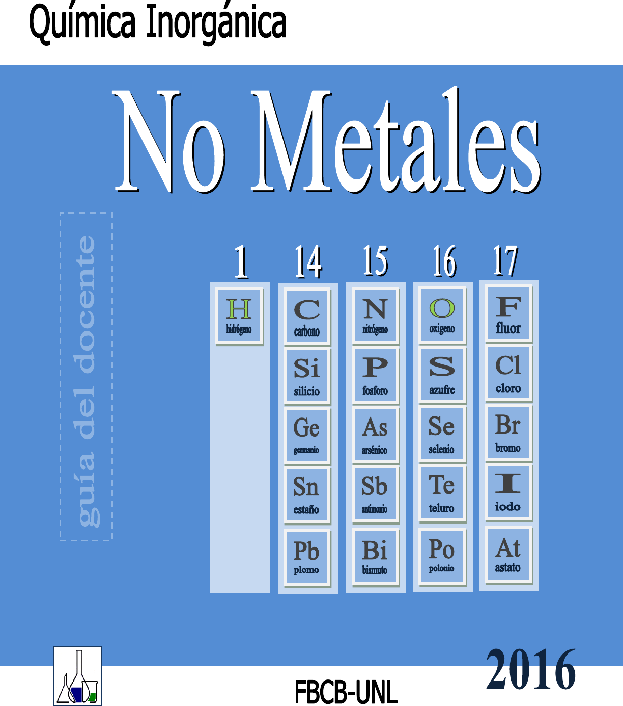 y metales bloque “p” no metales - 2 - HIDRÓGENO El hidrógeno es el elemento más abundante del Universo. Representa, en peso, el 92% de la materia conocida. En nuestro planeta es el 10º elemento más abundante en la corteza terrestre. Lo encontramos combinado en forma de agua (su compuesto más abundante; cubre el 80% de la superficie del planeta), materia viva (hidratos de carbono y proteínas; constituye el 70% del cuerpo humano), compuestos orgánicos, combustibles fósiles (petróleo y gas natural), etc. ACTIVIDAD 1 Completar el siguiente cuadro isotopo nombre abundancia Estabilidad 1 H Protio 99,9844 % si 2 H deuterio 0,0156 % si 3 H tritio - no Es el más ligero de todos los gases, unas 14 veces más que el aire. Las bajas temperaturas de fusión y ebullición indican que sus atracciones intermoleculares son muy débiles. Debido a su configuración electrónica 1s1 puede presentar dos estados de oxidación:-1 y +1 Hidruros salinos: Son los que forma el hidrógeno con el grupo de los metales alcalinos y alcalinotérreos. En éstos el hidrógeno se encuentra totalmente como H-, ocupando los puntos que corresponden a aniones en la red iónica. Hidruros intersticialeso metálicos: los de metales de transición. En éstos, el hidrógeno se encuentra como- fundamentalmente, y en una pequeña proporción como H+, ocupando los huecos octaédricos y tetraédricos respectivamente de la red metálica que resulta apenas alterada por ello. Son compuestos no estequiométricos. ACTIVIDAD 2 Calcular mediante un ciclo de Born Haber la cantidad de calor que se debe suministrar a un mol hidruro de litio para que se descomponga en sus elementos. Resolución LiH (s) Li (s) + 1/2 H2(g) Qd + EsLi + PI - ½ EEH2 + Af + ER = 0 Qd = - EsLi - PI + ½ EEH2 - Af - ER Qd = - (161,5) – (5,40 . 96,43) + 1/2 (-435,1) – (-72,8) – (- 920) = 93,1 KJ/mol valor numérico tarea ACTIVIDAD 3 ¿Qué volumen de gas medido en condiciones normales se obtendrá al disolver 48 g de hidruro de sodio en 500 ml de agua? ¿Cuál es el carácter ácido-base de la solución resultante? Resolución H2O + e - ½ H2(g) + OH - Eº= - 0,414 H - (aq) ½ H2 (g)+ e - Eº = -(- 2,25) H2O + H - (aq) H2 (g) + OH - EºT = 1,836 GRUPO 1 no metales - 3 - La reacción tiene un potencial positivo por lo tanto se puede resolver por estequiometría 1 mol de NaH ------ mol de H2 48 g NaH = 2 moles NaH → 2 mol de H2 (g) → (el volúmen es 500 mL pero el RL es el hidruro) condiciones normales libera 44,84 l de H2 (g) Como producto de esta reacción se liberan iones hidroxilos el carácter A-B será Alcalino El hidrógeno elemental existe a temperatura ambiente en forma de un gas incoloro, inodoro e insípido compuesto de moléculas diatómicas.Puesto que el H2 es no polar y tiene sólo dos electrones, las fuerzas de atracción entre las moléculas son extremadamente débiles. En consecuencia, el punto de fusión (-259ºC) y el punto de ebullición (-253ºC) son muy bajos. La energía de enlace H – H (463 kJ/mol) es alta para un enlace sencillo. OBTENCIÓN EN EL LABORATORIO El hidrógeno molecular gaseoso se obtiene en el laboratorio por los siguientes métodos: a) Reducción del H+: Teóricamente los metales cuyos P.N.R. son negativos, son capaces de reducir el protón de los ácidos liberando hidrógeno molecular gaseoso. En algunos casos, a pesar que se verifica esta condición, surgen problemas de orden cinético, tal como ocurre para el hierro o bien de formación de compuestos poco solubles que detienen la reacción como sucede cuando se trata plomo con H2SO4. En este trabajo práctico se obtendrá hidrógeno gaseoso reduciendo protones de ácido clorhídrico con Zn metálico, reacción que no presenta ninguno de los inconvenientes señalados y que se representa mediante la siguiente ecuación: Zn (s) + 2 Cl - + 2 H H 2(g) + ZnCl2(d) Existen metales con P.N.R. muy negativos que son capaces de liberar hidrógeno gaseoso del agua. Por ejemplo, del sodio (EºNa+/Na = -2,71v) reacciona con el agua según: H2O + Na(s) 1/2 H2(g) + Na + + OH- b) Acción de metales sobre soluciones alcalinas: Algunos metales como Zn, Al, etc. liberan hidrógeno de disoluciones de bases. Por ejemplo: 2H2O + Zn(s) + 2OH - H2(g) + Zn(OH)4 2- c) Oxidación de hidruros metálicos: Los hidruros metálicos reaccionan con el agua desprendiendo hidrógeno: H2O + H - H2(g) + OH - d) Electrólisis del agua: El proceso global que se verifica es: 2(g) 2 eléctrica Energía 2 O H 2 OH 2 El hidrógeno es un gas combustible, cuyo producto de combustión en el aire es el agua. Si se mezcla hidrógeno con oxígeno, en determinadas proporciones, resulta una mezcla explosiva. Una de las propiedades químicas más importantes del hidrógeno es su poder reductor. Cuando se hace pasar una corriente de hidrógeno sobre óxidos metálicos a elevada temperatura, pueden obtenerse óxidos inferiores o metales libres. También pueden verificarse reducciones de aniones y elementos libres, tal como ocurre en la síntesis del amoníaco. ACTIVIDAD 4 Plantear por el método ion electrón las cincos reacciones anteriores y justificar con su potencial. no metales - 4 - Resolución:recordar que al iniciar la reacción el pH es 7 Reacción a1: ver más abajo Reacción a2: H2O + e - 1/2 H2(g) + OH - Eº= -0,41 Na(s) Na + + e - Eº= - -2,731 H2O + Na(s) 1/2 H2(g) + Na + + OH - Eº=2,321 Reacción b: H2O + e - 1/2 H2(g) + OH - Eº= -0,82 Zn(s) + 4OH - Zn(OH)4 2- + 2e Eº= - -1,199 2H2O + Zn(s) + 2OH - H2(g) + Zn(OH)4 2- Eº= 0,379 Reacción c: H2O + e - 1/2 H2(g) + OH - Eº= -0,41 H - 1/2 H2(g) + e - Eº = - -2,25 H2O + H - H2(g) + OH - Eº = 1,84 Reacción d: 2 H + + 2e – → H 2 (g) Eº= 0,00 H2O → 1/2 O2 (g) + 2 H + +2e - Eº= - 0,817 H2O → 1/2 O2 (g) + H 2 (g) Eº= -0,817 ACTIVIDAD 5 Obtención de hidrógeno en el laboratorio TÉCNICA OPERATORIA Ver esquema del equipo. En un tubo de ensayo con tubuladura lateral seco,poner una pequeña cantidad de sulfato de plomo sólido. Colocar un ta