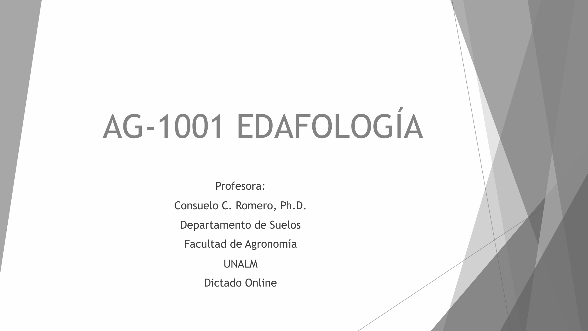 AG-1001 EDAFOLOGÍA Profesora: Consuelo C. Romero, Ph.D. Departamento de Suelos Facultad de Agronomía UNALM Dictado Online Continuación 2. Regulador de suministros de agua Si el suelo permite al agua que penetre totalmente… Si el suelo tiene una base impermeable… 3. Suelos como recicladores de materiales frescos 4. Hábitat para macro y microorganismos del suelo 5. Base para desarrollo ingenieril FIN del CAPITULO 1
