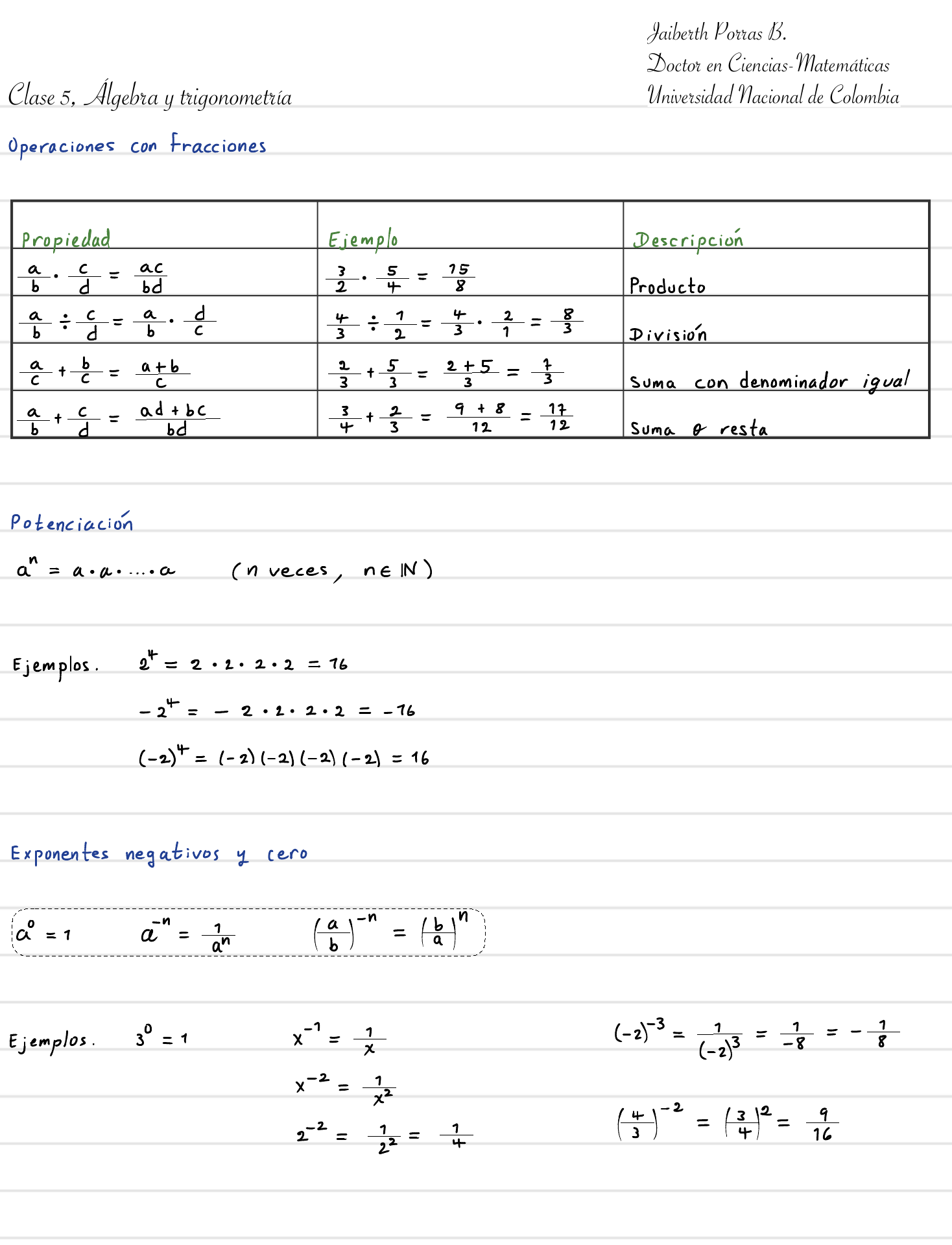 Clase 5, Álgebra y trigonometría Jaiberth Porras B. Doctor en Ciencias-Matemáticas Universidad Nacional de Colombia