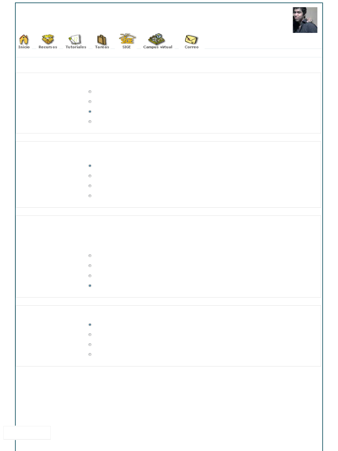 FELIPE ALANIS BAUTISTA Actualizar perfil Mis asignaturas Salir Lunes 28 mayo 2012 ESAD ► FI ► Cuestionarios ► Examen final ► Intento 1 1 Puntos: 10 Seleccione una respuesta. a. Materialismo y realismo b. Idealismo y cientificismo c. Realismo y empirismo d. Materialismo e idealismo Identifica los pilares filosóficos que sirven como fuente del conocimiento científico: 2 Puntos: 10 Seleccione una respuesta. a. Cualitativa b. Experimental c. Cuantitativa d. Documental En este tipo de investigación se indaga en situaciones naturales, a fin de dar sentido a los fenómenos ocurridos, atendiendo al significado que las personas le otorgan. 3 Puntos: 10 Seleccione una respuesta. a. Razonamiento lógico b. Razanamiento secuencial c. Razonamiento inductivo d. Razonamiento deductivo Selecciona el tipo de razonamiento y explicación dada que corresponde a las siguientes premisas. Premisa 1. Todos los seres humanos son inteligentes. Premisa 2. Los españoles son seres humanos. Conclusión. Los españoles son inteligentes. 4 Puntos: 10 Seleccione una respuesta. a. La experiencia b. La observación c. El método d. La demostración ¿En qué se basa el conocimiento empírico? Examen final Tiempo restante FI: Examen final http://aula26.abiertayadistancia.sep.gob.mx/avAET27/mod/quiz/attempt.p... 1 de 3 28/05/2012 07:19 p.m. 5 Puntos: 10 Seleccione una respuesta. a. Pura b. Experimental c. Documental Lee con atención lo siguiente. "El corazón humano es un órgano vital y sus diferentes formas y tamaños son objeto de estudio y medición, en cuanto va aumentando el tamaño, la persona esta expuesta a sufrir enfermedades cardiovasculares, que le provocarían severos daños en su salud" ¿Qué tipo de investigación es aplicable en este caso? FI: Examen final http://aula26.abiertayadistancia.sep.gob.mx/avAET27/mod/quiz/attempt.p... 2 de 3 28/05/2012 07:19 p.m. 6 Puntos: 10 Seleccione una respuesta. a. A, B y E b. A, C y D c. B, C y D d. A, B y C Selecciona tres características del conocimiento científico: A) Verificable B) Metódico C) Subjetivo D) Se basa en la experiencia E) Predictivo 7 Puntos: 10 Seleccione una respuesta. a. generalizar y profundizar los conocimientos. b. describir el modelo a utilizar. c. abordar un problema. d. realizar un ensayo. El método científico, utilizado en la investigación, comprende procedimientos para 8 Puntos: 10 Seleccione una respuesta. a. Abstracta b. Empírica c. Fáctica d. Formal Es la ciencia que se encarga de estudiar aspectos ideales. 9 Puntos: 10 Seleccione una respuesta. a. Hipótesis, resultados y objetivos b. Hechos, teorías y modelos c. Objetos, lógica y observación d. Problemas, razonamiento y conocimiento Elementos que permiten dar inicio a un proceso serio de investigación científica y que, basados en sí mismos, producen nuevos conocimientos. 10 Puntos: 10 Seleccione una respuesta. a. La revisión de literatura, bases doctrinarias, preguntas de investigación que fundamentan el trabajo b. El conocimiento empírico, el razonamiento deductivo y las variables cuantitativas que fundamentan el trabajo c. La revisión de la literatura, el razonamiento inductivo y las variables cualitativas que fundamentan el trabajo d. Las bases doctrinarias, el razonamiento Inductivo y el paradigma que fundamentan el trabajo Para efectuar una investigación sobre "La deserción de estudiantes del nivel medio superior en México" el Marco teórico comprendería: Usted se ha autentificado como FELIPE ALANIS BAUTISTA (Salir) Educación Superior Abierta y a Distancia Puebla #143 - Piso E3, Col. Roma, Del. Cuauhtémoc C.P. 06700 México, D.F. Teléfonos: 01 800 11 27 SES | 01 800 11 27 737 Horario de atención: de 9:00 a 18:00 hrs. FI: Examen final http://aula26.abiertayadistancia.sep.gob.mx/avAET27/mod/quiz/attempt.p... 3 de 3 28/05/2012 07:19 p.m.