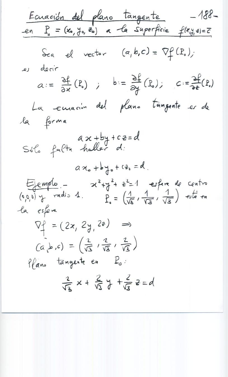 plano tangente a una superficie de nivel
