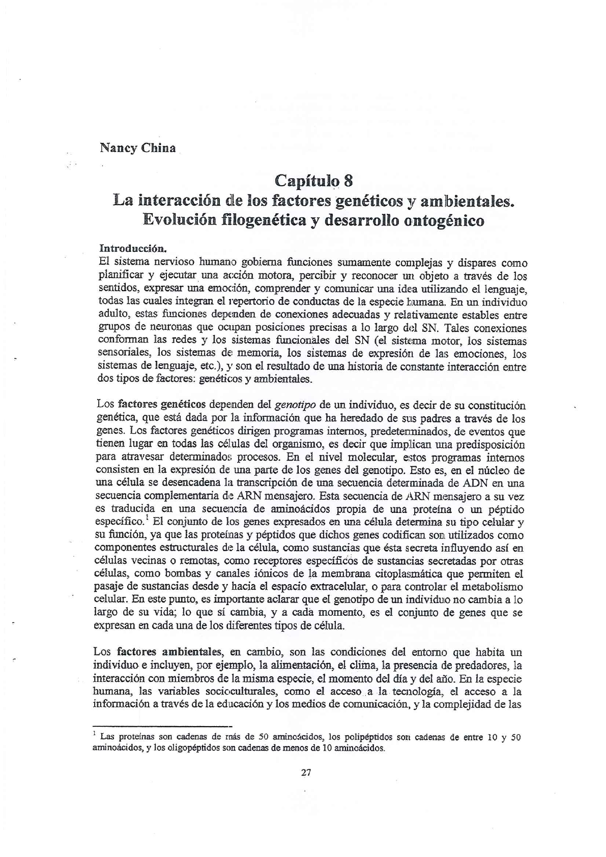 China, N La interacción de los factores genéticos y ambientales Evolución filogenética y desarrollo ontogénico