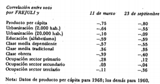 Lo que hace el Chi2 es comparar lo que yo observé contra lo que hubiera esperado bajo la hipótesis nula. Las cosas que contribuyen a que Chi2 sea grande: - Cuanto diferente sea lo observado de lo esperado. Cuanto más grandes sean las muestras y más grandes las frecuencias el Chi2 será aún más grande. Se necesita para esto mucha correlación entre dos variables y un N grande. Cuando la probabilidad es más chica que 0.05 podemos afirmar que una correlación sea estadísticamente significativa. La probabilidad de obtener una correlación es en función de afirmar que la hipótesis nula fuese cierta. Clase 26/10. Texto Mora y Araujo: las bases estructurales del peronismo. Repaso histórico. Estudios de sociología electoral, Mora y Araujo edita este libro: el voto peronista (1980). Las tecnologías no estaban muy desarrolladas, ni las computadoras ni las encuestas. Este artículo está basado en datos tales como voto, PBI per cápita, con unidades de análisis son las provincias. La matriz de datos del autor tiene 24 unidades de análisis. En este estudio la VD el porcentaje de voto por el FREJULI, el foco esta puesto en el voto por el peronismo y es una variable porque varía. El frejuli no saco el mismo porcentaje de votos en las 24 unidades de análisis. Las VI, las explicaciones que intenta darle al voto peronista son las diferencias de desarrollo económico y social de las provincias. Esto lo mide a través de ciertos indicadores como urbanización (poblacion urbana, indicador imperfecto), educación (tasa de alfabetismo), etc. La correlación negativa es bastante fuerte entre PBI per cápita y el voto por el FREJULI, al peronismo le fue mejor en las provincias más pobres y viceversa: es decir, a mayor voto del FREJULI menor PBI per cápita. A menor voto del FREJULI mayor PBI per cápita. Esto se podría representar en un gráfico de dispersión. En el cual tendríamos en el eje X el PBI per cápita y en el eje Y tendríamos el voto por el FREJULI donde la recta de tendencia se mostraría claramente de pendiente negativa donde a mayor PBI per cápita menor voto por el FREJULI y viceversa. La relación es bastante intensa. La relación es bastante similar al segundo indicador. Las cosas cambian mucho según como definas al indicador, por eso la diferencia entre urbanización de 2.000 habitantes y entre 20.000. En cuanto al indicador alfabetismo (la variable conceptual es educación medida por el indicador alfabetismo). La correlación de -0.59 nos dice que las provincias con mayor tasa del alfabetismo votan menos por el peronismo. (confundir las unidades de análisis es una falacia ecológica, cuando creo que una correlación de nivel general aplica a niveles individuales. Es decir, creer que esta correlación implicaría que la gente menos educada votaría menos por el FREJULI. Hay correlación a nivel macro, no implica que se pueda generalizar a nivel micro). En cuanto al indicador de clase obrera que es de -0.39 hay una correlación negativa entre clase obrera y voto por el FREJULI. Es decir, a más clase obrera menos voto por el FREJULI. Esto puede considerarse contraintuitivo si no tiene en cuenta que en las provincias más urbanizadas es lógico que estén más industrializadas y ahí haya más obreros. Las provincias con más industrias tienden a ser más ricas y tienen más clase media la cual no votó al FREJULI. La mayor parte de la gente no son obreros. Cuando hablamos de obreros no estamos hablando de pobres, si bien hay heterogeneidad dentro de la clase. El autor nos dice que la coalición electoral del peronismo está compuesta por la coalición metropolitana que es muy obrera y en el interior donde no hay obreros hay población rural, pobres urbanos, gente que trabaja en los servicios, empleadas domésticos, empleados públicos de baja remuneración y esa es la coalición peronista del interior. El mensaje politológico de este texto es que el peronismo es dos partidos en uno: es un partido laborista en las provincias metropolitanas y es un partido de clases bajas populares en las provincias donde no hay industrias. (al estilo de Gibson). Esta correlación negativa nos hace ruido porque creemos que nos dice que los obreros no votan por el peronismo, pero en realidad hacer esto sería cometer una falacia ecológica. TEXTO GERVASONI. Hace un análisis de las dos elecciones que ganó Menem 89 y 95 con el fin de estudiar la transformación que sufrió el PJ. Era un partido de políticas de libre mercado en lo económico, prooccidental en política exterior y conservador en temas morales: era un partido conservador entonces. El partido cambió radicalmente, la argentina hizo una reforma muy intensa. Después de privatizar todo, abrir la economía, alinearse con EE.UU., indultar a los militares y a los guerrilleros, la gente va y lo vota más que en el 89. Lo reeligen en un año crítico, como el 95 con el efecto de la crisis del tequila. 47% en el 89, 50% en el 95 entonces uno se pregunta ¿serán los mismos los que lo votaron? El 84% de los que votaron por Luder en el 83, volvieron a votar por el PJ con Menem en el 89. De ese 100% un 3% se pasó del PJ a votar por Angeloz en el’89. Esencialmente, el PJ conservó mucho voto de la elección anterior. El 66,7% del 100% que votó por el PJ en el ’89 volvió a votar por el PJ en el ‘95. Si a nivel agregado Menem saco más votos en el ‘95 que en el ‘89 pero perdió votos del PJ, entonces ganó votos de otro lado. la fidelidad del voto peronista baja del 84% al 66%. Es mayor la fidelidad entre Luder y Menem que entre Menem y Menem. Un 21,6% de los votos en el 95 se va al FREPASO.