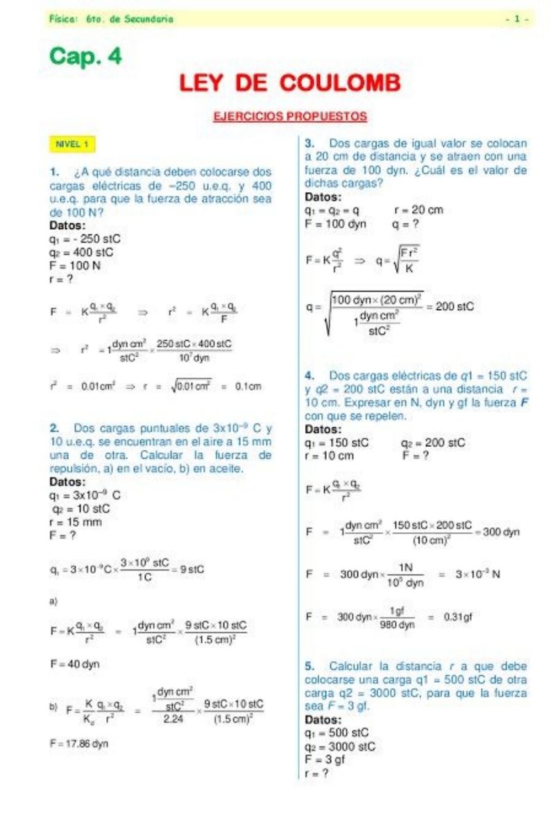ley de coulumb ejercicios