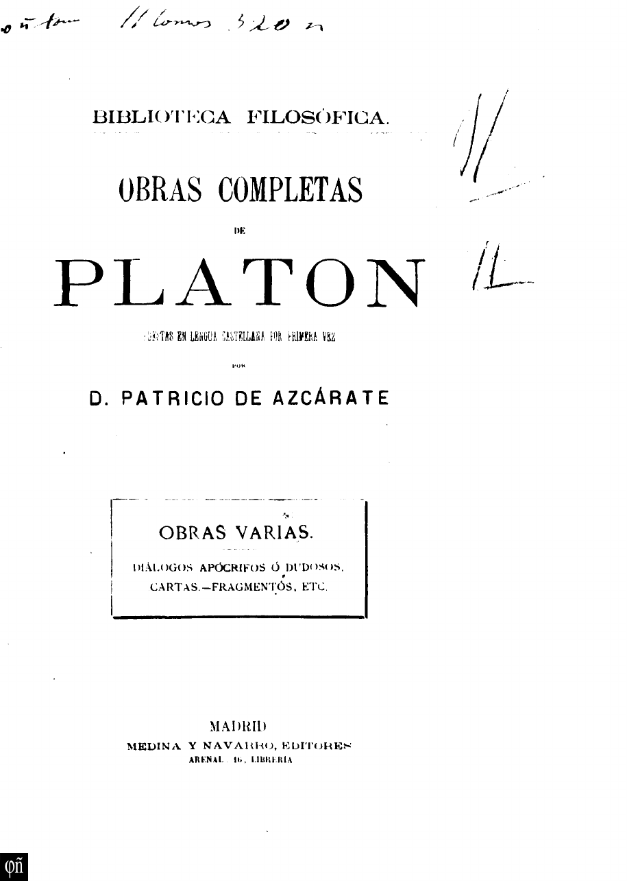 ^ H - - / > - - / / / 5 ^ ^ ^-^ BIBL10ri :GA FILOSÓFICA. OBRAS COMPLETAS IIK ;!.;1í¡! EN LESliüí Cfi'l'íLLiM M miíEhf. M D. PATRICIO DE AZCÁRATE ' / PLATÓN ' X— -̂ OBRAS VARIAS. niAl.OGOS APÓCRIFOS Ú DI'DOSOS. CARTAS.-FRAGMENTOS, ETC, MADlíID MEDINA Y N A V A H H ( J , KUITlJHKí ARt.NAI. Il>. l.imilItlA Platón, Obras completas, edición de Patricio de Azcárate, y tomo 11, Madrid 1872 http://www.filosofia.org Platón, Obras completas, edición de Patricio de Azcárate, y tomo 11, Madrid 1872 http://www.filosofia.org OBRAS COMPLETAS DE PLATÓN. Platón, Obras completas, edición de Patricio de Azcárate, y tomo 11, Madrid 1872 http://www.filosofia.org K«ta trndiHtion es propifdad; qii(><laiiilii Iii'clio el ile].('i>ito que U ley previene. IniprenlB de la Bibliulrca de liintruocion y Recreo.—Capel lanea, í>, principal. Platón, Obras completas, edición de Patricio de Azcárate, y tomo 11, Madrid 1872 http://www.filosofia.org B I B I ^ I O T E C - A . F I L O S O F I O A . . OBRAS COMPLETAS DE P L A T Ó N ÍCELT^ ES LE;;:I;* u::Ill:^¡. a vúrní \ii D. PATRICIO DE AZCÁRATE SOCIO COnnESI'ONDIF.NTF, I)F I,A ACADEMIA DE CIENCIAS MOHAl.ESV F0L1TICA8 Y DE l.A ACADEMIA DK LA IIISTOKIA. TOMO XI. MADRID MEDINA Y NAVAHHO, EDITOUES ARENAL, IC), L I B K E U Í A 1872 Platón, Obras completas, edición de Patricio de Azcárate, y tomo 11, Madrid 1872 http://www.filosofia.org Platón, Obras completas, edición de Patricio de Azcárate, y tomo 11, Madrid 1872 http://www.filosofia.org OBRAS VARIAS. DIÁLOGOS APÓCRIFOS 6 DUDOSOS.-CARTAS. FRAGMENTOS, ETC. Platón, Obras completas, edición de Patricio de Azcárate, y tomo 11, Madrid 1872 http://www.filosofia.org Platón, Obras completas, edición de Patricio de Azcárate, y tomo 11, Madrid 1872 http://www.filosofia.org EL SEGUNDO HIPIAS. ARGUMENTO. Sin gracia en la forma, sin verdad y sin interés en el fondo, este diálog-o parece indig-no en todos conceptos de fií,nirar ni ánii entre las composiciones de menos mérito de Platón. Sin einharg-o, el Secundo Ilipias es citado mu- chas veces por Aristótedes (1), principalmente en su Meta- física {'¿), del mismo modo qiielos demás diálogos recono- cidos como auténticos; y estando por medio esta autoridad, será siempre temerario neí,'ar gratuitamente que .sea autén- tico. ¿No es permitido suponer, que llegó un dia, en que el adversario de los sofistas qui.so ejercitarse, para mejor atacarles, con sus propias armas, como lo hizo en el Pro- fágoras y en el Kutidema, y que (piiso tenerla compla- cencia de probarse á si mismo y probar á los sofistas, que sabia, cuando llegaba el caso, ser más sutil, más exage- rado, más falso, más sofista, en una palabra, que ellos mismos? Esta es la mejor prueba de que los conocia bien. Sólo asi podria explicar.se que Platón se tomase el trabajo de sostener en una conversación de muchas páginas para- dojas, tales como las que nos limitamos á reproducir para que sirvan como de resumen del diálogo. (1) Pasajes citados (ed. Steph.) p.365, B; 372, A; 374, C; 3GC>, B. (2) Mclafisica, lib. IV. cap. XXIX. Platón, Obras completas, edición de Patricio de Azcárate, y tomo 11, Madrid 1872 http://explicar.se http://www.filosofia.org 8 Hé aquí la primera. No hay diferencia entre el menti- roso y el hombre veraz: ambos saben igualmente la ver- dad, puesto que el uno la disimula, sabiéndola; y el otro la sabe, puesto que la dice. Veamos la segunda. El mentiroso es superior al hom- bre veraz en cuanto disimula la verdad con conocimiento y voluntad, mientras que el hombre veraz puede enga- ñarse y engañar á los demds involuntariamente: el em- bustero vale más, porque sabe lo que hace y hace lo que quiere, á saber, engañar. En otros términos, y generalizando, es una prueba de superioridad el hacer voluntariamente el mal, y una señal de inferioridad el hacerlo sin saberlo. Si ha de tomarse en serio el tScijiind» Ilipias, nos encontramos aquí una nueva moral de Platón. Vale msis no ver en este juguete sofístico, demasiado largo sin duda, otra cosa que un en- sayo de ironía socrática, hecho para desconcertar á un dis- cípulo de Gorgias. Platón, Obras completas, edición de Patricio de Azcárate, y tomo 11, Madrid 1872 http://www.filosofia.org SEGUNDO HIPIAS ó DE LA MENTIRA. R U D I C O , HIJO riE APEMANTES, ATENIENSE. -SÓCllATES.-HIPIAS. Euninn. Y tú, Sócrates, ¿porqué guardas tanto silencio después (pie Hipias nos ha referido cosas tan bellas? (1). ¿Porqué no aplaudes como los demás? () si hay algún punto que no te satisfaga, ¿por qué no le refutas, tanto más cuanto que todos nosotros podemos lisonjearnos de estar versados, cual ninguno, en el estudio de la filosofía? SÓCRATES. Cierto es, Eudico, que con gusto preguntarla á Hipiaa sohre algunas de las cosas que ha dicho respecto á Home- ro. He oido decir á tu padre Apemantes, que la lUada de Homero era mejor poema que la Odisea, siendo aquel más bello que éste, tanto cuanto Aquiles es superior á Ulises; porque sostenía que estos dos poemas están hechos en (1) Rn el Primer ¡íipias el sofista citó á Sócrates para la es- cuela del rector l'ilostrato, donde debe recitar un discurso k que estas primeras palabras hacen alusión. Á. seguida de esta lectura tiene lug'ar este diálogo entre Eudico, Sócrates é Hipias, en pre- sencia de los oyentes que no han abandonado ellocal. Véase el Primer Hipias. Platón, Obras completas, edición de Patricio de Azcárate, y tomo 11, Madrid 1872 http://www.filosofia.org 10 alabanza el uno de Aquiles y el otro de Ulises. Desearía saber de Hipias, si no lo lleva á mal, lo que piensa de estos dos héroes y á cuál de los dos juzga superior, ya que nos ha dicho tantas cosas y de tantas especies sobre diferentes poetas, y en particular sobre Homero. EUDICO. De seguro que, si haces alguna pregunta á Hipias, no tendrá ninguna dificultad en contestarte. ¿No es cierto, Hipias, que responderás á Sócrates, si te preg