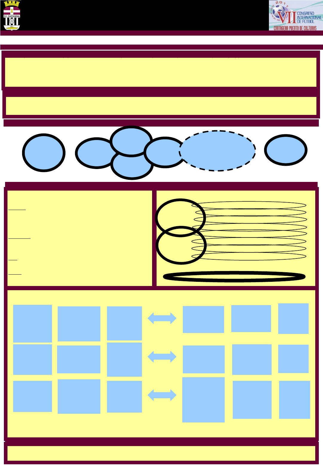 Carlos Victoria González Preparador Físico Fútbol Base F.C.Cartagena S.A.D. PAUTAS PARA LA ELABORACIÓN DE UN MODELO DE JUEGO Juan Expósito Bautista Coordinador Técnico Fútbol Base F.C.Cartagena S.A.D. Miguel Escribano García Preparador Físico Fútbol Base F.C.Cartagena S.A.D. A la hora de poner en funcionamiento un proyecto de fútbol base, consideramos imprescindibles varios aspectos. Tenemos que crear un marco conceptual en el que apoyarnos a la hora de elaborar la filosofía de las bases, el modelo de juego, el modelo de jugador y el modelo de entrenamiento, todos ellos interdependientes entre si. Nos centramos en la elaboración del modelo de juego, que viene así pues impregnado de unos condicionantes coyunturales y estructurales que en ocasiones, van más allá de un juego hecho deporte. La forma de vivir el fútbol de cada miembro integrante de una plantilla, es determinante para elaborar un modelo de juego común que sea sentido por todos como propio. La actuación del entrenamiento tendrá que ser provocar que se produzcan situaciones variadas y creativas que favorezcan el estilo que más se adecue a las expectativas del conjunto en general. Definiremos el modelo de juego y desarrollaremos los patrones de comportamiento deseables para dicho modelo. De la misma manera, desglosaremos una serie de principios y subprincipios de juego, sobre los cuales priorizaremos el trabajo, ya que no vamos a separar las partes del juego, el cual se entrena en especificidad. - Definir una “forma de jugar” - Provocar la aparición de forma preferente de unas determinadas conductas sobre otras - Crear un marco conceptual que nos permita estructurar y periodizar el entrenamiento - Conocer las diferentes partes que interactúan a la hora de definir un modelo de juego PRINCIPIOS Y SUBPRINCIPIOS - Casáis, L. Domínguez, E. , Lago, C. “Fútbol base: el entrenamiento en categorías de formación” Volumen I. Mc sports - Cervera, A. “Modelo organizacional-estratégico de entrenamiento en el fútbol”. Editorial Mc sports. - Espar, X. “Jugar con el corazón. La excelencia no es suficiente”. Editorial Plataforma, 2010. - Martín Acero, R. , Lago Peñas, C. “Deportes de equipo. Comprender la complejidad para elevar el rendimiento” Editorial Inde. Barcelona,2005. 1.INTRODUCCIÓN 2.OBJETIVOS 4. DESCRIPCIÓN Y DESARROLLO DEL MODELO DE JUEGO 5.BIBLIOGRAFÍA CARACTERÍSTICAS GENERALES DEL MODELO DE JUEGO El balón como punto de partida del juego. Alta posesión del mismo para provocar la creación de espacios y errores en el rival que nos permitan llegar en las mejores condiciones posibles a marcar un tanto. Por lo tanto, cuando lo perdemos o no lo tenemos el objetivo es ir en su busca, principalmente al campo contrario, recuperarlo lo antes posible y si es en zonas comprometidas, realizar acciones rápidas de ataque. Tengo balón Tenerlo el máximo tiempo posible y con posibilidades de progresar en superioridad para crear ocasiones lo más claras posibles sin perder el equilibrio defensivo. Zona defensiva asegurar pases, buscar pases de seguridad en distancias amplias para evitar la presión, no acercarse en exceso jugadores de la siguiente línea. Buscar de un lado a otra hasta encontrar el pasillo o el pase interior. Zona de centrocampistas, apoyos constantes al poseedor del balón, buscar la amplitud en el juego para conseguir profundidad que puede venir de alguien de una línea avanzada o de otro que se incorpore de segunda línea (centrocampista o defensa). Zona de finalización. Búsqueda de portería rival, apoyos más cortos, acciones de 1x1 o 2x2, finalizar jugadas en cuanto sea posible No tengo balón Recuperar lo antes posible, presionando de forma constante al poseedor del balón, alejándonos de nuestra portería en la medida de las posibilidades que marca el entorno. Adelantar la línea defensiva lo más lejos posible de la portería con el fin de mantener una presión lo más cerca que se pueda de la portería rival. Agrupar futbolistas en el centro del juego defensivo y llevarlos hacia zonas lejanas de posibles apoyos, cerrar todas las líneas de pase a máxima velocidad y evitar la circulación del balón en el centro del campo Pierdo Reestablecer el orden defensivo, presionando al poseedor del balón y recuperando posiciones defensivas más importantes (zonas más peligrosas). Para eso tengo que establecer un equilibrio dentro del sistema tanto cuando tenga como cuando no tenga el balón. Evitar el avance rápido cuidado con las pérdidas en zona de riesgo (definir las zonas de riesgo), cortarlas lo antes posible. Recupero Buscar lo antes posible la salida de balón hacia un espacio vacío, a ser posible una opción que se acerque a la portería rival dependiendo de la zona donde se robe se le imprimirá una velocidad u otra. Cuando recuperamos en la zona de iniciación, debe haber velocidad si es posible ya que los pases tienen que ser seguros, en zona de creación se puede lanzar en ruptura o conducir, igual que en finalización donde acabamos jugada rápidamente para obligar la inferioridad contraria al perder el balón. Siempre desmarques de apoyo y ruptura, mínimo 2 ó 3 salidas COMPORTAMIENTOS DESEABLES DEL EQUIPO CON Y SIN BALÓN CON BALÓN Llevar el balón a zonas vacías de oponentes (creación y ocupación) Superioridad en zonas de creación y finalización Dar soluciones al poseedor del balón Si no estoy en disposición de atacar, defiendo Equilibrio en la ocupación de espacios CON BALÓN Posición favorable para el ataque al aplicar la defensa Cerrar eje longitudinal portería balón Asegurar zona de finalización Alcanzar Dribling Remate Pase Pared Desmarque Finta Conducción Orientación corporal Controles Defender Anticipación Interceptación Acoso Carga Finta Orientación corporal Alcanzar Líneas de pase Creación y ocupación espacios Sorprender 2ª línea Conducir para atraer Llegar 2ª Jugada, 2ª palo Acabar jugadas Defender Líneas de pase Ci