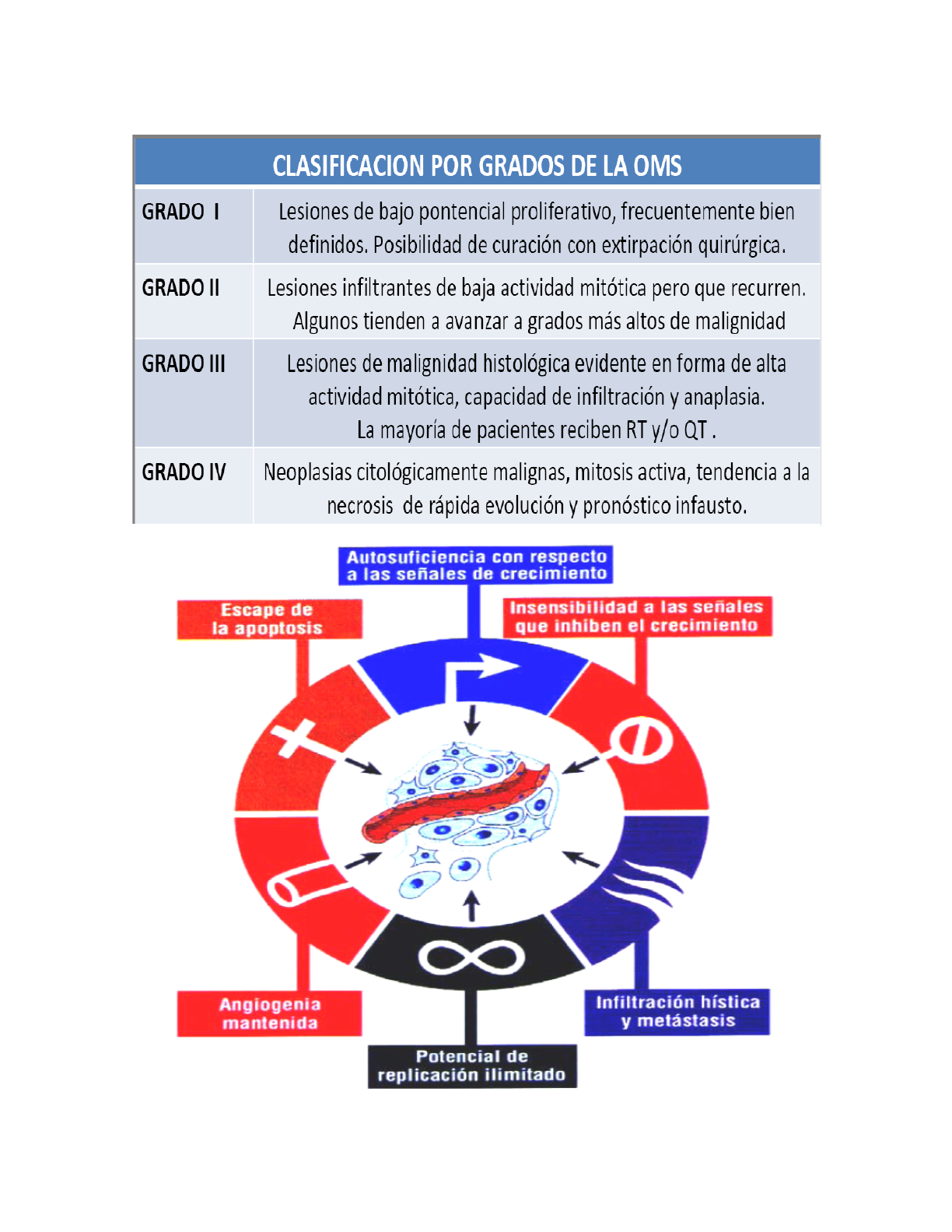 Astrocitoma pilocítico (grado I - Circunscrito) Astrocitomas difusos de bajo grado Astrocitoma anaplásico (grado III) Glioblastoma (grado IV)