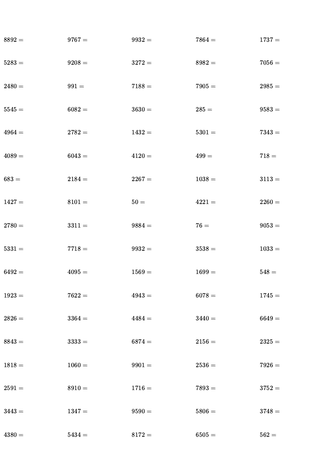 Sistema de enumeración Chino Convertir al sistema de enumeración chino: 1). 2). 3). 4). 5). 6). 7). 8). 9). 10). 11). 12). 13). 14). 15). 16). 17). 18). 19). 20). 21). 22). 23). 24). 25). 26). 27). 28). 29). 30). 31). 32). 33). 34). 35). 36). 37). 38). 39). 40). 41). 42). 43). 44). 45). 46). 47). 48). 49). 50). 51). 52). 53). 54). 55). 56). 57). 58). 59). 60). 61). 62). 63). 64). 65). 66). 67). 68). 69). 70). 71). 72). 73). 74). 75). 76). 77). 78). 79). 80). 81). 82). 83). 84). 85). 86). 87). 88). 89). 90). 8892 = 9767 = 9932 = 7864 = 1737 = 5283 = 9208 = 3272 = 8982 = 7056 = 2480 = 991 = 7188 = 7905 = 2985 = 5545 = 6082 = 3630 = 285 = 9583 = 4964 = 2782 = 1432 = 5301 = 7343 = 4089 = 6043 = 4120 = 499 = 718 = 683 = 2184 = 2267 = 1038 = 3113 = 1427 = 8101 = 50 = 4221 = 2260 = 2780 = 3311 = 9884 = 76 = 9053 = 5331 = 7718 = 9932 = 3538 = 1033 = 6492 = 4095 = 1569 = 1699 = 548 = 1923 = 7622 = 4943 = 6078 = 1745 = 2826 = 3364 = 4484 = 3440 = 6649 = 8843 = 3333 = 6874 = 2156 = 2325 = 1818 = 1060 = 9901 = 2536 = 7926 = 2591 = 8910 = 1716 = 7893 = 3752 = 3443 = 1347 = 9590 = 5806 = 3748 = 4380 = 5434 = 8172 = 6505 = 562 = 91). 92). 93). 94). 95). 96). 97). 98). 99). 100). 101). 102). 103). 104). 105). 106). 107). 108). 109). 110). 111). 112). 113). 114). 115). 116). 117). 118). 119). 120). 121). 122). 123). 124). 125). 126). 127). 128). 129). 130). 131). 132). 133). 134). 135). 136). 137). 138). 139). 140). 141). 142). 143). 144). 145). 146). 147). 148). 149). 150). 151). 152). 153). 154). 155). 156). 157). 158). 159). 160). 161). 162). 163). 164). 165). 166). 167). 168). 169). 170). 171). 172). 173). 174). 175). 176). 177). 178). 179). 180). 181). 182). 183). 184). 185). 4685 = 9885 = 8760 = 845 = 2308 = 4729 = 5326 = 6141 = 7242 = 3247 = 9577 = 1571 = 4403 = 7970 = 6249 = 4200 = 7900 = 4552 = 5519 = 4445 = 35 = 5564 = 5697 = 6528 = 7687 = 6789 = 3824 = 5040 = 9781 = 3011 = 1483 = 8801 = 1531 = 9008 = 8981 = 7901 = 8530 = 7471 = 2904 = 7217 = 1361 = 1369 = 935 = 6615 = 2250 = 1563 = 8400 = 7 = 3887 = 4963 = 5344 = 2597 = 9113 = 223 = 9132 = 2968 = 6362 = 5782 = 7348 = 6667 = 3838 = 8695 = 5432 = 6637 = 6477 = 5936 = 2961 = 2048 = 8661 = 2745 = 6387 = 6913 = 3422 = 4290 = 9163 = 2207 = 1265 = 1196 = 6236 = 9471 = 3858 = 1136 = 1691 = 5479 = 8338 = 6765 = 8073 = 3247 = 1278 = 2257 = 525 = 9148 = 6455 = 3062 = 943 = 186). 187). 188). 189). 190). 191). 192). 193). 194). 195). 196). 197). 198). 199). 200). 201). 202). 203). 204). 205). 206). 207). 208). 209). 210). 211). 212). 213). 214). 215). 216). 217). 218). 219). 220). 221). 222). 223). 224). 225). 226). 227). 228). 229). 230). 231). 232). 233). 234). 235). 236). 237). 238). 239). 240). 241). 242). 243). 244). 245). 246). 247). 248). 249). 250). 251). 252). 253). 254). 255). 256). 257). 258). 259). 260). 261). 262). 263). 264). 265). 266). 267). 268). 269). 270). 271). 272). 273). 274). 275). 276). 277). 278). 279). 280). 8000 = 39 = 2304 = 5171 = 235 = 5071 = 7886 = 9732 = 2293 = 6869 = 1114 = 7969 = 2372 = 6825 = 5923 = 3675 = 7445 = 4527 = 5091 = 9993 = 5462 = 8672 = 7363 = 395 = 1308 = 8105 = 3029 = 3960 = 6638 = 82 = 8856 = 4797 = 8554 = 7684 = 6 = 9608 = 5279 = 1418 = 7226 = 6716 = 376 = 530 = 4423 = 7396 = 4001 = 4435 = 2247 = 565 = 2756 = 4104 = 970 = 9208 = 3937 = 8416 = 1588 = 7364 = 9553 = 6631 = 7070 = 598 = 9543 = 7763 = 1407 = 5972 = 1291 = 7752 = 5007 = 1107 = 9381 = 8330 = 2880 = 3757 = 3841 = 8955 = 7179 = 615 = 4368 = 9805 = 1588 = 7957 = 9729 = 8449 = 8756 = 193 = 9862 = 9017 = 2853 = 1246 = 8122 = 1861 = 6152 = 6797 = 3194 = 3877 = 5172 = 281). 282). 283). 284). 285). 286). 287). 288). 289). 290). 291). 292). 293). 294). 295). 296). 297). 298). 299). 300). 301). 302). 303). 304). 305). 306). 307). 308). 309). 310). 311). 312). 313). 314). 315). 316). 317). 318). 319). 320). 321). 322). 323). 324). 325). 326). 327). 328). 329). 330). 331). 332). 333). 334). 335). 336). 337). 338). 339). 340). 341). 342). 343). 344). 345). 346). 347). 348). 349). 350). 351). 352). 353). 354). 355). 356). 357). 358). 359). 360). 361). 362). 363). 364). 365). 366). 367). 368). 369). 370). 371). 372). 373). 374). 375). 5618 = 1146 = 8871 = 1180 = 2108 = 9347 = 5760 = 7582 = 9600 = 1380 = 6278 = 6573 = 9607 = 9818 = 1551 = 3583 = 6936 = 6493 = 6722 = 3481 = 1889 = 8626 = 3177 = 6990 = 7848 = 82 = 3585 = 8308 = 4524 = 5112 = 1199 = 8494 = 6178 = 8746 = 5504 = 6654 = 6643 = 5641 = 6528 = 1041 = 782 = 5414 = 5473 = 8027 = 8838 = 5592 = 2850 = 7972 = 256 = 2553 = 5495 = 414 = 4371 = 6318 = 9597 = 585 = 4245 = 4712 = 462 = 9734 = 4776 = 5894 = 5784 = 3053 = 2595 = 5470 = 3243 = 7118 = 5100 = 1183 = 9710 = 3023 = 3337 = 7160 = 4705 = 9662 = 5361 = 4733 = 6391 = 9535 = 5298 = 5994 = 6287 = 3465 = 6762 = 8498 = 6642 = 3884 = 2343 = 4284 = 2543 = 6084 = 1106 = 745 = 2122 = 376). 377). 378). 379). 380). 381). 382). 383). 384). 385). 386). 387). 388). 389). 390). 391). 392). 393). 394). 395). 396). 397). 398). 399). 400). 6247 = 7797 = 5658 = 3920 = 2578 = 1795 = 2837 = 3807 = 6633 = 4629 = 7431 = 1534 = 9141 = 9813 = 7772 = 7417 = 6705 = 8550 = 1318 = 9768 = 5537 = 5663 = 8295 = 3493 = 9107 = HOJA DE RESPUESTAS Sistema de enumeración Chino Convertir al sistema de enumeración chino: 1). 8C8B9A2 2). 9C7B6A7 3). 9C9B3A2 4). 7C8B6A4 5). 1C7B3A7 6). 5C2B8A3 7). 9C2BO8 8). 3C2B7A2 9). 8C9B8A2 10). 7CO5A6 11). 2C4B8A 12). 9B9A1 13). 7C1B8A8 14). 7C9BO5 15). 2C9B8A5 16). 5C5B4A5 17). 6CO8A2 18). 3C6B3A 19). 2B8A5 20). 9C5B8A3 21). 4C9B6A4 22). 2C7B8A2 23). 1C4B3A2 24). 5C3BO1 25). 7C3B4A3 26). 4CO8A9 27). 6CO4A3 28). 4C1B2A 29). 4B9A9 30). 7B1A8 31). 6B8A3 32). 2C1B8A4 33). 2C2B6A7 34). 1CO3A8 35). 3C1B1A3 36). 1C4B2A7 37). 8C1BO1 38). 5A 39). 4C2B2A1 40). 2C2B6A 41). 2C7B8A 42). 3C3B1A1 43). 9C8B8A4 44). 7A6 45). 9CO5A3 46). 5C3B3A1 47). 7C7B1A8 48). 9C9B3A2 49). 3C5B3A8 50). 1CO3A3 51). 6C4B9A2 52). 4CO9A5 53). 1C5B6A9 54). 1C6B9A9 55). 5B4A8 8892 = 9767 = 9932 = 7864 = 1737 = 5283 = 9208 = 3272 = 8982 = 7056 = 2480 = 991 = 7188 = 7905 = 2985 = 5545 = 6082 = 