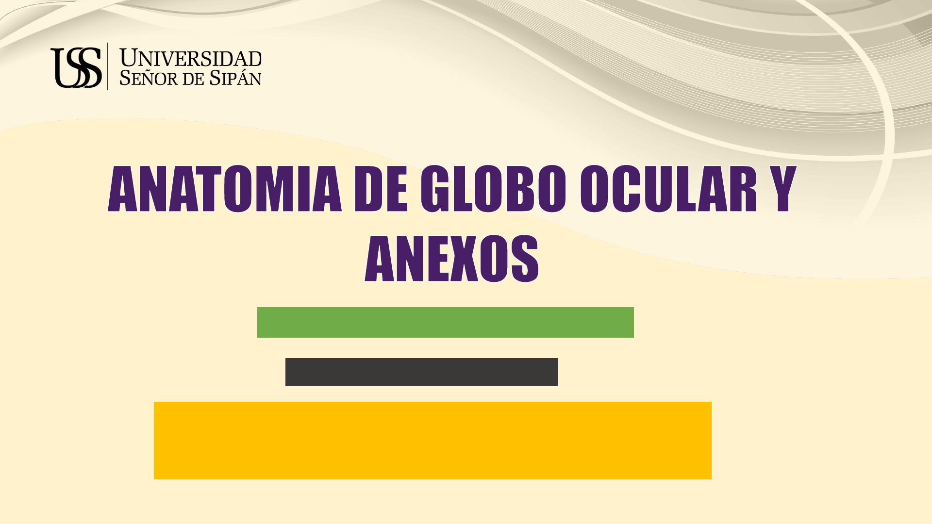 DR. EDINZON BANDA BACA Tema SEMANA 10 CURSO: ESTRUCTURA Y FUNCIÓN I MEDICO ESPECIALISTA ORTOPEDIA Y TRAUMATOLOGÍA – H.N.ALMANZOR.A.A DOCENTE DE LA USS Órbita ✤ Volumen 30 ml, 1/5 corresponde al ojo ✤ Techo: Hueso frontal y alas menores del esfenoides, fosa lagrimal, Fisura orbitaria superior ✤ Pared lateral: Ala mayor del esfenoides, hueso cigomático (malar), tubérculo orbitario lateral (Whitnall) Órbita ✤ Piso: Maxilar y la apófisis orbitaria del hueso palatino ✤ Pared Medial: Hueso lagrimal, etmoides, cuerpo del esfenoides CAPAS DEL GLOBO OCULAR A)Capa externa, fibrosa. B)Capa media, vascular. C)Capa interna, sensorial. 1)Esclerótica o esclera. (5/6) 2)Cornea. (1/6) 1)Iris : – Diafragma del ojo (pupila). – Color del ojo. – Tamaño de CA. 2)Cuerpo ciliar. – Acomodación (musc. ciliar). – Producción humor acuoso (procesos ciliares). 3)Coroides.(pigmento,nutrición). CAPA INTERNA RETINA : Tejido delgado,transparente. Cubre 2/3 posteriores. Capta imágenes - transmisión cerebro. CAPA EXTERNA CAPA MEDIA ESCLEROTICA CAPA EXTERNA O FIBROSA • 5/6 partes, tejido blanco y fibroso que recubre la parte posterior del ojo, desde la córnea hasta el nervio óptico. • También recubre la coroides y está cubierta por otra capa de tejido denominada conjuntiva. • Formada por tres capas, que son: • La capa fusca es la parte interna y contiene vasos sanguíneos que aportan el fluido al interior del ojo. • La capa fibrosa contiene el colágeno. • La capa epiesclera es el tejido que facilita el deslizamiento del globo ocular con las otras estructuras para realizar los movimientos oculares. CÓRNEA ✤ Tejido transparente, 1/6 parte del ojo, fibras de colágeno ✤ 550 micras de espesor en el centro ✤ Diámetro horizontal 11.75mm y vertical de 10.6mm ✤ Unida a la esclera por la unión esclero- corneal o LIMBO ✤ 5 capas: ✤ Epitelio ✤ Capa de Bowman ✤ Estroma ✤ Membrana de Descemet ✤ Endotelio CAPA EXTERNA O FIBROSA ✤ 90% del espesor total - Estroma, fibras de colágeno de distribución regular. ✤ Endotelio, monocapa ✤ Desturgencia esencial del estroma ✤ Muy susceptible a la lesión ✤ Pérdida celular por envejecimiento ✤ Reparación endotelial por aumento de tamaño y deslizamiento de las células existentes ✤ Nutrición de la córnea: Carece de vasos sanguíneos, se irriga por vasos del limbo, humor acuoso y lágrima.. ✤ Obtiene la mayor parte de su oxígeno de la atmósfera. ✤ Los nervios sensitivos proceden de la primera división (oftálmica) del V par craneal (trigémino) CÓRNEA CAPA MEDIA, VASCULAR O UVEA IRIS ✤ Divide a la cámara anterior de la posterior, ocupadas por el humor acuoso ✤ Estroma, esfínter y dilatador ✤ La apertura del iris es la pupila. ✤ Capas pigmentadas, continuación de la neuroretina y EPR(Epitelio pigmentario ratinal) ✤ Irrigación - Circulo mayor del iris ✤ Regula la cantidad de luz: Musculo dilatador y esfínter de la pupila ✤ Miosis: III NC / Midriasis: Simpático CUERPO CILIAR ✤ Triangular en corte transversal ✤ Pars plicatta(procesos ciliares) (2mm), pars plana (4mm) ✤ Procesos ciliares, origen del humor acuoso ✤ Músculo ciliar; fibras longitudinales, circulares y radiales: ACOMODACIÓN DEL CRISTALINO CAPA MEDIA, VASCULAR O UVEA ESFINTER DEL IRIS DILATADOR DEL IRIS EPITELIOPIGMENTARIO CIRCULO ARTERIAL MAYOR DEL IRIS P IE G U E S D E L IR CIRCULO ARTERIAL MENOR DEL IRIS CUERPO CILIAR IRIS COROIDES ✤ La coroides se encuentra entre la esclerótica y la retina ✤ Se constituye por tres capas de vasos sanguíneos coroideos: grandes (Capa de Haller), medianos (Capa de Sattler) y pequeños (Capa de Ruysch o coriocapilar interna). ✤ NUTRE A LA PORCIÓN EXTERNA DE LA RETINA ✤ Limitada en su interior por la membrana de Bruch y en su exterior por la esclera. ✤ Espacio supracoroideo CAPA MEDIA, VASCULAR O UVEA RETINA ✤ Recubre los 2/3 posteriores de la pared del globo ocular ✤ Se extiende por delante hasta la ora serrata y por detrás hasta la papila óptica, donde está fuertemente adherida al EPR (Epitelio pigmentario retinal), en el resto de su extensión su adhesión es laxa CAPA INTERNA O NERVIOSA • El eje visual del ojo pasa por una depresión de la retina llamada fó vea,que está rodeada por una zona con pigmento amarillo, la mácula lútea. La fó vea es la zona de mayor agudeza visual. • Las fibras nerviosas aferentes que salen de la retina convergen para formar el nervio ó ptico, que abandona el ojo por una parte de la esclerótica conocida como lámina cribosa . La retina que cubre la lámina cribosa, llamada papila ó ptica (disco ó ptico), no tiene fotorreceptores por lo que corresponde a una mancha ciega. RETINA CAPA INTERNA O NERVIOSA Mácula ✤ Se define de manera anatómica como la zona de 3mm que contiene el pigmento amarillo xantofilia, rodea a la fóvea central ✤ El diámetro de la fóvea es de 1.5mm y corresponde a la zona avascular de la angiografía con fluoresceína RETINA Fóvea Central ✤ Adelgazamiento de la capa nuclear exterior y desplazamiento centrífugo de las capas retinianas que están más cerca de la superficie interior de la retina. ✤ La foveola solo tiene conos fotorreceptores. PROPORCIONA LA VISION FINA. RETINA ✤ La retina recibe su aporte sanguíneo de dos orígenes: 1. Los coriocapilares, nutren el tercio exterior de la retina hasta la nuclear externa 2. Las ramas de la arteria central de la retina, nutren 2/3 internos de la retina ✤ La sangre total de la fóvea central depende de los coriocapilares RETINA MEDIOS DE REFRACCIÓN DEL OJO LAS ONDAS LUMINOSAS ATRAVIESAN DISTINTOS MEDIOS REFRINGENTES, ANTES DE LLEGAR A LA RETINA. • LA CÓRNEA • EL HUMOR ACUOSO • EL CRISTALINO • EL HUMOR VÍTREO ◼ ◼ ◼ ◼ Cámara anterior y posterior Composición similar a plasma pero menos proteínas Producción: procesos ciliares Absorción: ángulo iridocorneal (c. Post) ◼ Función: - mantiene forma - Aporta nutrientes H
