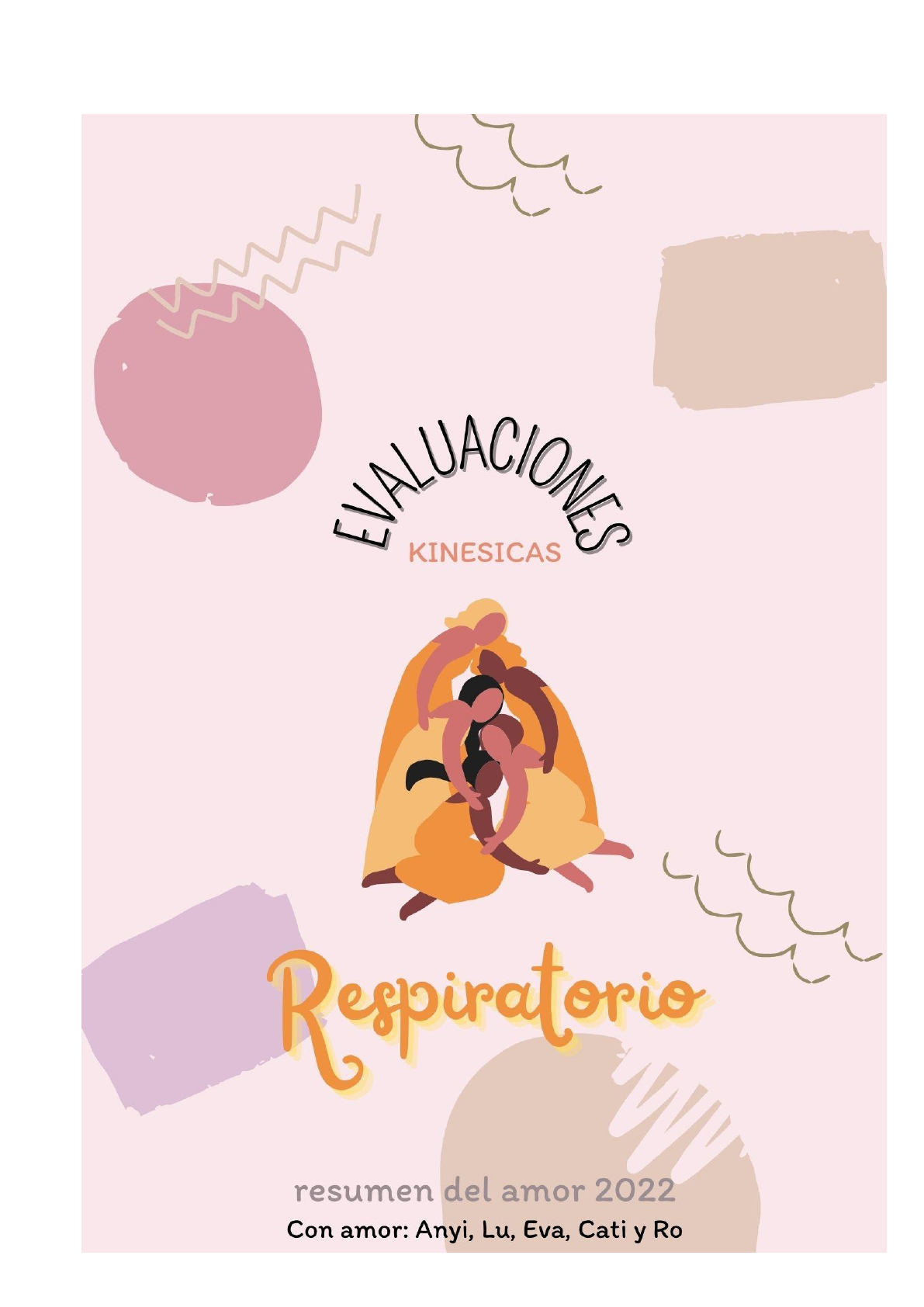 1 EVALUACIÓN DEL SISTEMA RESPIRATORIO Tiene que ser individualizada: - Antes - Durante - Después Historia clínica: es la constancia escrita de todos los exámenes médicos y estudios realizados, como asimismo de todo lo efectuado en el transcurso de la enfermedad y de los tratamientos llevados a cabo. Contenidos: 2 • MOTIVOS DE CONSULTA ➔ TOS: Segun evolucion: • Aguda: de menos de tres semanas de duración • Subaguda: de 3 a 8 semanas • Crónica: más de 8 semanas Segun vista clinica: • Seca: no moviliza secreciones • Húmeda. - productiva: si expectora o degluta - no productiva: debe ser facilitada para promover la expectoración. • Tos Ferina o quintosa; es producida por la coqueluche o tos convulsa( infección por bordetella pertussis) es paroxística (se llama quintas porque se producen en grupos de cinco o cada cinco horas) se inician con espiraciones violentas y expulsivas a la que sigue una inspiración intensa y ruidosa producida por el espasmo de la glotis. Suelen terminar con eliminación de mucosa escasa y pegajosa: son emetizantes. • Tos coqueluchoide: similar a la anterior pero falta el componente inspiratorio, se produce la excitación del neumogástrico por tumores mediastínicos. • Tos perruna o ronca, es seca intensa y se presenta como accesos nocturnos, es provocada por la laringitis glótica o subglótica. • Tos bitonal: es de dos tonos por la vibración diferentes de las cuerdas vocales debido a la parálisis de una de ellas por compromiso de un nervio recurrente • Tos emetizante: es la que provoca vómitos, se observa generalmente en niños ➔ EXPECTORACIÓN - Seroso: líquido claro, amarillento o ligeramente rosado como consecuencia de la trasudación a nivel alveolar. expectoración tipo “clara de huevo”( aparece en el 50% de carcinomas bronquiolo alveolares) - Asalmonado: es la expectoración serosa levemente teñida de sangre “lavado de carne” (característico del edema agudo de pulmón) - Espumoso: característico de edema alveolar incipiente igual que en la insuficiencia cardiaca - Mucoso: incoloro y transparente. Puede tener diferente textura de muy fluido a sumamente viscoso y denso, difícil eliminación. Resultado de la secreción exagerada de las células caliciformes y de glándulas mucosas (sinusitis, bronquitis, asma) 3 - Mucopurulento o purulento: indica INFECCION y se caracteriza por ser fluido, opaco, amarillo o verde. Constituido por pus. . - Perlado: se debe diferenciar de la anterior por su similitud. Esta es característica del asma durante el periodo de resolución. Su aspecto psudopurulento se debe a la presencia de “cristales de leyden” - Numular.: originado en las cavernas tuberculosas, puede observarse en las supuraciones pulmonares, en bronquiectasias y en tumores pulmonares. Es en forma de moneda, conglomerado circular y ovalado que se aplasta sobre el fondo del recipiente separado del resto del esputo - Hemoptoico: moco mezclado con sangre. se observa en bronquitis agudas, bronquiectasias, cáncer de pulmón y tromboembolismo de pulmón - Herrumbroso: expectoración purulenta teñida con sangre. típica de la neumonía ➔ HEMOPTISIS Se define como la expectoración con sangre que proviene de la vía respiratoria. Se puede mezclar con secreciones o bien tener sangre pura. Se presenta luego de un golpe de tos con sensación de comezón en la faringe y deja sabor salobre en la cavidad bucal. El color es rojo rutilante y puede tener burbujas. La reacción es alcalina. - DIAGNÓSTICO DIFERENCIAL - Hematemesis: sangre proveniente del aparato digestivo. ➔ DISNEA: definición “sensación desagradable y dificultosa de la respiración” como consecuencia de la percepción de una función que normalmente no llega al plano de la conciencia. Clasificación de la Disnea según New York Heart Association. ESTADIO 1 enfermedad cardiaca pero sin limitación de actividad física normal ni síntomas ESTADIO DOS LIMITACIÓN LEVE la actividad física normal resulta en fatiga, palpitaciones o disnea 4 ESTADIO TRES LIMITACIÓN MARCADA Incluso la actividad física menor que la ordinaria produce fatiga, palpitaciones o disnea. paciente cómodo solo en reposo ESTADIO CUATRO Incapacidad para realizar cualquier actividad física sin incomodidad, presenta síntomas de insuficiencia cardiaca o síndrome anginoso. SEGÚN FORMA DE APARICIÓN - Aguda: típicamente acompañada de otros síntomas que oriental al diagnóstico por ej el dolor precordial (a veces se desarrolla sin otros síntomas como ocurre en el trombolismo pulmonar) - Crónica: se desarrolla en el transcurso de semanas y meses, aparece en pacientes con historias de enfermedad cardiopulmonar. SEGÚN POSICIÓN EN QUE APARECE O SE EXACERBA ORTOPNEA: acostado insuficiencia cardiaca izquierda asma PAROXÍSTICA NOCTURNA Insuficiencia cardiaca TREPOPNEA: decúbito lateral derrame PLATIPNEA: en bipedestación shunts intracardiac shunts intrapulmonares 5 síndrome hepatopulmonar y se acompaña de ortodesoxia (hipoxemia arterial de pie que mejora de acostado) ➔ DOLOR TORÁCICO: Ampliar etiologías del dolor torácico páginas 538 – 539. puede ser: - VISCERAL: la estimulación nociceptiva de las estructuras vasculares o vísceras intratorácicas da origen a la percepción del dolor visceral, que se caracteriza por ser difuso y suele producir un aumento del tono muscular y desencadenar respuestas autonómicas (cambios FC.FC.PA) en general es referido a regiones cutáneas que son inervadas por los mismos segmentos musculares - SOMÁTICO O SUPERFICIAL: originado en la piel y en las estructuras musculoesqueléticas, es habitualmente bien localizado, de tipo quemante y suele exacerbar con los movimientos. Se observa en: ● Infecciones traqueobronquiales: producen dolor de tipo visceral, de localización retroesternal, de carácter urente y acompañado por tos irritativa, seca o persistente; con la irritación del bronquio fuente pueden producirse sensaciones molestas en l
