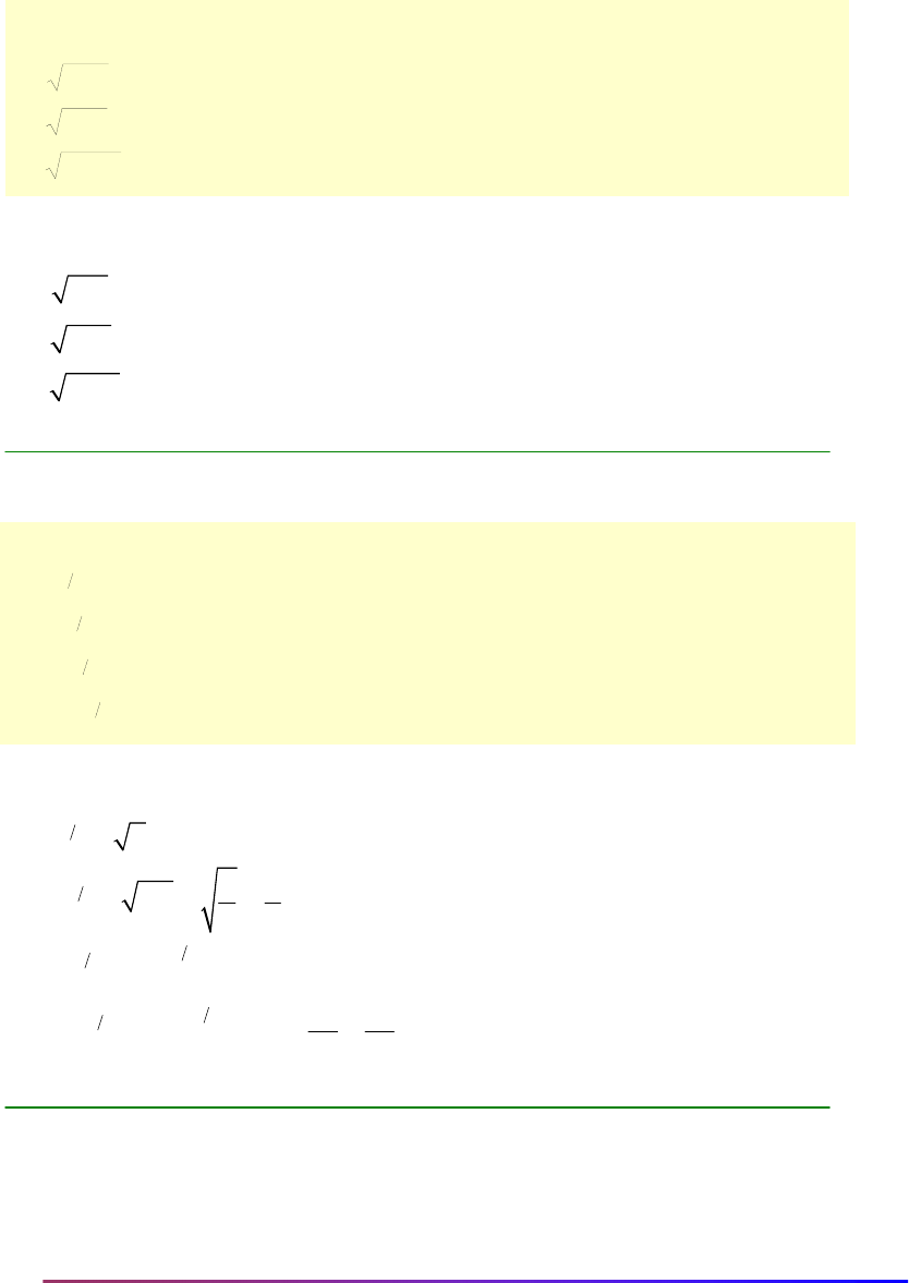 Ejercicios resueltos 1 Conocimientos básicos de Matemáticas. Bloque 1. Aritmética Básica. Tema 3. Radicación MATEMÁTICA APLICADA- Universidad Zaragoza Ana Allueva – José Luis Alejandre – José Miguel GonzálezGG33ww Bloque 1. Aritmética básica Tema 3 Radicación Ejercicios resueltos 1.3-1 Calcula: 256- 256 64- 4 4 3 ) ) ) c b a Solución ) ) ) a b c a a 33 44 44 -64 4 porque 4 64 256 4 porque 4 256 -256 no existe porque no hay ningún número tal que 256 1.3-2 Calcula: 32 32 21 21 64 64 9 9 ) ) ) ) d c b a Solución ) ) ) ) a b c d 1 2 1 2 1 2 32 3 3 2 2 32 3 3 2 2 9 9 3 1 1 9 9 9 3 64 4 4 16 1 1 64 4 4 4 16 Ejercicios resueltos 2 Conocimientos básicos de Matemáticas. Bloque 1. Aritmética Básica. Tema 3. Radicación MATEMÁTICA APLICADA- Universidad Zaragoza Ana Allueva – José Luis Alejandre – José Miguel GonzálezGG33ww 1.3-3 Calcula: 33252 xxaa Solución 333 226252 xaxxaa 1.3-4 Reducir a radicales de índice común: 6 54 53 2385 222 2 y 3 ,,) ) b a Solución 12,6)m.c.m.(3,4 el que puesto 22 22 22 8)m.c.m.(8,2 el que puesto 222 y 3 3 12 106 512 154 512 43 8 123238 585 ,,) ) b a 1.3-5 Calcula: 33 244 6 2 2 Solución 4 2 6 3 3 2 633 2 4 4 6 2 2 1 2 2 1 22 2 1.3-6 Racionaliza las siguientes fracciones: 23 23 313 5 2 7 c) b) a) Ejercicios resueltos 3 Conocimientos básicos de Matemáticas. Bloque 1. Aritmética Básica. Tema 3. Radicación MATEMÁTICA APLICADA- Universidad Zaragoza Ana Allueva – José Luis Alejandre – José Miguel GonzálezGG33ww Solución 2325 1 22323 23 23 2323 2323 23 23 4 15135 913 3135 313313 3135 313 5 2 14 22 27 2 7 2 7 2 c) b) a) 1.3-7 Efectúa la siguiente operación racionalizando si es preciso los sumandos: 32 3 32 1 31 32 Solución 336 1 336 34 323 3232 323 32 3 6 3 332 3 32 1 2 533 2 335 31 333322 3131 3132 31 32 Por tanto, sumando todos estos sumandos tenemos: 6 32621 6 31836 6 3 6 1539 336 6 3 2 533 32 3 32 1 31 32