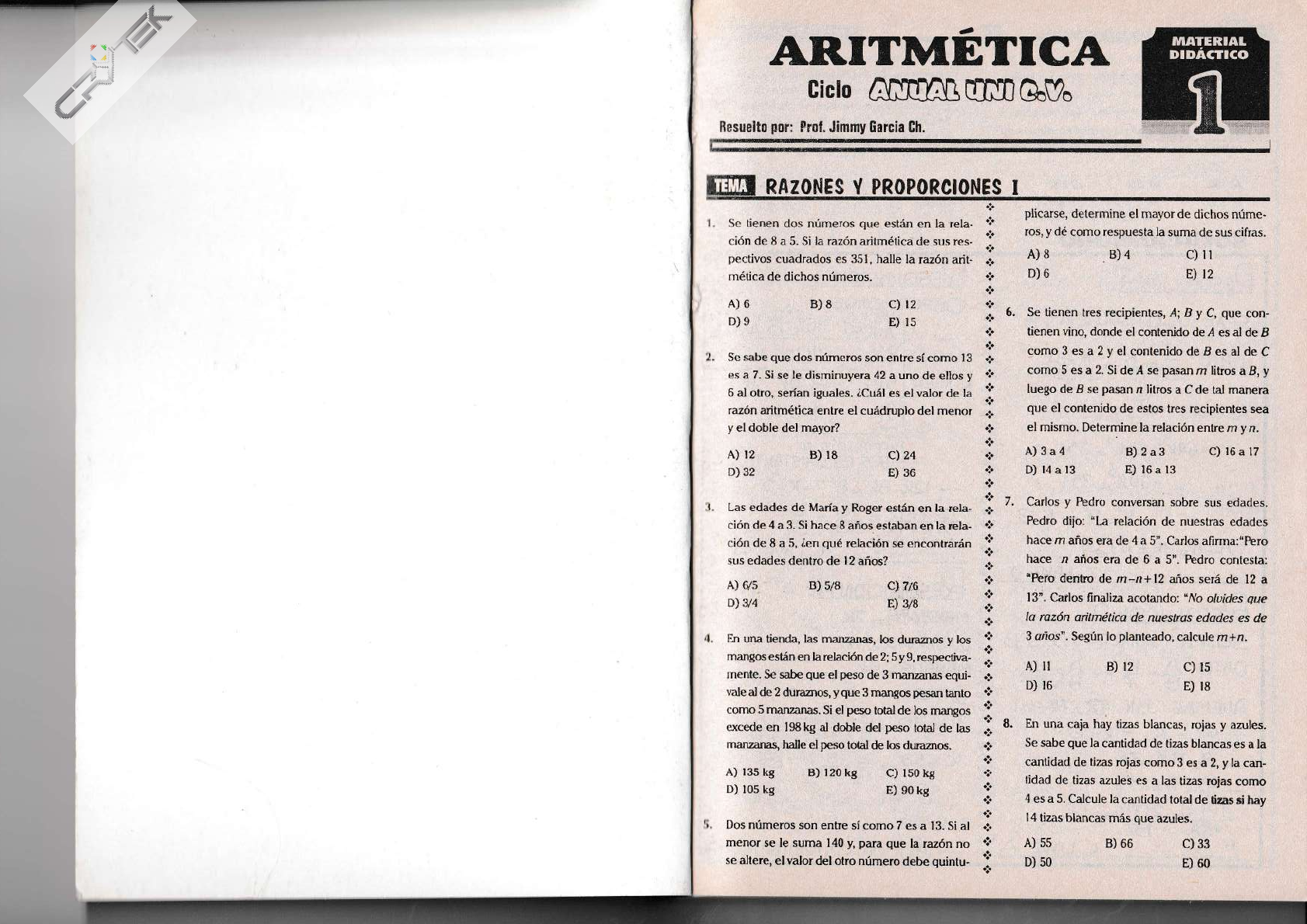 ción de I a 5" Si la razón a¡itmética de sus res-