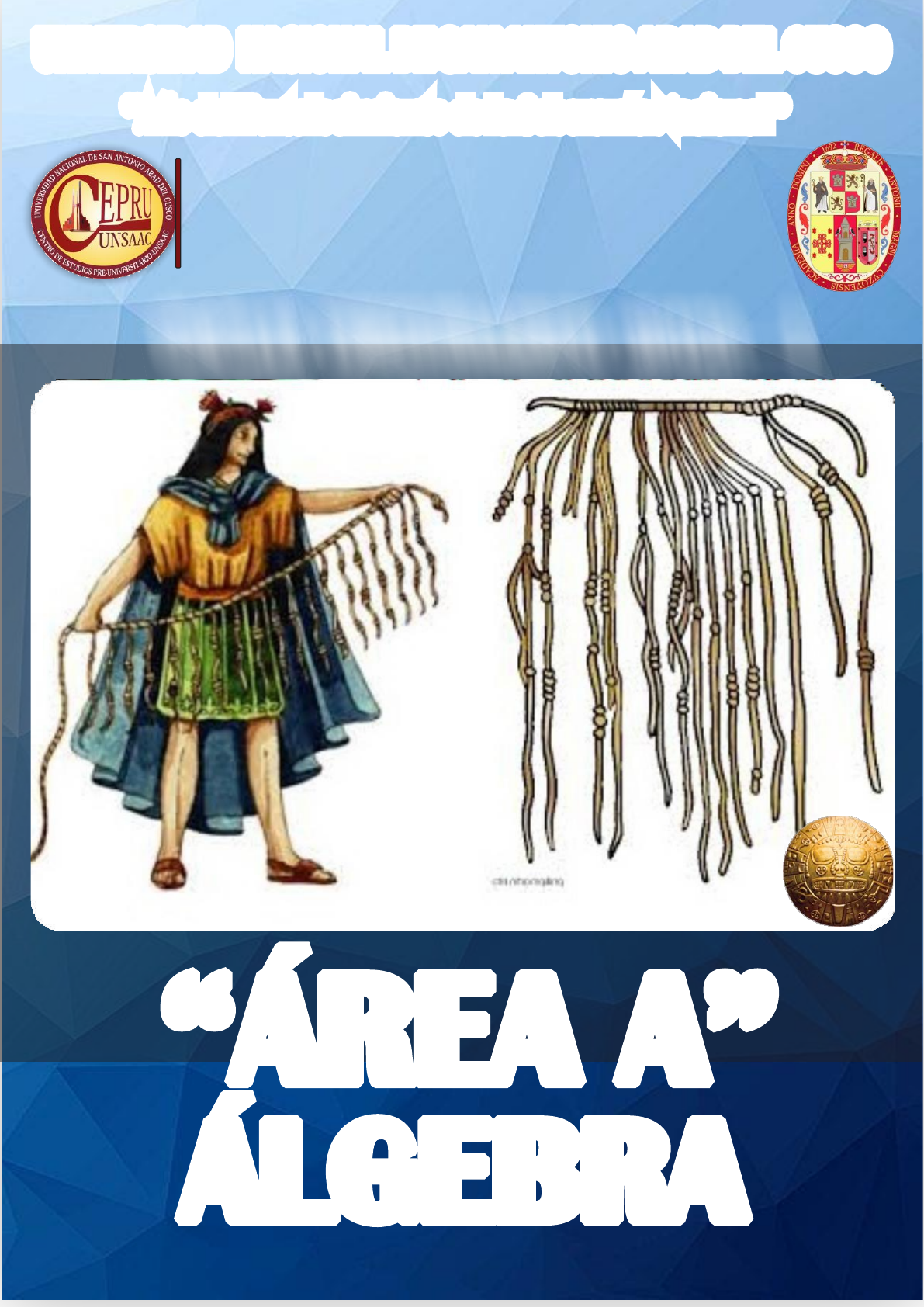 CEPRU CENTRO DE ESTUDIOS PRE UNIVERSITARIO - UNSAAC UNIVERSIDAD NACIONAL DE SAN ANTONIO ABAD DEL CUSCO “Año del Fortalecimiento de la Soberanía Nacional” CICLO ORDINARIO 2023 - I “ÁREA A” ÁLGEBRA DIRECTORIO CENTRO DE ESTUDIOS PREUNIVERSITARIO -UNSAAC DIRECTOR: Dr. FRANCISCO MEDINA MARTINEZ INTEGRANTES: Dr. SANTIAGO SONCCO TUMPI Ing. VICTOR DUEÑAS AQUISE Mgt. CAYREL GENOVEVA JIMENEZ PAREDES PERSONAL ADMINISTRATIVO: PEDRO PAUL LABRA QUISPICURO JODY MURILLO NEYRA WILBER CELSO GAMERO HANDA EDITH DIANA QUIRITA ACHAHUANCO YOHN ELMER SOTO SURCO PLANA DOCENTE 1 ( n a )n = a a ; a m−n (am )n = am.n am = an − 0 a0 = 1;a −0 POTENCIACIÓN DEFINICIÓN. La potenciación es una operación matemática, que consiste en E) Potencia de potencia multiplicar un número llamado base "a" tantas F) Potencia de un producto veces como indica otro número llamado exponente "n", al resultado de esta operación se le denomina potencia. La potencia n-ésima de "a"denotado por "an " , está dado por: G) Potencia de un cociente donde: an = a.a.a...a , a n−veces y n H) Exponente negativo de un cociente "a" "n" : es la base. : es el exponente. "an ": es la potencia. PROPIEDADES: I) Exponente fraccionario Sea m, n + , entonces se cumplen las propiedades siguientes: A) Producto de bases iguales RADICACIÓN DEFINICIÓN. Una radicación se define como: B) Cociente de bases iguales C) Exponente nulo (cero) D) Exponente negativo Donde: a : Radical n : Índice del radical ( n n 2 ) a : Radicando b : Raíz n- ésima de "a" PROPIEDADES: Considérese para las expresiones siguientes, la existencia de todos los radicales. 1. con ( n n 2 ). (a.b)n = an .bn CEPRU ORDINARIO 2022-I ÁLGEBRA −0 + am .an = am+n n a = b bn = a a n n b b = ; an a,b b 0 a −n b = a ;a,b b n −0 m a n = n am a−n = 1 ; a an −0 CEPRU ORDINARIO 2022-I ÁLGEBRA PLANA DOCENTE 2 n an n a = ;b 0, n n b a n b n ab = n a . n b; n = a + , si n par a , si n es impar m n a xn = b x = n b, x 0, n + + = mn a ; m, n y2 y 2. a) 10 b) 5 3. c) 12 d) 7 e) 2 4. 3. Si se cumple que: 3n−1 = 22n , el valor de la 5. 6. ECUACIONES EXPONENCIALES expresión a) 1 b) 5 c) 21 d) 10 e) 3 3n+1 + 22n+1 A = 3n + 22n+3 , es: DEFINICIÓN. Son aquellas ecuaciones que 4. Sean x, y y y − x 2 , luego de contienen la incógnita o variable en el exponente y en otros como exponente y base. PROPIEDADES 1) 2) 3) simplificar la expresión: xx+ y y y + yx+ y xx I = x− y x2 y yx + y2 x xy a) x y b) y x c) 1 y 1 resulta: 4) d) x e) xy EJERCICIOS 5. Si xx = 2 luego el valor de x+1−x1+ x , es: 1. Al simplificar la expresión: 3a+4 9a+2b Q = se obtiene: 27a−1 81b+1 a) 2 b) 4 c) d) 1 a) 27 b) 28 c) 23 d) 3 2 e) 8 6. Al simplificar la expresión e) 9 2. El valor de "k " en la expresión x2 − 1 x x − 1 y−x E = y x− y , resulta igual 2n 2 2 1 1 k = 5n−1 + 355n−1 ; n 1, es: y − x2 y + x a: ax = ay x = y ;a + −1 x n = y n x = y ; x , y + ;n + xx = aa x = a ; x , a + n−1 5n+1 2 m kn bk m = n bm = b n ;dondek J = xx CEPRU ORDINARIO 2022-I ÁLGEBRA PLANA DOCENTE 3 a 20a+1 4a+2 + 22a+2 y x a) x y b) y x x x + y c) y x+ y d) el valor de a) 10 b) 12 c) 4 d) 6 e) 3 E = x2 − x , es: e) ( xy ) x+ y 2 2 11. Si ab = 2 , el valor de a3b.a 2b 7. El valor de: E = n2 10 n − 6n , es: M = 2b 3b 4b , es: a) 2 b) 5 c) 10 d) 2 5 5 (25)n 2 − (15)n 2 a + a + a + 4 1+2 x1+x−x x+1 xx , es: e) 2 1 8. Si se cumple que xx = 7 , x 1 + . El valor de, 8(7x ) + (23x x) x + (x)2 P = 322 + 2x2 +16(7x ) , es: 13. Al simplificar la expresión a) 2 b) 7 c) 4 d) 1 2 e) 1 4 9. Al simplificar la expresión: E = (−x2 ) 3 .(−x−3 ) 2 .(x3 ) 2 .(x−3 ) 2 .(−x(−3) 2 ) , se obtiene: a) x9 b) −x9 c) x6 d) −x6 e) −x−6 E = a) 1 b) 4 c) 2 d) 8 e) 16 10. Si se cumple que: , se obtiene: 14. Al simplificar la expresion: 5a−1 + 3a−1 D = + a−1 51−a + 31−a obtiene: a) 5 b) 15 c) 20 d) 10 e) 25 , se n 8n + n 16n 2 + 8n 2 2n +1 4n 2 + 2n 2 (22x + 22x + 22x + ... + 22x )− (4x + 4x + 4x + ... + 4x ) = 12 1778 sumandos 1776 sumandos a) 32 b) 5 c) 12 d) 128 e) 64 12. Si xx = 2 , el valor de D = a) 16 b) 2 c) 8 d) 4 e) 32 CEPRU ORDINARIO 2022-I ÁLGEBRA PLANA DOCENTE 4 2. 2. 2 2. 2. 2 2 2 2 A = .b.b b , 15. Al simplificar la expresión: b) 1 9x 2 +2 + 32 x 2 +2 D = x 2 90x 2 +1 , se obtiene: c) b−1 d) b2 e) b−2 a) 10 b) 100 1 20. Al resolver la ecuación, 7 x 2 −6 + 7 x 2 −7 + 7 x 2 −8 + 7 x 2 −9 = 400 , el valor c) d) e) 16. Si 10−1 10−2 xx = 2 , entonces, el valor de: de " x" es: a) 3 xx xx+1+1 +1 x a) 2 b) 8 , es: b) −3 c) 3 d) 2 e) 6 21. Al resolver la ecuación, c) 4 d) 16 8 x−1 27 9 x 4 81 4x 4 16 = 9 , e) x 17. Al reducir V = , se obtiene: a) 2 2 b) c) 4 d) 2 e) 8 18. Si "a" y "b" son números positivos; al reducir el valor de " x" es: a) 1 3 b) 2 3 c) − 1 3 d) − 2 3 e) 6 abab .aab−1 baba .bba−1 −(ab) ab 22. Al resolver la ecuación M = ab .ba .(ab) resulta − −x−1 igual a: a) ab b) ab c) ba 9−8 9 a) 3 b) 2 c) 4 = 1 , el valor de "2x" es: 3 d) ab−1 e) ba−1 d) −4 e) −3 19. Para "b" diferente de cero, el valor de 36x−1 1 ((b−3 )2 ) −1 −2 −1 −4 23. Al resolver la ecuación = , el valor 144x−1 64 2 ( 3 ) b−3 2 (b−3 ) 2 .b(−3) 2 es: a) b de " x", es: a) 8 b) 2 c) 4 d) −4 2 CEPRU ORDINARIO 2022-I ÁLGEBRA PLANA DOCENTE 5 1 2 x x 4 e) −8 28. Al resolver la ecuación x−x −4 = 4 , el valor de 24. Al resolver la ecuación: " x" es: 1 + 2x es: 1 2x+1 + 1 2x+2 + 1 2x+3 = 1, el valor de " x" a) 1 4 a) 3 b) 6 b) 1 8 c) d) e) 25. Si −3 −6 −2 xx = 2 , entonces el valor de la 1+x c) d) e) 1 expresión a) 2 b) 4 c) 16 E = xx 1+2 x , es: 29. Si 2 x −2 2− x 1 = 2 , el valor de: E = , es d) 212 e) 216 26. Al resolver la ecuación 27x + 33x+1 =12 , el valor de " x", es a) 1 6 b) 2 3 a) 8 b) 1 4 c) 1 2 d) 1 16 e) 1 2 c) − 1 3 d) 1 3 e) 7 3 1 4x 2 30. El conjunto solución de la ecuación: x x−x 2 +13 = x 2 −12 , es: a) 4 b) −3 c) −3; 4 27. Al resolver la ecuación, 1 = el valor de " x" es: a) 1 2 b) 1 4 1 d
