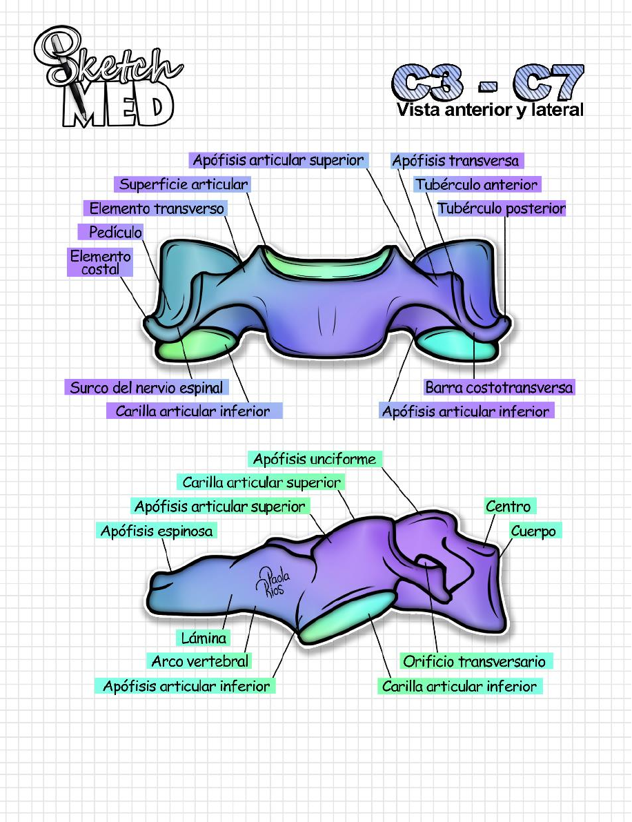 Vista anterior - superior y lateral C3 Y C7