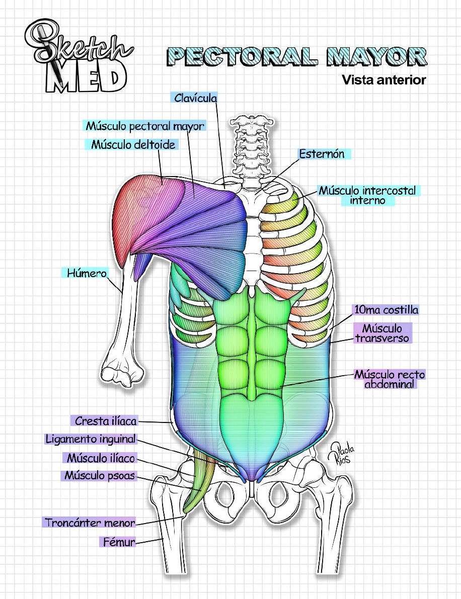 ¿Cuál de las siguientes estructuras NO es una inserción medial del pectoral mayor? A) Clavícula B) Esternón C) Costillas y cartílagos costales (1 a...