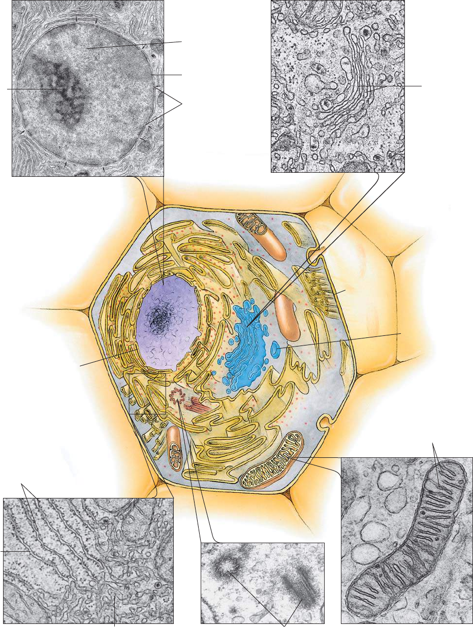 Organización de la célula 85 Ribosomas RE rugoso RE liso Retículos endoplásmicos (RE) rugoso y liso Mitocondria Nucléolo Núcleo Cromatina Poros nucleares Envoltura nuclear Sacos membranosos de Golgi Membrana plasmática Lisosoma Centriolos Envoltura nuclear Complejo de Golgi Crestas B. F. K in g, B io lo gi ca l P ho to S er vi ce Bl oo m a nd F aw ce tt T ex tb oo k of H is to lo gy Bl oo m a nd F aw ce tt Te xt bo ok o f H is to lo gy D r. D on al d Fa w ce tt /V is ua ls U nl im ite d, In c. Bl oo m a nd F aw ce tt T ex tb oo k of H is to lo gy FIGURA 4-10 Animada Diagrama compuesto de una célula animal Esta representación general de la célula animal se hizo con base en las imágenes microscópicas que la rodean, lo que ocasiona que se vea ligeramente comprimida. Las MET muestran la estructura de varios orgánulos. Depen- diendo del tipo de célula animal, algunos de ellos pueden ser más o menos prominentes. 04_Cap_04_SOLOMON.indd 8504_Cap_04_SOLOMON.indd 85 11/12/12 16:2511/12/12 16:25