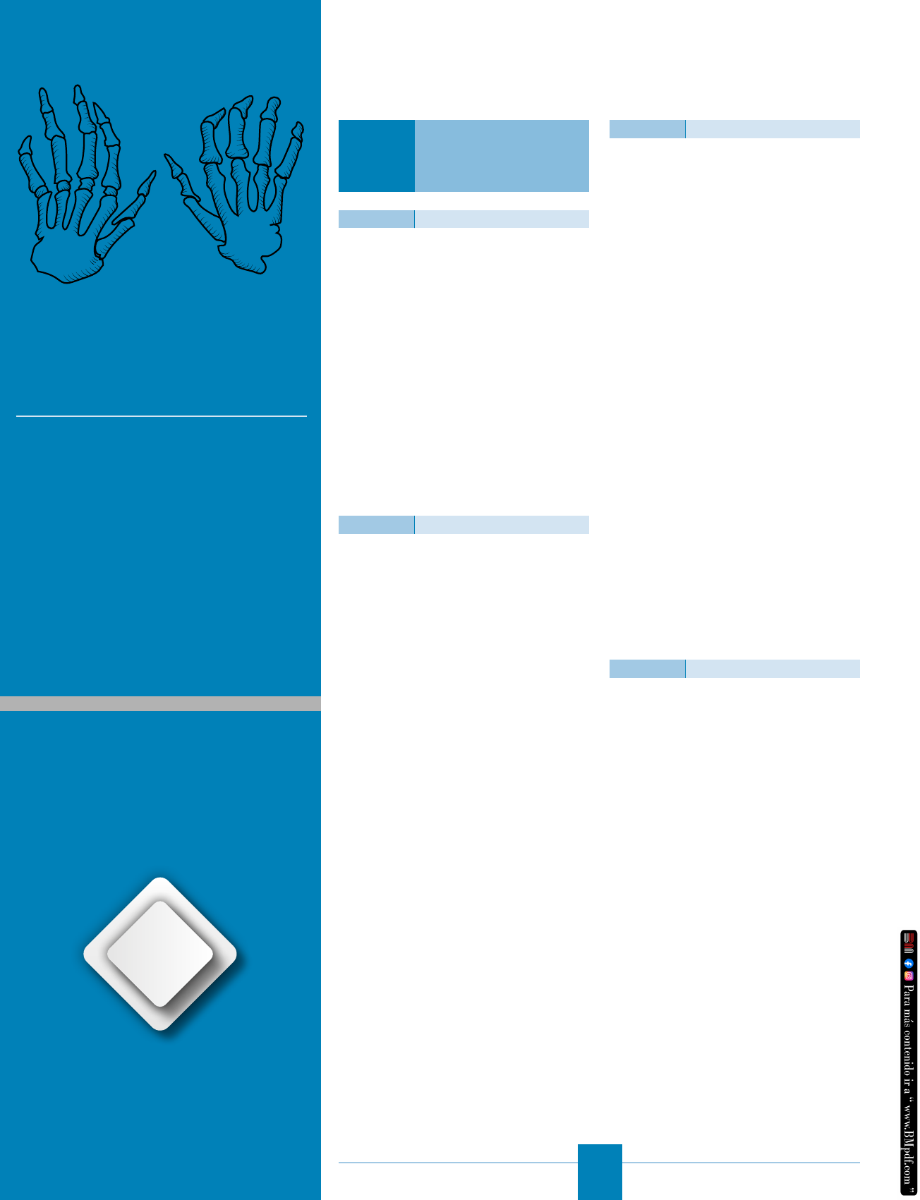 DESGLOSES MIR Reumatología RM 305 T01 Aspectos generales de las enfermedades reumáticas P040 MIR 2018-2019 ¿Por qué razón el ácido acetilsalicílico a dosis bajas (< 325 mg) tiene MAYOR efecto antiagre- gante plaquetario que la mayoría de los otros AINEs? 1) Porque es inhibidor selectivo de la COX-1. 2) Porque es un inhibidor irreversible. 3) Porque da lugar a un metabolito, el ácido sali- cílico, que tiene una semivida en plasma muy prolongada. 4) Porque inhibe la tromboxano sintetasa. Respuesta correcta: 2 P195 MIR 2018-2019 Hombre de 50 años con antecedente de in- greso reciente por cuadro de hemorragia digestiva aguda, que acude a Urgencias por cuadro agudo de dolor de rodilla que comienza esa noche, con enrojecimiento e impotencia funcional, dolor al roce y febrí- cula. En la exploración tiene también signos inflamatorios en primera articulación meta- tarsofalángica. Se realiza analítica general con hemograma normal, creatinina e iones normales y PCR 2 mg/dL. El líquido sinovial es amarillento no filante y con 5.000 leuco- citos/mm³ con 85% de polimorfonucleares y glucosa de 101 mg/dL. ¿Qué le parece lo MÁS correcto a realizar? 1) Artrocentesis para hacer una tinción de Gram y cultivo del líquido articular y exami- nar el líquido al microscopio de luz polari- zada. 2) Solicitar determinación de ácido úrico e iniciar tratamiento empírico con colchicina y alopu- rinol. 3) Solicitar una radiografía simple y una gamma- grafía ósea con tecnecio 99m. 4) Solicitar 2 hemocultivos e iniciar tratamien- to antimicrobiano con ceftazidima intrave- nosa. Respuesta correcta: 1 P191 MIR 2016-2017 Paciente de 60 años diabético. Ingreso hospita- lario hace 2 semanas por descompensación hi- perosmolar. Consulta al Servicio de Urgencias por dolor y tumefacción en rodilla derecha. Ex- ploración física: Tª 37,2 ºC, frecuencia cardíaca 100 latidos por minuto, frecuencia respiratoria 18 por minuto, signos de artritis en las articu- laciones referidas. Analítica: hemograma con 18000 leucocitos/mm3, ácido úrico 8,11 mg/dl, creatinina 1,4 mg/dL. Líquido sinovial: 20.000 leucocitos/mm3 con 85% de polinucleares, no se observan microcristales y la tinción de gram no muestra gérmenes. ¿Cuál sería la actitud más correcta? 1) Practicar infiltración intraarticular con triamci- nolona de la articulación afecta. 2) Iniciar tratamiento ambulatorio con amoxicili- na más ácido clavulánico y valorar la respuesta en una semana. 3) Indicar ingreso y tratamiento antibiótico pa- renteral inmediato hasta resultado del cultivo. 4) Tratamiento con corticoides a dosis bajas y alo- purinol. Respuesta correcta: 3 P136 MIR 2015-2016 Un hombre de 41 años acude a Urgencias por cuadro de tres días de evolución de tume- facción y dolor en la rodilla derecha, con im- potencia funcional y febrícula. Dos semanas antes había tenido un cuadro de diarrea au- tolimitada. En la exploración existe derrame articular, por lo que se procede a realizar una artrocentesis y se obtienen 50 cc de líquido de color turbio, con viscosidad disminuida y los siguientes parámetros analíticos: leucocitos 40.000/microL (85% de neutrófilos), glucosa 40 mg/dL, ausencia de cristales, tinción de Gram: no se observan microorganismos. ¿Cuál de las siguientes afirmaciones sobre este pa- ciente es INCORRECTA? 1) Se debe iniciar tratamiento con cloxacilina y ceftriaxona, en espera del resultado del cultivo del líquido. 2) Es aconsejable realizar artrocentesis diarias para aliviar los síntomas y evitar la destrucción articular. 3) Si el cultivo es negativo, es probable que se tra- te de una artritis reactiva. https://www.bmpdf.com DESGLOSES MIR REUMATOLOGÍA 306 4) La negatividad de la tinción de Gram descarta que se trate de una artritis séptica. Respuesta correcta: 4 P137 MIR 2015-2016 Señale la respuesta correcta respecto a los siguientes fármacos biológicos utilizados en el tratamiento de las enfermedades reumá- ticas: 1) Etanercept es un anticuerpo monoclonal qui- mérico contra el TNF. 2) Abatacept impide la maduración de linfocitos B a la célula plasmática. 3) Anakinra es un antagonista recombinante de los receptores de IL-6. 4) Adalimumab es un anticuerpo contra el TNF completamente humano. Respuesta correcta: 4 P016 MIR 2014-2015 (Encadenada a P015, véase T06 de esta misma asignatura). Pregunta vinculada a la imagen n.º 8. La realización de una ecografía en este paciente: 1) Sólo permitiría valorar la afectación tendinosa. 2) No tiene ninguna utilidad. 3) Detecta la sinovitis pero no las erosiones. 4) No detecta ni la sinovitis ni las erosiones. 5) Detecta tanto la sinovitis como las erosiones. Respuesta correcta: 5 P204 MIR 2010-2011 Señalar la respuesta FALSA sobre las caracterís- ticas de una articulación sinovial: 1) El cartílago articular hialino está formado fun- damentalmente por colágeno. 2) Los proteoglicanos de matriz extracelular del cartílago hialino son macromoléculas forma- das por proteínas y glicosaminoglicanos. 3) El condrocito vive en un medio acidótico e hipóxico y emplea la glucólisis anaerobia para producir energía. 4) Los sinoviocitos tipo A son similares a macrófa- gos, son fagocíticos. 5) Una entesis es la región donde un tendón, li- gamento o cápsula articular se une directa o indirectamente al hueso. Respuesta correcta: 1 T02 Enfermedades metabólicas óseas P033 MIR 2018-2019 Pregunta vinculada a la imagen n.º 33. A una mujer postmenopáusica en tratamien- to con suplementos de calcio y vitamina D se le realiza la siguiente prueba diagnóstica (imagen vinculada). Señale la actitud MÁS co- rrecta: 1) La prueba es normal, suspender calcio y vita- mina D. 2) Mantener tratamiento con calcio y vitamina D. 3) Recomendar añadir fármacos antirresortivos. 4) Iniciar tratamiento con teriparatide. Respuesta correcta: ANU P123 MIR 2017-2018 Mujer de 65 años que acude a su odontólogo por dolor en cuerpo mandibular derecho y le- sión ulc