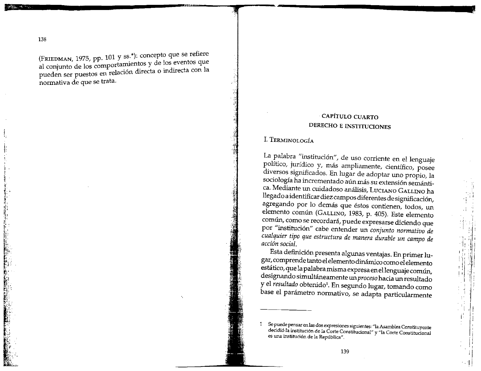 138 (FRIEDMAN, 1975, pp. 101 y ss.*): concepto que se refiere al conjunto de los comportamientos y de los eventos que pueden ser puestos en relación directa o indirecta con la normativa de que se trata. CAPÍTULO CUARTO DERECHO E INSTITUCIONES I. TERMINOLOGÍA La palabra "institución", de uso corriente en el lenguaje político, jurídico y, más ampliamente, cientifico, posee diversos significados. En lugar de adoptar uno propio, la sociología ha incrementado aún más su extensión semánti- ca. Mediante un cuidadoso análisis, LUCIANO GALLINO ha llegado a identificar diez campos diferentes de significación, agregando por lo demás que éstos contienen, todos, un elemento común (GALLixo, 1983, p. 405). Este elemento común, como se recordará, puede expresarse diciendo que por "institución" cabe entender un conjunto normativo de cualquier tipo que estructura de manera durable un campo de acción social. Esta definición presenta algunas ventajas. En primer lu- gar, comprende tanto el elemento dinámico como el elemento estático, que la palabra misma expresa en el lenguaje común, designando simultáneamente un proceso hacia un resultado y el resultado obtenido'. En segundo lugar, tomando como base el parámetro normativo, se adapta particularmente 1 Se puede pensar en las dos expresiones siguientes: la Asamblea Constituyente decidió la institución de la Corte Constitucional" y "la Corte Constitucional es una institución de la República". 140 al análisis sociológico-jurídico, centrado en el relieve que en algunas instituciones adquiere la disciplina jurídica. En tercer lugar, permite comprender en una sola categoría una amplia serie de sistemas consolidados de acción jurídica que, si bien diferentes entre sí, presentan importantes rasgos comunes y por ello se prestan a consideraciones semejantes, de naturaleza teórico-metodológica: un parlamento o una jurisdicción, una empresa o una familia. Debe quedar claro en cualquier caso que también esta elección definitoria, al igual que otras anteriores, tiene carácter convencional o, para decirlo en términos corrientes, artificial. En efecto, no es la única posible y precisamente por ello ha de ser entendida de manera elástica. En esta perspectiva examinaremos algunas importantes instituciones, con la intención de describir en clave sincrónica su estructura jurídica esencial, y en clave diacrónica su mo- dificación en el tiempo. En efecto, es sobre las instituciones concretas, más que sobre el sistema jurídico en general, que se puede medir la relación entre derecho y cambio social, tema clásico de la sociología del derecho. EL GOBIERNO Usamos la expresión "gobierno" no ya en sentido estricto, para designar el órgano constitucional que en los Estados modernos ejerce el poder ejecutivo, sino en sentido amplio, tomado de la ciencia política, para designar el conjunto de actividades inherentes a la dirección política de un país y correspondientes, además de al órgano ejecutivo, también, por ejemplo, al órgano legislativo. Aquí mante- nemos diferenciada la actividad jurisdiccional, no porque no desarrolle funciones de importancia política -muy por el contrario, como veremos-, sino por su característica intrínseca de presentarse prácticamente en todas partes de manera relativamente separada del resto de la organiza- ción constitucional, en nombre de un principio general de 141 independencia que, al menos de palabra, es reconocido al juez en todo sistema jurídico. La acción de gobierno concierne al ejercicio de una suma de poderes y consta de un conjunto de decisiones, en sentido positivo o negativo, ya que también la no decisión comporta siempre una elección, a menudo cargada de consecuencias. Esta se desarrolla en diferentes planos -económico, social, cultural, "político" en sentido estricto, es decir relativo a la lucha entre partidos y facciones- de manera formado infor- mal. Tarea de las ciencias sociales es la de indagar sobre la conexión entre estos planos y modalidades de acción. La sociología del derecho, en particular, estudia la acción formal de gobierno, es decir las decisiones adoptadas por las élites políticas de un país bajo la forma de actos jurídicos -leyes, decretos, imposición, concesiones, etc.— o para-jurídicos, como los proyectos de ley, los debates parlamentarios, las declaraciones de intenciones, las circulares: todo aquello que prepara, acompaña, sigue o justifica la acción jurídica en sentido estricto. Todo este material es investigado por el sociólogo del derecho como variable, en el cuadro de procesos de acción considerados en su conjunto, en los que formalidad e informalidad se alternan o se entrelazan y el derecho puede desempeñar funciones ya sea sustanciales o de pura fachada, gracias a su poder de legitimación. En toda sociedad, se puede decir, toda acción, por ende también la acción de gobierno, tiene mayor probabilidad de ser aceptada socialmente cuando se presenta en formas jurídicas y aparentemente respetuosos del derecho vigente. En este sentido la clase política de un país ocupa la posi- ción más estratégica. En efecto, ella posee un control directo sobre el derecho puesto que tiene el poder de reconocerlo y aplicarlo, pero en especial de cambiarlo. También en Inglaterra, patria de un derecho consuetudinario históri- camente radicado, consignado y legible en los precedentes judiciales, el parlamento soberano podría abrogar la cornmon lazo e imponer un derecho enteramente statu te, es decir 143 142 legislativo. Este poder es aún más fuerte en los países de civil law, que le asignan a la ley de origen político, como es sabido, la primacía entre las fuentes del derecho. Existen, es verdad, límites a estos poderes, a menudo consagrados en forma de actos jurídicos "superiores": la Magna Charta, el habeas corpus, las constituciones, las cartas de derechos humanos. Pero estos limites se encuentran siempre sujetos a variaci