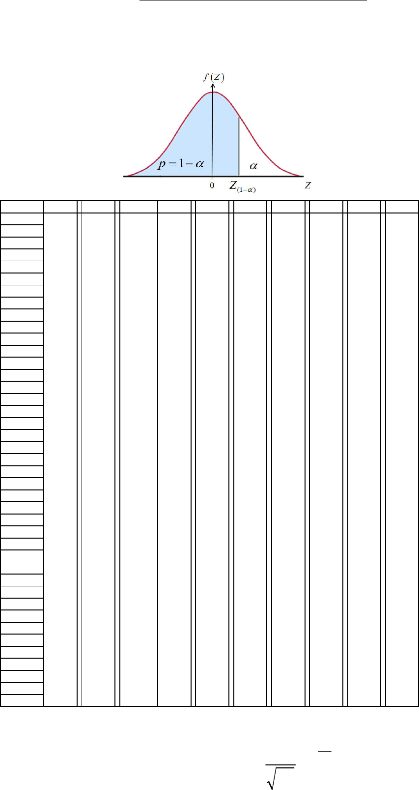 Por: ,00 ,01 ,02 ,03 ,04 ,05 ,06 ,07 ,08 ,09 0,0000 0,0000 0,0000 0,0000 0,0000 0,0000 0,0000 0,0000 0,0000 0,0000 0,0000 0,0000 0,0000 0,0000 0,0000 0,0000 0,0000 0,0000 0,0000 0,0000 0,0001 0,0001 0,0001 0,0001 0,0001 0,0001 0,0001 0,0001 0,0001 0,0001 0,0001 0,0001 0,0001 0,0001 0,0001 0,0001 0,0001 0,0001 0,0001 0,0001 0,0002 0,0002 0,0001 0,0001 0,0001 0,0001 0,0001 0,0001 0,0001 0,0001 0,0002 0,0002 0,0002 0,0002 0,0002 0,0002 0,0002 0,0002 0,0002 0,0002 0,0003 0,0003 0,0003 0,0003 0,0003 0,0003 0,0003 0,0003 0,0003 0,0002 0,0005 0,0005 0,0005 0,0004 0,0004 0,0004 0,0004 0,0004 0,0004 0,0003 0,0007 0,0007 0,0006 0,0006 0,0006 0,0006 0,0006 0,0005 0,0005 0,0005 0,0010 0,0009 0,0009 0,0009 0,0008 0,0008 0,0008 0,0008 0,0007 0,0007 0,0013 0,0013 0,0013 0,0012 0,0012 0,0011 0,0011 0,0011 0,0010 0,0010 0,0019 0,0018 0,0018 0,0017 0,0016 0,0016 0,0015 0,0015 0,0014 0,0014 0,0026 0,0025 0,0024 0,0023 0,0023 0,0022 0,0021 0,0021 0,0020 0,0019 0,0035 0,0034 0,0033 0,0032 0,0031 0,0030 0,0029 0,0028 0,0027 0,0026 0,0047 0,0045 0,0044 0,0043 0,0041 0,0040 0,0039 0,0038 0,0037 0,0036 0,0062 0,0060 0,0059 0,0057 0,0055 0,0054 0,0052 0,0051 0,0049 0,0048 0,0082 0,0080 0,0078 0,0075 0,0073 0,0071 0,0069 0,0068 0,0066 0,0064 0,0107 0,0104 0,0102 0,0099 0,0096 0,0094 0,0091 0,0089 0,0087 0,0084 0,0139 0,0136 0,0132 0,0129 0,0125 0,0122 0,0119 0,0116 0,0113 0,0110 0,0179 0,0174 0,0170 0,0166 0,0162 0,0158 0,0154 0,0150 0,0146 0,0143 0,0228 0,0222 0,0217 0,0212 0,0207 0,0202 0,0197 0,0192 0,0188 0,0183 0,0287 0,0281 0,0274 0,0268 0,0262 0,0256 0,0250 0,0244 0,0239 0,0233 0,0359 0,0351 0,0344 0,0336 0,0329 0,0322 0,0314 0,0307 0,0301 0,0294 0,0446 0,0436 0,0427 0,0418 0,0409 0,0401 0,0392 0,0384 0,0375 0,0367 0,0548 0,0537 0,0526 0,0516 0,0505 0,0495 0,0485 0,0475 0,0465 0,0455 0,0668 0,0655 0,0643 0,0630 0,0618 0,0606 0,0594 0,0582 0,0571 0,0559 0,0808 0,0793 0,0778 0,0764 0,0749 0,0735 0,0721 0,0708 0,0694 0,0681 0,0968 0,0951 0,0934 0,0918 0,0901 0,0885 0,0869 0,0853 0,0838 0,0823 0,1151 0,1131 0,1112 0,1093 0,1075 0,1056 0,1038 0,1020 0,1003 0,0985 0,1357 0,1335 0,1314 0,1292 0,1271 0,1251 0,1230 0,1210 0,1190 0,1170 0,1587 0,1562 0,1539 0,1515 0,1492 0,1469 0,1446 0,1423 0,1401 0,1379 0,1841 0,1814 0,1788 0,1762 0,1736 0,1711 0,1685 0,1660 0,1635 0,1611 0,2119 0,2090 0,2061 0,2033 0,2005 0,1977 0,1949 0,1922 0,1894 0,1867 0,2420 0,2389 0,2358 0,2327 0,2296 0,2266 0,2236 0,2206 0,2177 0,2148 0,2743 0,2709 0,2676 0,2643 0,2611 0,2578 0,2546 0,2514 0,2483 0,2451 0,3085 0,3050 0,3015 0,2981 0,2946 0,2912 0,2877 0,2843 0,2810 0,2776 0,3446 0,3409 0,3372 0,3336 0,3300 0,3264 0,3228 0,3192 0,3156 0,3121 0,3821 0,3783 0,3745 0,3707 0,3669 0,3632 0,3594 0,3557 0,3520 0,3483 0,4207 0,4168 0,4129 0,4090 0,4052 0,4013 0,3974 0,3936 0,3897 0,3859 0,4602 0,4562 0,4522 0,4483 0,4443 0,4404 0,4364 0,4325 0,4286 0,4247 0,5000 0,4960 0,4920 0,4880 0,4840 0,4801 0,4761 0,4721 0,4681 0,4641-0,0 VALORES PERCENTILES, Z[p], DE LA DISTRIBUCIÓN NORMAL ESTANDAR, Z, CON MEDIA 0 Y DESVIACIÓN ESTÁNDAR 1. Jose Rojas Fuentes Página Nº 1 -0,6 -0,5 -0,4 -0,3 -0,2 -0,1 -1,2 -1,1 -1,0 -0,9 -0,8 -0,7 -1,8 -1,7 -1,6 -1,5 -1,4 -1,3 -2,4 -2,3 -2,2 -2,1 -2,0 -1,9 -3,0 -2,9 -2,8 -2,7 -2,6 -2,5 -3,6 -3,5 -3,4 -3,3 -3,2 -3,1 TABLAS DE DISTRIBUCIONES DE PROBABILIDAD Z -4,0 -3,9 -3,8 -3,7 ( ) 2 2 1 ( : 0; 1) 2 z t P Z z F Z e dtµ σ π − −∞ ≤ = = = = ∫ ( ) 0 0lim 0 Z P Z Z →−∞ ≤ = ,00 ,01 ,02 ,03 ,04 ,05 ,06 ,07 ,08 ,09 0,5000 0,5040 0,5080 0,5120 0,5160 0,5199 0,5239 0,5279 0,5319 0,5359 0,5398 0,5438 0,5478 0,5517 0,5557 0,5596 0,5636 0,5675 0,5714 0,5753 0,5793 0,5832 0,5871 0,5910 0,5948 0,5987 0,6026 0,6064 0,6103 0,6141 0,6179 0,6217 0,6255 0,6293 0,6331 0,6368 0,6406 0,6443 0,6480 0,6517 0,6554 0,6591 0,6628 0,6664 0,6700 0,6736 0,6772 0,6808 0,6844 0,6879 0,6915 0,6950 0,6985 0,7019 0,7054 0,7088 0,7123 0,7157 0,7190 0,7224 0,7257 0,7291 0,7324 0,7357 0,7389 0,7422 0,7454 0,7486 0,7517 0,7549 0,7580 0,7611 0,7642 0,7673 0,7704 0,7734 0,7764 0,7794 0,7823 0,7852 0,7881 0,7910 0,7939 0,7967 0,7995 0,8023 0,8051 0,8078 0,8106 0,8133 0,8159 0,8186 0,8212 0,8238 0,8264 0,8289 0,8315 0,8340 0,8365 0,8389 0,8413 0,8438 0,8461 0,8485 0,8508 0,8531 0,8554 0,8577 0,8599 0,8621 0,8643 0,8665 0,8686 0,8708 0,8729 0,8749 0,8770 0,8790 0,8810 0,8830 0,8849 0,8869 0,8888 0,8907 0,8925 0,8944 0,8962 0,8980 0,8997 0,9015 0,9032 0,9049 0,9066 0,9082 0,9099 0,9115 0,9131 0,9147 0,9162 0,9177 0,9192 0,9207 0,9222 0,9236 0,9251 0,9265 0,9279 0,9292 0,9306 0,9319 0,9332 0,9345 0,9357 0,9370 0,9382 0,9394 0,9406 0,9418 0,9429 0,9441 0,9452 0,9463 0,9474 0,9484 0,9495 0,9505 0,9515 0,9525 0,9535 0,9545 0,9554 0,9564 0,9573 0,9582 0,9591 0,9599 0,9608 0,9616 0,9625 0,9633 0,9641 0,9649 0,9656 0,9664 0,9671 0,9678 0,9686 0,9693 0,9699 0,9706 0,9713 0,9719 0,9726 0,9732 0,9738 0,9744 0,9750 0,9756 0,9761 0,9767 0,9772 0,9778 0,9783 0,9788 0,9793 0,9798 0,9803 0,9808 0,9812 0,9817 0,9821 0,9826 0,9830 0,9834 0,9838 0,9842 0,9846 0,9850 0,9854 0,9857 0,9861 0,9864 0,9868 0,9871 0,9875 0,9878 0,9881 0,9884 0,9887 0,9890 0,9893 0,9896 0,9898 0,9901 0,9904 0,9906 0,9909 0,9911 0,9913 0,9916 0,9918 0,9920 0,9922 0,9925 0,9927 0,9929 0,9931 0,9932 0,9934 0,9936 0,9938 0,9940 0,9941 0,9943 0,9945 0,9946 0,9948 0,9949 0,9951 0,9952 0,9953 0,9955 0,9956 0,9957 0,9959 0,9960 0,9961 0,9962 0,9963 0,9964 0,9965 0,9966 0,9967 0,9968 0,9969 0,9970 0,9971 0,9972 0,9973 0,9974 0,9974 0,9975 0,9976 0,9977 0,9977 0,9978 0,9979 0,9979 0,9980 0,9981 0,9981 0,9982 0,9982 0,9983 0,9984 0,9984 0,9985 0,9985 0,9986 0,9986 0,9987 0,9987 0,9987 0,9988 0,9988 0,9989 0,9989 0,9989 0,9990 0,9990 0,9990 0,9991 0,9991 0,9991 0,9992 0,9992 0,9992 0,9992 0,9993 0,9993 0,9993 0,9993 0,9994 0,9994 0,9994 0,9994 0,9994 0,9995 0,9995 0,9995 0,9995 0,9995 0,9995 0,9996 0,9996 0,9996 0,9996 0,9996 0,9996 0,9997 0,9997 0,9997 0,9997 0,9997 0,9997 0,9997 0,9997 0,9997 0,9997 0,9998 0,9998 0,9998 0,9998 0,9998 0,9998 0,9998 0,9998 0,9998 0,9998 0,9998 0,9998 0,9998 0,9999 0,999