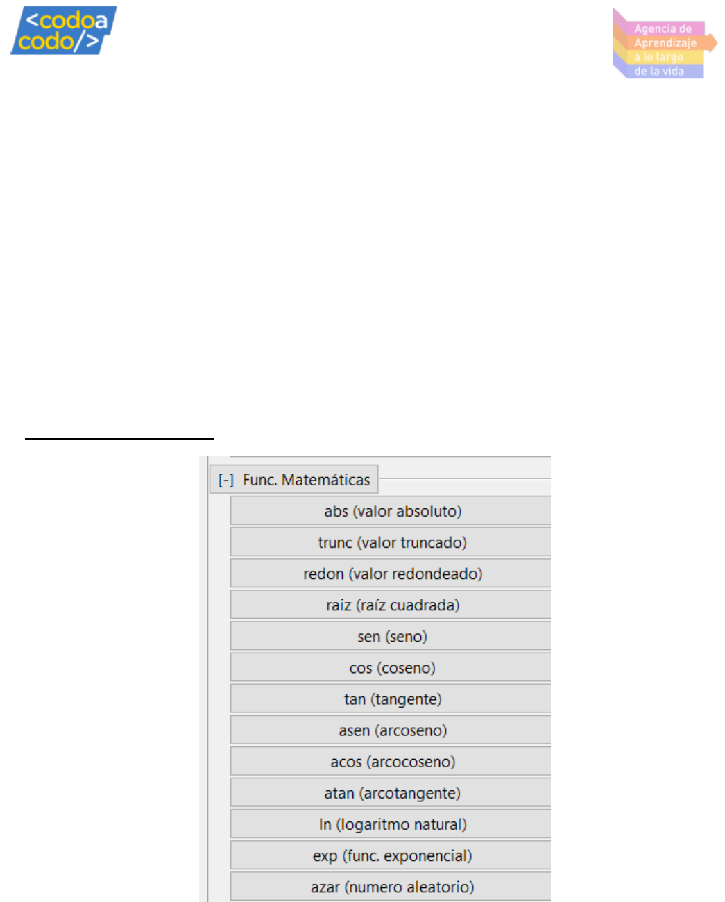 Funciones en PSeInt Las funciones que trae PSeInt. No es el momento de explicar funciones en programación, más adelante se verá en más de una clase, pero si es bueno ir conociendo las que tiene definidas nuestro PSeInt. Para usar las funciones se debe colocar su nombre y entre paréntesis el o los argumentos que requiera. Esta función devolverá un valor y nos facilitará realizar ciertos cálculos o usar código ya escrito. Sintaxis: nombreFuncion (arg1, arg2, …, argN) Donde nombreFuncion es el nombre de la función y arg1, … son los argumentos que requiere la función para devolvernos un resultado. Funciones matemáticas Veamos Algunos ejemplos Funciones para cadenas de texto Veamos Algunos ejemplos