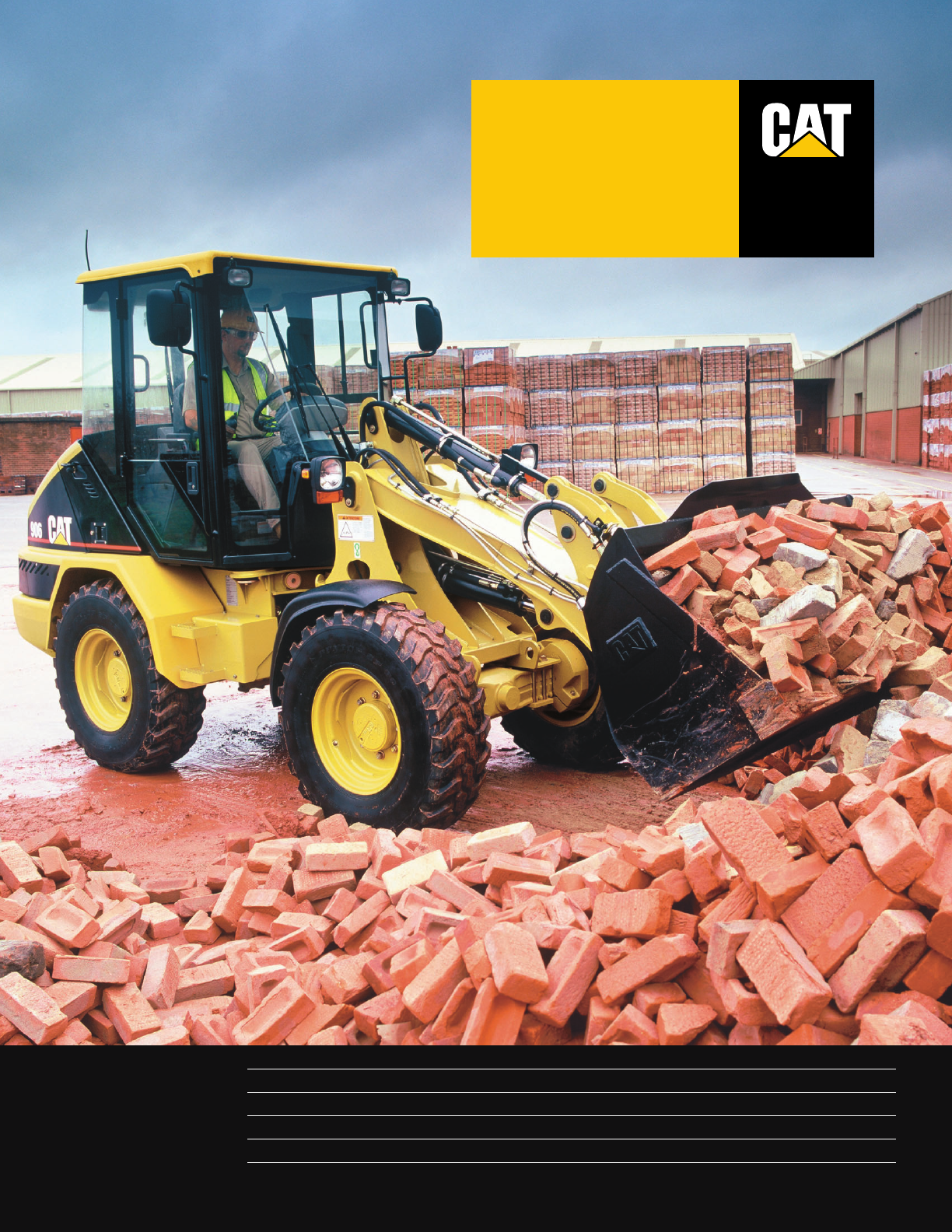 902 906 908 Motor Cat® 3024 Cat® 3044C Cat® 3044C Potencia neta 34 kW/46 hp 53 kW/71 hp 60 kW/80 hp Peso en orden de trabajo 4.280 kg/9.416 lb 4.960 kg/10.912 lb 6.040 kg/13.288 lb Capacidad nominal del cucharón 0,6 m3/0,8 yd3 0,8 m3/1,0 yd3 1,0 m3/1,3 yd3 ®®®902/906/908 Cargadores de ruedas compactos 2 Cargadores de ruedas compactos 902/906/908 Diseñados y fabricados por Caterpillar® para obtener rendimiento y versatilidad excepcionales, facilidad de operación y de servicio y respaldo al cliente. Facilidad de operación La comodidad para el operador y la operación simplificada están diseñadas en cada aspecto de la cabina. Con el varillaje para cargador VersaLink™ y el capó contorneado, estas máquinas ofrecen una visibilidad sin igual hacia el suelo, permitiendo que el operador pueda ver fácilmente el trabajo que se está haciendo. La palanca universal de diseño ergonómico y el sistema hidráulico piloto de bajo esfuerzo reducen la fatiga y aumentan la comodidad. Hay tres opciones de cabina y dos opciones de techo disponibles. pág. 4 Tren de fuerza Los cargadores de ruedas compactos Cat usan un tren de fuerza Caterpillar para obtener una vida útil larga y fiable. La transmisión hidrostática de bucle cerrado de dos velocidades entrega una potencia uniforme desde la fuerza de tracción hasta la velocidad plenas. El preciso control de avance lento y la aceleración y deceleración uniformes reducen la fatiga del operador. pág. 4 Varillaje del mecanismo de carga VersaLink™ El varillaje del cargador da a los cargadores de ruedas compactadores versatilidad y rendimiento sin igual. El diseño del brazo de levantamiento de una pieza, de estilo pluma, ofrece resistencia, rigidez y visibilidad excepcionales. pág. 5 Construida para el trabajo riguroso. Los cargadores de ruedas compactos de Caterpillar están construidos según las mismas altas normas que los cargadores de ruedas Cat más grandes. Estas máquinas brindan confiabilidad, durabilidad y operación eficiente, inclusive en las condiciones de trabajo más difíciles. 3 Herramientas Una amplia gama de Herramientas Caterpillar se han desarrollado específicamente para los cargadores de ruedas compactos Cat para proporcionar rendimiento y versatilidad excepcionales. El acoplador hidráulico QuickLock integrado permite al operador cambiar rápidamente de una herramienta a otra sin salir de la cabina. pág. 6 Respaldo al cliente Los distribuidores Caterpillar ofrecen un respaldo al cliente sin paralelo, programas de garantía y una disponibilidad de piezas excelentes, resultando en un tiempo de funcionamiento máximo y unos costos de reparación mínimos. Los servicios de mantenimiento de los equipos contribuyen a optimizar el rendimiento y la fiabilidad de la máquina. Los servicios incluyen: ■ Convenios de Respaldo al Cliente ■ Análisis de aceite S•O•SSM ■ Contratos de mantenimiento ■ Inspecciones técnicas programadas Los servicios de administración de equipos contribuyen a optimizar las ganancias. Los servicios incluyen: ■ Selección de máquinas y herramientas ■ Alquiler y arrendamiento (leasing) ■ Compra y financiación ■ Administración de los costos de posesión y operación pág. 7 Durabilidad y fiabilidad Calidad y fiabilidad forman parte integral de cada aspecto de estas máquinas. Las mismas normas y los mismos componentes de calidad usados en las máquinas Cat más grandes se aplican a la línea de cargadores de ruedas compactos. Estas máquinas son todo lo que usted espera de Cat ... sólo que más pequeñas. pág. 7 Facilidad de servicio Diseñadas para efectuar un servicio fácil y rápido. Las puertas de servicio laterales y del recinto de motor abatibles otorgan un acceso excepcional a los componentes más grandes. El enfriador del aceite hidráulico abisagrado proporciona un fácil acceso para la limpieza. Los filtros enroscables Caterpillar, de montaje vertical, son fáciles de alcanzar para un mantenimiento más fácil. Los orificios de análisis de aceite S•O•SSM para el aceite del motor y el fluido hidráulico, y diez orificios de pruebas hidráulicas son estándar. También hay disponibles drenajes ecológicos. pág. 5 4 Estación del operador La cabina de clase mundial, de diseño ergonómico, ofrece comodidad y facilidad de operación sin iguales. La excelente visibilidad en todas las direcciones es posible gracias a las grandes ventanas que llegan hasta el piso, un tablero compacto, un capó contorneado y el estrecho varillaje del cargador VersaLink. El sistema hidráulico piloto de bajo esfuerzo y la palanca universal de diseño ergonómico con posamuñeca ajustable aumenta la comodidad del operador y reduce su fatiga. El interruptor moldeado para Avance/Neutral/Retroceso es simple de usar. La espaciosa cabina ofrece abundante espacio de almacenamiento y está equipado con muchas características que aumentan su comodidad: ■ Asiento con suspensión, totalmente ajustable ■ Pedales suspendidos y piso plano ■ Dispositivos de desconexión de la puerta, al nivel del suelo ■ Ventilador de tres velocidades con once respiraderos ■ Limpiaparabrisas de brazo mojado delantero y trasero ■ Posavasos y gancho para la ropa ■ Receptáculos de corriente auxiliares ■ Caja de herramientas trabable El tablero fácil de leer se caracteriza por una pantalla de diodos luminiscentes y medidores al alcance, incluyendo el medidor de nivel de combustible y el de temperatura de aceite hidráulica. Los interruptores sellados proporcionan años de servicio confiable. 1 Palanca universal estándar con palanca de control hidráulica auxiliar 2 Control hidráulico auxiliar proporcional montado en la palanca universal (optativo) Tren de fuerza El tren de fuerza hidrostático Caterpillar produce un rendimiento agresivo y facilita la operación. La transmisión hidrostática de bucle cerrado, de dos velocidades, proporciona una transición de cambios uniforme desde la fuerza de tracc