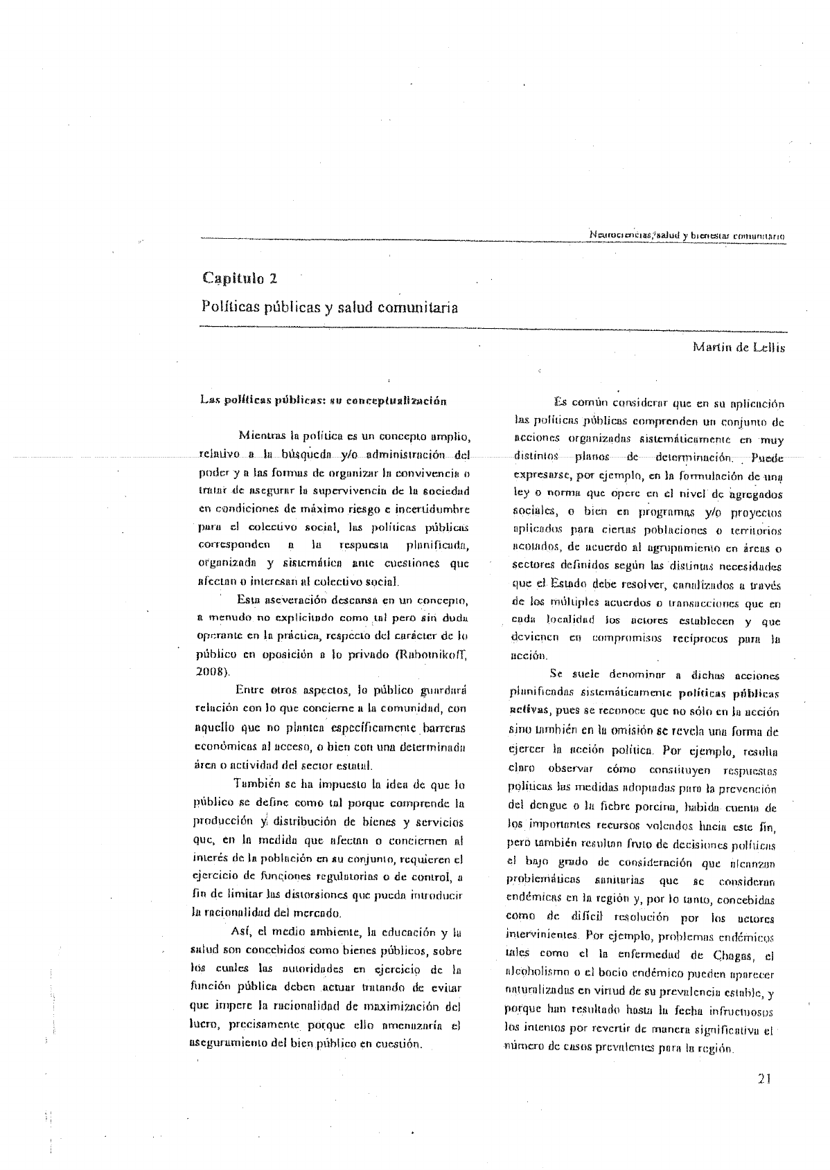 de Lellis, M Políticas públicas y salud comunitaria En_ Saforcada, E_ Mañas, M_ Alvarondo, E (Eds) Neurociencias, salud y bienestar comunitario (pp 21-31) San Luis_ UNSL