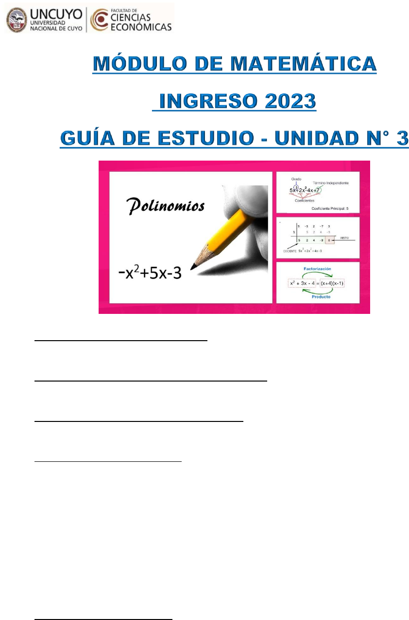 UNIDAD N° 3: Expresiones algebraicas, polinomios y factorización de polinomios