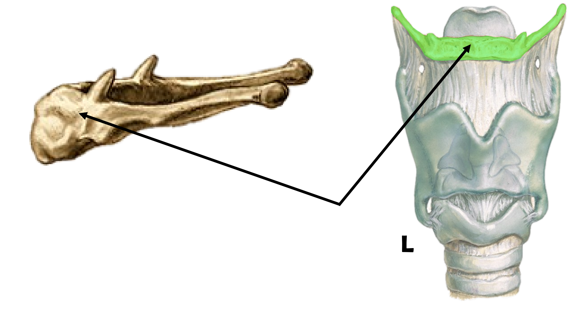 ANATOMÍA PA DEL Dr. Juan José Sánchez Médico Cirujano - UDO HUESO HIOIDES HUESO HIOIDES Dr. Juan José B. Sánchez Espinoza PARTES Cuerpo -Cara Anterior: *Crestas Transversal y Media *Porciones Superior y Anterior *Inserción: Digástrico, Estilohioideo Milohioideo, Hiogloso, Geniohioideo -Cara Posterior: *Membrana Tirohioidea *Bolsa Serosa de Boyer -Borde Superior -Borde Inferior *Inserción: Esternocleidohioideo, Omohioideo -Extremidades Derecha e Izquierda *2 Astas Mayores -Base -Cara Superior: *Inserción: Hiogloso, Constrictor Medio de la Faringe -Cara Inferior: *Membrana Tirohioidea *Inserción: Tirohioideo -Vértice: Ligamento Tirohioideo Lateral *2 Astas Menores -Ligamento Estilohioideo *Inserción: Geniogloso, Estilohioideo, Const. Medio de la Faringe C3 Sígueme en: No Olvides Suscribirte, Darle Like y Compartir!!! @ juan_sanchez1315 Dr. Juan José Sánchez Suscríbete