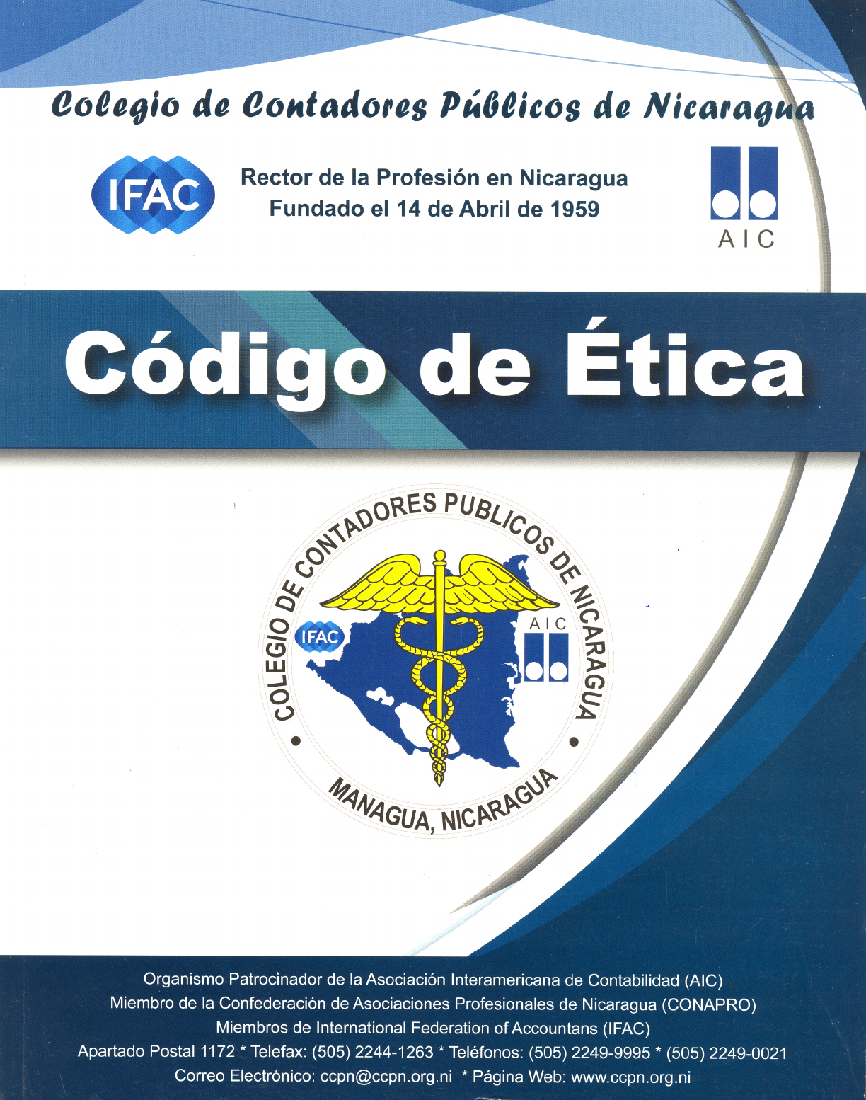 PROLOGO La Junta Directiva se complace en presentar a la membresía del Colegio de Contadores Públicos de Nicaragua, a entidades de carácter público y privado, a estudiosos y a público en general, el presente Código de Ética del Colegio de Contadores Públicos de Nicaragua, novedoso desde muchas perspectivas: El mismo deriva de una iniciativa de la Federación Internacional de Contadores (International Federation of Accountants (IFAC), a través del Consejo de Normas Internacionales de Ética para Contadores (International Ethics Standards Board of Accountants (IESBA‖). Este último organismo de carácter independiente, desarrolla y emite, en interés público, normas de ética de alta calidad y otros pronunciamientos para que sean utilizados por los profesionales de la contabilidad en todo el mundo; y anima a que fijen niveles elevados de ética para los profesionales de la contabilidad y promueve las prácticas de ética a nivel global. Este Código es de indudable interés público, pues fortalece la actuación del profesional contable en Nicaragua y ello debe contribuir al desarrollo de la economía nacional, pues al establecer normas profesionales de alta calidad y la promoción de la adherencia a las mismas, se suma a la convergencia internacional sobre dichas normas y eleva la especialización de la profesión a niveles de mayor calidad. Asimismo, este Código abandona el viejo modelo de redacción imperativo, similar a los códigos de índole penal, por un nuevo modelo didáctico, aleccionador, de educación y prevención. Informa al profesional de la contabilidad de las distintas situaciones que puede enfrentar en la variada actividad de su desempeño, advirtiéndole de peligros y de las salvaguardas que debe procurar en defensa de los intereses del cliente y de su propio prestigio. No obstante lo dicho anteriormente, se invita al profesional de la contabilidad para que, en aquellos casos en que, a pesar de los variados ejemplos en que se le advierte de no incurrir en situaciones de conflicto ético, puede elevar consulta al Colegio de Contadores Públicos de Nicaragua, para obtener del mismo el consejo, la orientación debida. El presente Código, como se dejo dicho, tiene como fuente de inspiración el denominado Código de Ética para Profesionales de la Contabilidad, publicado por el International Ethics Standards Board of Accountants (IESBA) de la International Federation of Accountants (IFAC) en julio de 2009 en lengua inglesa, el que fue traducido al español por el Instituto de Censores Jurados de Cuentas de España en marzo de 2010 y se reproduce con permiso deI IFAC. 1 Atinadamente, el Colegio de Contadores Públicos de Nicaragua (CCPN) constituyó una Comisión redactora técnico-jurídica, en aras de facilitar su mejor comprensión por el profesional de la contabilidad nicaragüense, y espera que tanto la membresía del Colegio como aquellos profesionales de la Contabilidad nicaragüenses, que no pertenecen al mismo e instituciones públicas y privadas que se relacionen de manera directa o indirecta con la actividad contable y con el profesional que la ejerce, hagan de este Código un instrumento normativo indispensable y orientador del ejercicio profesional. Dentro del marco de globalización de la profesión contable, hemos considerado oportuno dejar plasmado dentro de este Código muchos conceptos y/o términos en idioma inglés, no para que suplante nuestro idioma oficial el español, sino para que el profesional nicaragüense se identifique con propiedad sobre dichos términos y expresiones, y le ayuden, con mayor propiedad, en sus comunicaciones con sus clientes, profesionales u organismos de carácter internacional con quienes pueda debatir sobre los alcances de sus servicios. Estamos convencidos que este instrumento viene a modernizar la visión y concepción de la ética profesional del profesional de la contaduría pública nicaragüense y se convertirá en una importante herramienta de consulta y valoración para dichos profesionales, estudiantes y sociedad en general. JUNTA DIRECTIVA DEL COLEGIO DE CONTADORES PUBLICOS DE NICARAGUA 2 COLEGIO DE CONTADORES PUBLICOS DE NICARAGUA (CCPN) ÍNDICE CÓDIGO DE ÉTICA TITULO I: APLICACIÓN GENERAL DEL CÓDIGO .............................................................................. 7 CAPITULO I: INTRODUCCIÓN .................................................................................................................. 7 CAPITULO II: Introducción y Principios Fundamentales ............................................................................ 8 CAPITULO III: Integridad .......................................................................................................................... 13 CAPITULO IV: Objetividad ......................................................................................................................... 13 CAPITULO V: Competencia y diligencia Profesionales .............................................................................. 14 CAPITULO VI: Confidencialidad ............................................................................................................... 14 CAPITULO VII: Comportamiento Profesional ........................................................................................... 16 CAPITULO VIII: Conciencia Moral ............................................................................................................ 16 CAPITULO IX: Equidad y Justicia ............................................................................................................. 17 CAPITULO X: Independencia ..................................................................................................................... 17 CAPITULO XI: Responsabilidad ................................................................................................................. 17 CAPITULO XII: Veracidad y Lealtad ...........................................