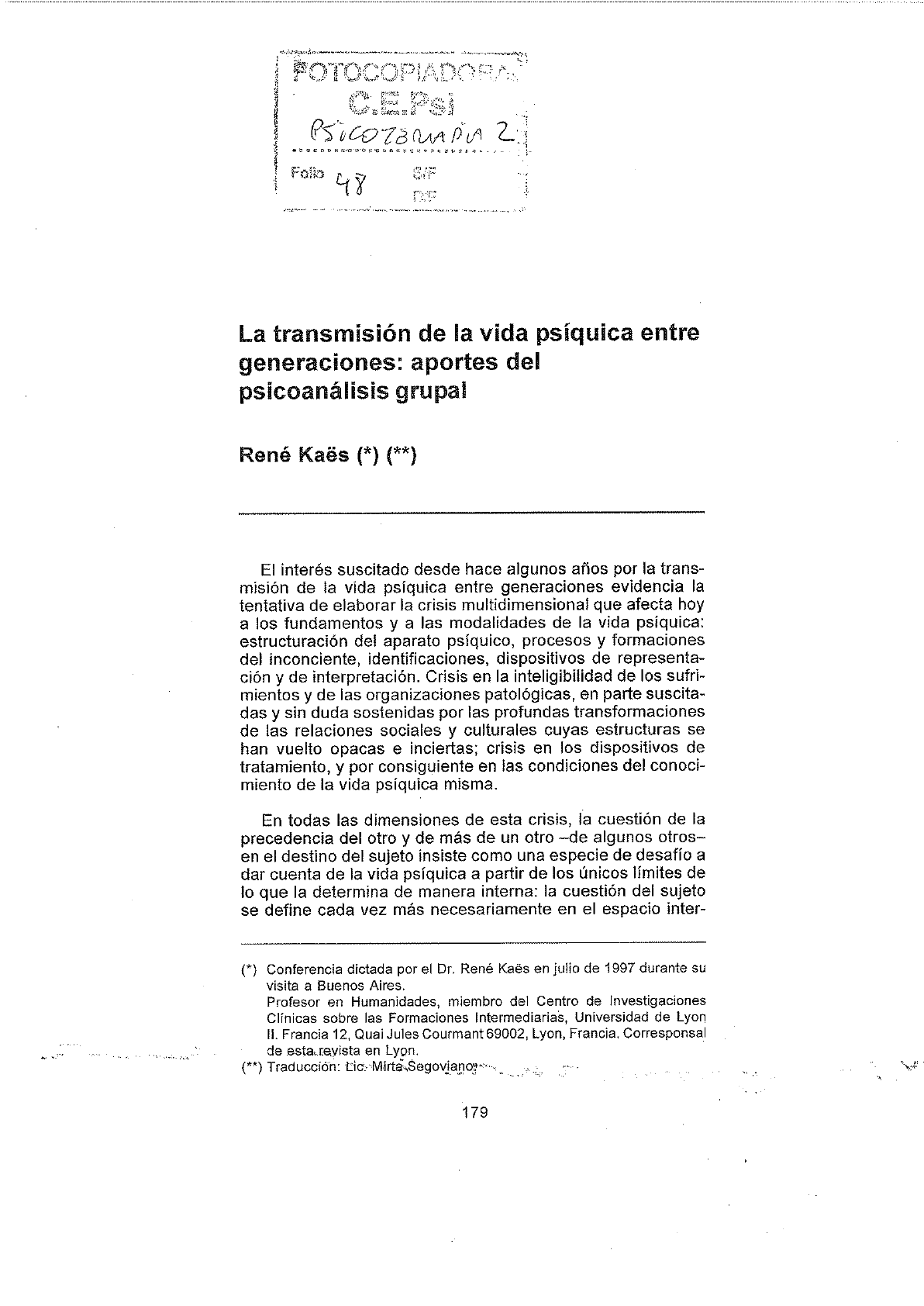48 KAËS (1998) La transmisión de la vida psíquica entre generaciones