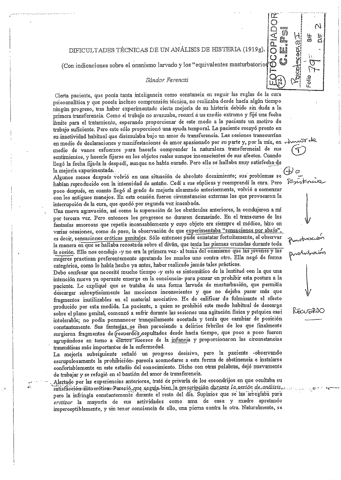 79 FERENCZI Dificultades tecnicas de un analisis de histeria