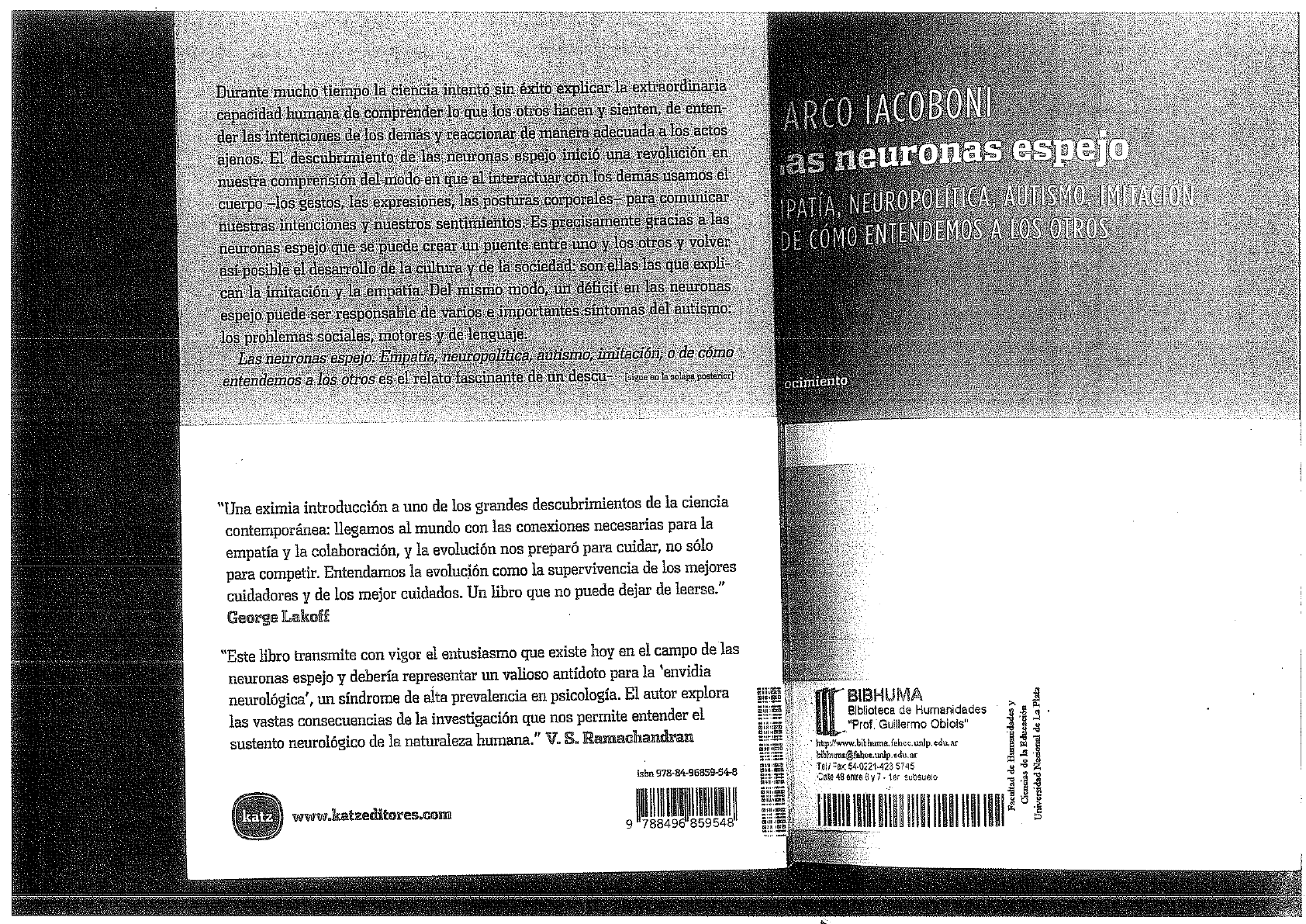96 IACOBONI M (2009) Las neuronas espejo-empatía, neuropolítica, autismo, imitación o de cómo entendemos a los otros