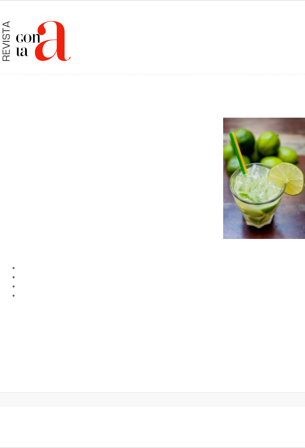 Revista con la A ¿Te apetece una Caipirinha? nº 74 - marzo de 2021 pag. 1 nº 74 LABERINTOS DE LA MASCULINIDAD ¿Te apetece una Caipirinha? La caipirinha, o caipiriña como la conocemos en los países “ñ”, es el cóctel más popular de Brasi l y una bebida reconocida internacionalmente que te vamos a enseñar a preparar. Es muy fácil: Ingredientes: Cachaça Limas (o limones en su defecto) Azucar moreno Hielo picado Preparación: Lavamos muy bien las limas o limones y las cortamos en gajos. Colocamos los trozos de lima en un vaso de boca ancha y agregamos una cucharada de azúcar moreno. Con un macerador o mortero, aplastamos la lima para que libere su jugo, mezclándose con el azúcar. Agregamos bastantes cubitos de hielo y vertemos la cachaça a gusto ¡Y listo! Como siempre, os aconsejamos que bebáis con moderación ¡Salud! Secciones: Beber, Con placer https://conlaa.com/wp-content/uploads/2021/03/caipirinha.png https://conlaa.com/category/beber/ https://conlaa.com/category/con-placer/ Revista con la A ¿Te apetece una Caipirinha? nº 74 - marzo de 2021 pag. 2 Revista con la A ¿Te apetece una Caipirinha?