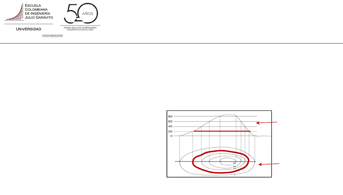 Departamento de Matemáticas Asignatura: Cálculo Diferencial Laboratorio 2 2023-2 Competencias: SP-2, RM-1, C-1,PA2 Objetivo: Utilizar los conceptos de continuidad y derivada para resolver un problema de aplicación. TRAZADO PRELIMINAR DE UNA VIA La curva de nivel es la línea que une los puntos de un mapa que tienen idéntica altitud. La gráfica de la derecha muestra un ejemplo de las curvas de nivel para la altura sobre el nivel del mar de una montaña. Para realizar el siguiente ejercicio nos referiremos al mapa que se anexa en la siguiente página. Se requiere el trazado de una vía rural desde ¨La Cascada¨, ubicada en el mapa anexo por la letra C, hasta ¨El Molino¨, ubicado con la letra M. Tenga en cuenta que en al mapa las líneas más claras muestran una diferencia de altura de 20 m en forma monótona entre una y otra ascendiendo o descendiendo de acuerdo al caso. Algunos estudios previos indican que no es posible la construcción de un puente que cruce el lago ¨Azulo¨ que se encuentra en medio de las dos ciudades por la inestabilidad del terreno y por esto, se sugiere un trazado preliminar eligiendo un punto D en el plano, que una a La Cascada y El Molino. Los alcaldes de los dos pueblos necesitan tomar decisiones sobre el trazado de la vía y para esto Uds. les presentarán un estudio preliminar, para que ellos tengan diferentes alternativas para la construcción de la vía. Para tal fin, plantee una propuesta para el trazado preliminar de la vía en donde se presente el estudio preliminar del proyecto, con base en el mapa dado en la figura y que proporcione la información requerida de acuerdo a las siguientes condiciones: 1. Coordenadas en el plano de La Cascada y El Molino, así como su altura sobre el nivel del mar. 2. Elegir el punto D, en el plano, teniendo en cuenta que en el trazado de las vías no podrá presentarse pendientes mayores del 12% en ascensos verticales para permitir que los automóviles puedan transitar por la vía. Debe determinar la distancia entre cada una de las ciudades y el punto D; sus diferencias de alturas, suponiendo tramos rectos. Atura Plano Departamento de Matemáticas Asignatura: Cálculo Diferencial Laboratorio 2 2023-2 Competencias: SP-2, RM-1, C-1,PA2 3. El trazado preliminar se hará inicialmente con las proyecciones de cada una de las ubicaciones en el plano y posteriormente se realizarán los ajustes verticales. Teniendo en cuenta lo anterior y que las intersecciones de las vías en el plano no pueden ser angulares, es preciso definir un empalme entre las rectas CD y DM con la ayuda de una parábola que sea tangente a cada una de ellas. Determinar los puntos en el plano, así como su altura sobre el nivel del mar. Se requiere que la diferencia entre las primeras componentes de los puntos de tangencia sea 100 metros. 4. Realice la representación gráfica de la situación sobre el plano de las curvas de nivel definiendo los puntos de intersección de la curva con las rectas. 5. Para analizar el trazado vertical de la vía, con un compás (ábralo con ayuda de la cuadrícula en 25 m) y sobre sobre su propuesta del trazado de la vía en el plano de las curvas de nivel, tome las alturas sobre el nivel del mar de puntos cada 25 metros a partir de La Cascada hasta llegar a El Molino, construya una tabla y realice la representación gráfica de la distancia vs altura sobre el nivel del mar. (utilice tecnología y suponga que cada tramo tomado corresponde con la distancia sobre la carretera, particularmente en las partes curvas). Departamento de Matemáticas Asignatura: Cálculo Diferencial Laboratorio 2 2023-2 Competencias: SP-2, RM-1, C-1,PA2 6. Con base en su representación gráfica, trace dos tramos de vías rectas que no sobrepasen las pendientes máximas. Nuevamente realice el empalme de las rectas con una parábola, estableciendo claramente sus condiciones. Realice la representación gráfica de la situación en un plano cartesiano. 7. Realice una tabla que indique de forma clara, los tramos que necesiten relleno o construcción de puentes y los tramos que necesiten excavación o construcción de túneles. Esta información se entregará a la oficina de presupuestos para verificar la viabilidad de la vía.