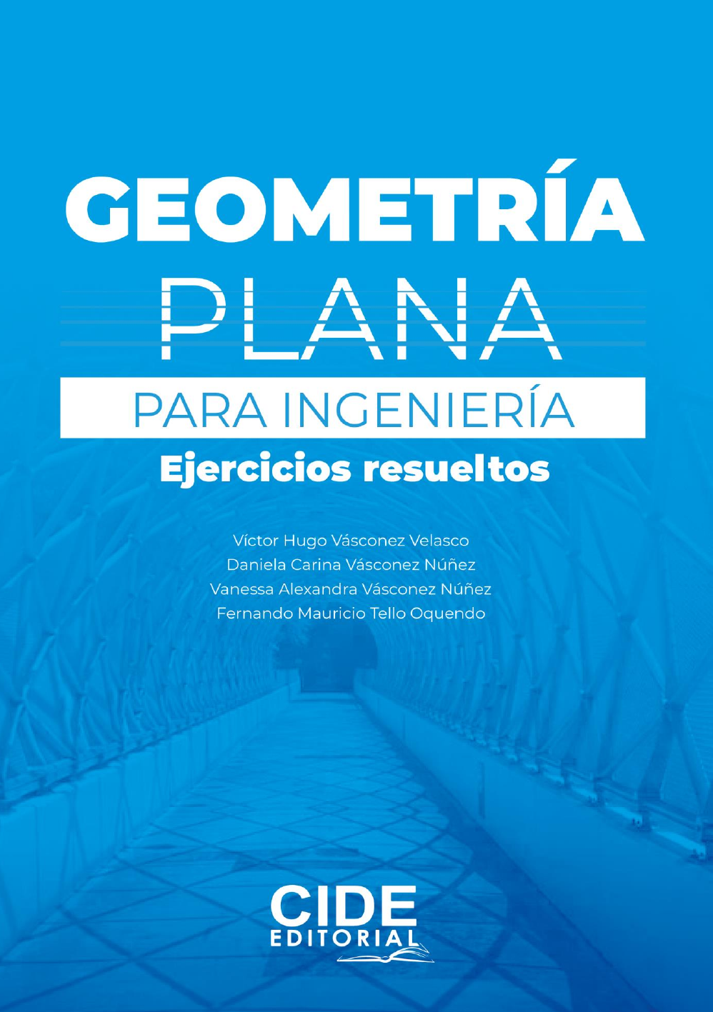 0 1 1 2 3 AUTORES Víctor Hugo Vásconez Velasco Daniela Carina Vásconez Núñez Vanessa Alexandra Vásconez Núñez Fernando Mauricio Tello Oquendo 4 5 Reservados todos los derechos. Está prohibido, bajo las sanciones penales y el resarcimiento civil previstos en las leyes, reproducir, registrar o transmitir esta publicación, íntegra o parcialmente, por cualquier sistema de recuperación y por cualquier medio, sea mecánico, electrónico, magnético, electroóptico, por fotocopia o por cualquiera otro, sin la autorización previa por escrito al Centro de Investigación y Desarrollo Ecuador (CIDE). Copyright © 2023 Centro de Investigación y Desarrollo Ecuador Tel.: + (593) 04 2037524 http.:/www.cidecuador.org ISBN: 978-9942-616-32-6 https://doi.org/10.33996/cide.ecuador.GP2616326 Dirección editorial: Lic. Pedro Misacc Naranjo, Msc. Coordinación técnica: Lic. María J. Delgado Diseño gráfico: Lic. Danissa Colmenares Diagramación: Lic. Alba Gil Fecha de publicación: abril, 2023 6 7 La presente obra fue evaluada por pares académicos experimentados en el área. Catalogación en la Fuente Geometría Plana para la Ingeniería. Ejercicios resueltos / Víctor Hugo Vásconez Velasco, Daniela Carina Vásconez Núñez, Vanessa Alexandra Vásconez Núñez y Fernando Mauricio Tello Oquendo.--Ecuador: Editorial CIDE, 2023. 288 p.: incluye tablas, figuras; 17,6 x 25 cm. ISBN: 978-9942-616-32-6 8 9 Semblanza de los Autores Víctor Hugo Vásconez Velasco Ecuatoriano, reside en Riobamba, es Ingeniero Mecánico (1983) por la Escuela Superior Politécnica de Chimborazo-Ecuador, Especialista en Computación Aplicada al Ejercicio Docente (2002) por la Escuela Superior Politécnica de Chimborazo-Ecuador, Magíster en Docencia Universitaria e Investigación Educativa (2003) por la Universidad Nacional de Loja. Se desempeñó por 34 años como profesor principal en la Facultad de Mecánica de la Escuela Superior Politécnica de Chimborazo en las Áreas de Ciencias Básicas, con las asignaturas de Geometría Plana y Trigonometría. Se desempeñó como Director de la Carrera de Ingeniería Mecánica y Vicedecano de la Facultad de Mecánica de la Escuela Superior Politécnica de Chimborazo. Daniela Carina Vásconez Núñez Ecuatoriana, reside en Riobamba, es Ingeniera Mecánica (2011) por la Escuela Superior Politécnica de Chimborazo-Ecuador, Máster en Tecnología Energética para el Desarrollo Sostenible (2014), Máster en Cultura Científica y de la Innovación (2021) y Doctora (Ph.D.) en Ingeniería y Producción Industrial (2019) por la Universidad Politécnica de Valencia-España. Profesora e investigadora universitaria de la Facultad de Mecánica de la Escuela Superior Politécnica de Chimborazo en el área de energía y ciencias básicas. Miembro del grupo de investigación GIDENM; autora de varios artículos científicos publicados en revistas indexadas regionales y de alto impacto; ha participado en varios certámenes académicos en el área de energía a nivel nacional e internacional. 10 Vanessa Alexandra Vásconez Núñez Ecuatoriana, reside en Riobamba, es Ingeniera Electrónica en Telecomunicaciones y Redes (2012) por la Escuela Superior Politécnica de Chimborazo-Ecuador, Máster Universitario en Ingeniería de Computadores y Redes (2016) por la Universidad Politécnica de Valencia-España, Máster Universitario en Ingeniería Matemática y Computación (2022) por la Universidad Internacional de la Rioja - España. Fue docente universitaria en la Escuela Superior Politécnica de Chimborazo y en la Universidad Nacional de Chimborazo, actualmente se desempeña como Técnico de Apoyo Académico en la Universidad Nacional de Chimborazo. Autora de artículos de investigación publicados en revistas indexadas. Ha participado en cursos, talleres, seminarios y congresos a nivel nacional e internacional. Fernando Mauricio Tello Oquendo Ecuatoriano, reside en Riobamba, es Ingeniero Mecánico (2011) por la Escuela Superior Politécnica de Chimborazo-Ecuador, Máster en Tecnología Energética para el Desarrollo Sostenible (2014), Máster en Cultura Científica y de la Innovación (2021) y Doctor (Ph.D.) en Ingeniería y Producción Industrial (2019) por la Universidad Politécnica de Valencia-España. Profesor e investigador universitario de la Facultad de Mecánica de la Escuela Superior Politécnica de Chimborazo en el área de energía. Miembro del grupo de investigación GIDENM; autor de varios artículos científicos publicados en revistas indexadas regionales y de alto impacto, ha participado en varios certámenes académicos en el área de energía a nivel nacional e internacional; miembro de comités editoriales de revistas regionales, par revisor de varias revistas indexadas internacionales. 11 Dedicatoria A la memoria de mis padres Teresita y Luis, por su apoyo, amor incondicional y su ejemplo de perseverancia. Victor Hugo Vásconez Velasco 12 13 Índice Semblanza de los autores ……………………………………………. 9 Dedicatoria ………………..…………………………………………. 11 Introducción ………………….………...……………………………. 15 Capítulo 1 Segmentos rectilíneos 1.1 Introducción teórica ……...………………………………………. 19 1.2 Ejercicios de segmentos rectilíneos …….………………………. 23 Capítulo 2 Ángulos en el plano 2.1 Introducción teórica ………………………...……………………. 62 2.1.1 Unidades principales para ángulos ……………………...…. 62 2.1.2 Tipos de ángulos ……………………………….…………. 62 2.2 Ejercicios resueltos de ángulos en el plano ………………………. 66 Capítulo 3 Polígonos 3.1 Introducción teórica ……………………...………………………. 104 3.2 Ejercicios resueltos de polígonos ………...………………………. 105 14 Capítulo 4 Triángulos 4.1 Introducción teóri