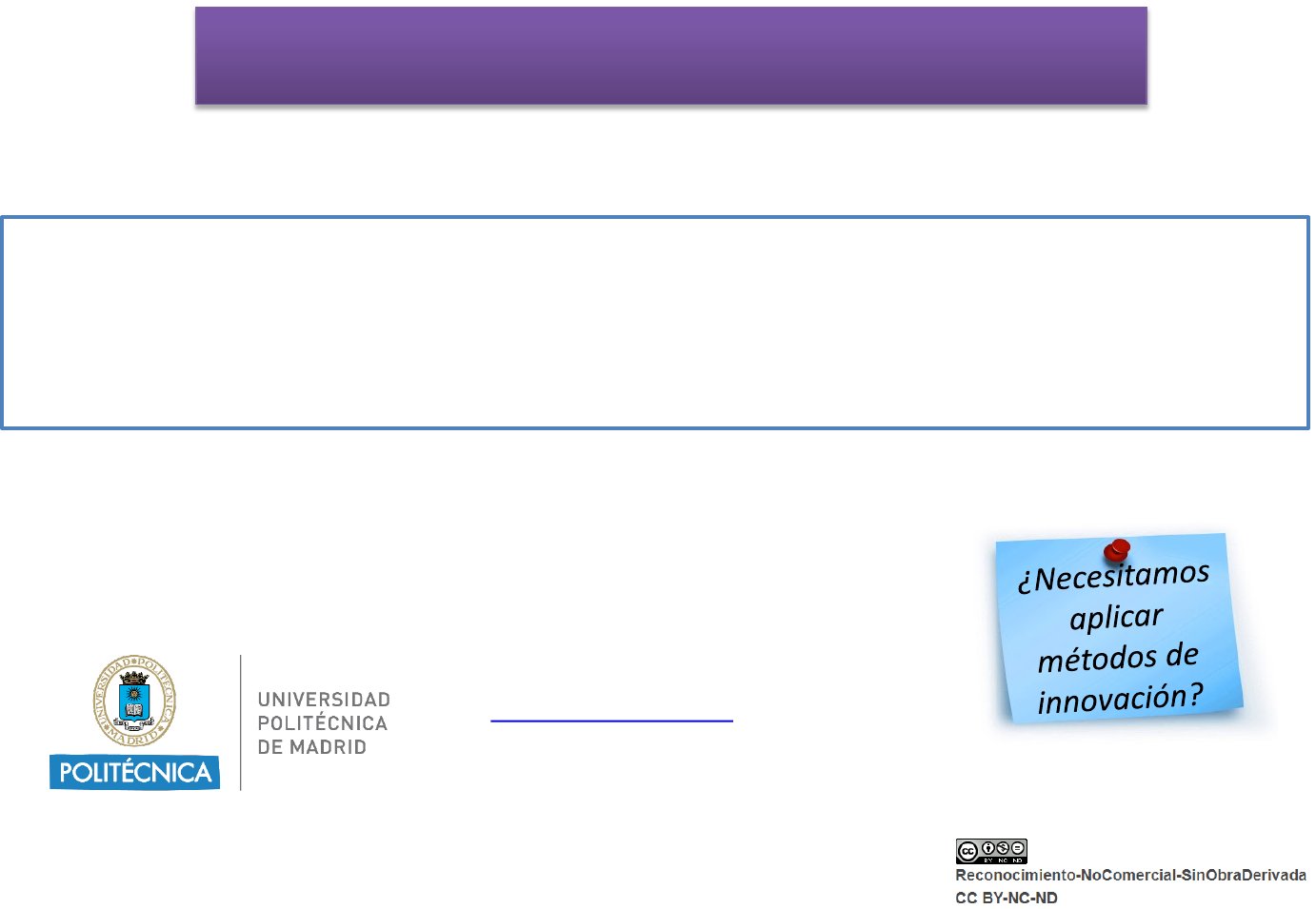 Ángel Fidalgo Blanco angel.fidalgo@upm.es @afidalgo111 http://www.innovacioneducativa.es/ CAMINANTE Y CAMINO. 1. El caminante. El profesorado que innova. 2. El camino: terreno, etapas y alcance. 3. La meta. Llegar de una pieza. LA METÁFORA DEL CAMINO PARA CONOCER EL ESTADO DEL ARTE DE LA APLICACIÓN DE LA INNOVACIÓN EDUCATIVA mailto:angel.fidalgo@upm.es CONOCER EL TERRENO CONOCER EL PERFIL DEL CAMINANTE CONOCER LOS LUGARES DONDE HAN LLEGADO METÁFORA DEL CAMINO 1. PERFIL CAMINANTE. CARA Y CRUZ NO LO HACE POR DINERO NO LO HACE POR RECONOCIMIENTO NO LO HACE POR CONSEGUIR “ASCENSOS” DINERO FAMA PODER 1.1. LA CARA …EL PROFESORADO ES: 1.1 LA CARA EMPRENDEDOR INCONFORMISTA VOCACIONAL AVACACIONAL DE FORMA INDIVIDUAL INICIANDO EL CAMINO D-ESCASO IMPACTO TRANSFORMADOR C-LENTO AVANCE DE LA INNOVACIÓN 1.2 LA CRUZ VISIÓN LOCAL (ASIGNATURA + ALUMNADO) E-DIFICULTAD PARA MEDIR ORIGINA: B-GRAN REPETICIÓN DE TRABAJOS A-DIVERGENCIA SIN PUESTA EN COMÚN Una definición (*): “La innovación educativa es la aplicación de una idea que produce cambio planificado en procesos, servicios o productos que generan una mejora en los objetivos formativos” INDIVIDUALISTA LOCALISTA Un profesor, buen profesor, nunca ha utilizado presentaciones por ordenador en sus clases teóricas. Después de asistir a una presentación de un producto, está impresionado por el apoyo audiovisual que ha utilizado el comercial. Le surge la idea de aplicarlo en sus clases. Lo hace y consigue que el aprendizaje mejore. ¿Está innovando? ¿Publicarían esa “innovación” en algún congreso? (*) María Luisa Sein-Echacule et al. Technology behaviors in education innovation. Computers in Human Behavior. http://dx.doi.org/10.1016/j.chb.2016.11.049 2 El terreno ¿Qué es la Innovación Educativa? http://dx.doi.org/10.1016/j.chb.2016.11.049 INNOVACIÓN ASIGNATURA UNIVERSIDAD /CENTRO REVISTA CREAR HÁBITOS / CAMBIO DE ROL GENERAR UNA PUBLICACIÓN CIENTÍFICA MEJORA ESTRATÉGICA – BUENA PRÁCTICA CADA ALCANCE TIENE: • PROCESOS PROPIOS • INDICADORES • ESTRATEGIA 2.1 El alcance ¿Hasta dónde queremos llegar? IDENTIFICACIÓN DE LA MEJORA A NIVEL GLOBAL PROTOTIPO PRUEBAS Y VALIDACIÓN APLICACIÓN SE APLICA A MEDIDA QUE SE DESARROLLA ¿CÓMO SE HACE CUALQUIER INNOVACIÓN? ¿CÓMO SE HACE LA INNOVACIÓN EDUCATIVA EN EL “AULA”? ¿DE VERDAD FUNCIONA? ¿REQUIERE TANTO ESFUERZO? ¿EL PRÓXIMO CURSO SE UTILIZARÁ? ¿SOLO VALE PARA LA ASIGNATURA/PROFESORADO QUE LA DISEÑÓ? 2.2. Las etapas Se va a utilizar en otras asignaturas distintas del centro o del sector o en cualquier parte del mundo. La voy a utilizar el próximo curso. Hago otra cosa ya que… Pido otro proyecto, lo he publicado, no me han dado otro proyecto, He conseguido las mejoras ¿Indicadores? ¿Cómo lo he comprobado? Se intuye EFICACIA EFICIENCIA SOSTENIBLE TRANSFERIBLE ¿Las mejoras se han obtenido a costa de trabajar más? = esfuerzo + mejoras = mejoras - esfuerzo 3. Llegar sí, pero de una pieza. Las medallas a conseguir al llegar a la meta Referencias El camino a recorrer. Diapositiva 2. [1] La cara del personal docente. Diapositiva 5 [2] Definición innovación educativa. Diapositiva 7 [3] Características de una buena práctica. Diapositiva 10 [4] [5] [1] A. Fidalgo Blanco, “¿Por qué la innovación educativa no es un camino de rosas? – Innovación Educativa,” Blog Innovación Educativa. [Online]. Available: https://innovacioneducativa.wordpress.com/2015/04/07/por-que-la-innovacion-educativa-no-es-un-camino-de- rosas/. [Accessed: 09-Apr-2019]. [2] A. Fidalgo Blanco, “¿Un buen docente debe ser una persona emprendedora, innovadora e investigadora? – Innovación Educativa,” Blog de Innovación Educativa. [Online]. Available: https://innovacioneducativa.wordpress.com/2017/11/13/un-buen-docente-debe-ser-una- persona-emprendedora-innovadora-e-investigadora/. [Accessed: 09-Apr-2019]. [3] M. L. Sein-Echaluce, Á. Fidalgo-Blanco, and G. Alves, “Technology behaviors in education innovation,” Comput. Human Behav., vol. 72, pp. 596–598, 2017. [4] Á. Fidalgo-Blanco and M. L. Sein-Echaluce, “Método MAIN para planificar, aplicar y divulgar la innovación educativa,” Educ. Knowl. Soc., vol. 19, no. 2, pp. 83–101, Jul. 2018. [5] A. Fidalgo Blanco, “Cómo identificar una buena práctica de innovación educativa – Innovación Educativa.” [Online]. Available: https://innovacioneducativa.wordpress.com/2015/11/30/como-identificar-una-buena-practica-de-innovacion-educativa/. [Accessed: 09- Apr-2019]. Número de diapositiva 1 Número de diapositiva 2 Número de diapositiva 3 Número de diapositiva 4 Número de diapositiva 5 Número de diapositiva 6 Número de diapositiva 7 Número de diapositiva 8 Número de diapositiva 9 Número de diapositiva 10 Número de diapositiva 11