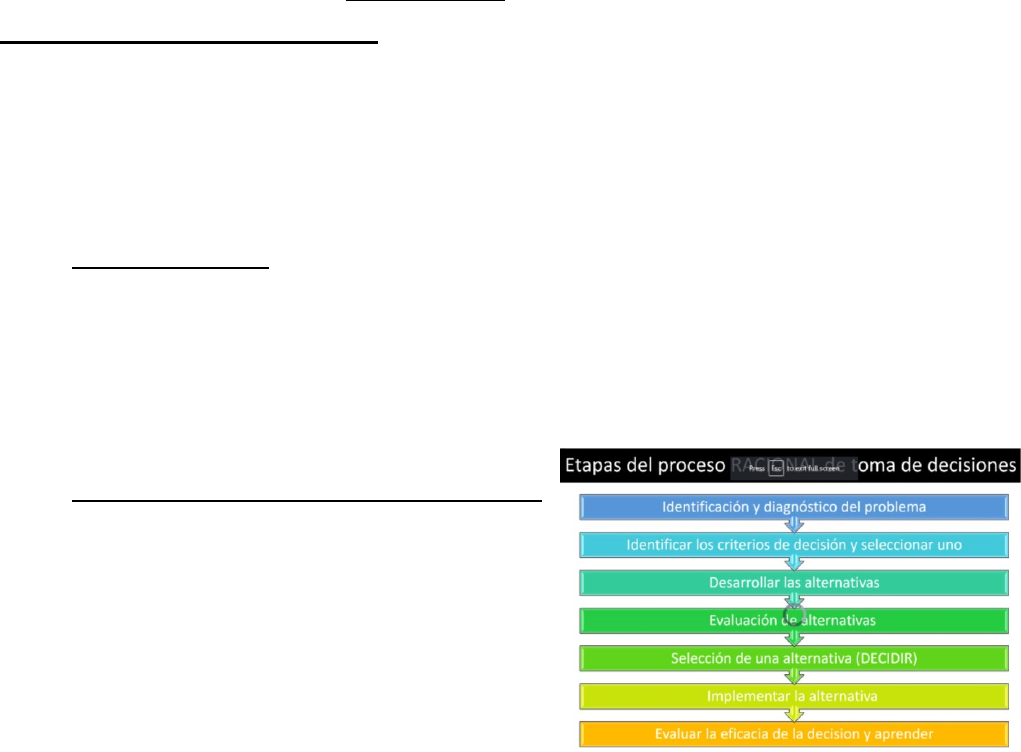 TDD – CLASE 9 PROCESO DE TOMA DE DECISIÓN → un proceso que tiene etapas (hay comienzo y fin) - decisión - supone un comienzo y un fin, cambio - es elegir entre alternativas - Toma de decisiones - un proceso mental-cognitivo de 1 persona o grupo que lleva a conocer la elección entre las distintas alternativas - no decidir también es tomar una decisión - Tomar la decisión es una etapa, la última - El proceso de toma de decisión arranca por el planteo de la pregunta Etapas del proceso RACIONAL de toma de deci 1) identificación y planteo del prob 2) identificar los criterios de decisión y seleccionar uno 3) desarrollar las alternativas 4) evaluamos alternativas 5) decidir→ seleccionar una alternativa 6) implementación de la alternativa 7) evaluación de la decisión y aprender - El proceso de toma de decisión arranca por el planteo de la pregunta - El segundo paso es tomar elecciones, que quiero yo, que me motiva. Es el criterio por el cual voy a decidir. Cuando elegimos qué estudiar ponemos en la mesa muchos criterios para elegir, qué buscamos. Si mi criterio es maximizar ingresos porque soy una empresa ya dejó afuera opciones. - Lo tercero ahí sí es buscar alternativas. ¿Qué le pasa a la mente? buscar alternativas es costoso porque lleva tiempo. Tenes que averiguar. A veces pasa que uno tiene mejor información que otros entonces toma mejores decisiones. Pero es gastar energía y tiempo, no todos en la vida real tenemos acceso a la misma información. La realidad práctica es que no tenemos todos la misma información. - Hay que evaluar las elecciones que tiene cada uno, pros y contras, flujo futuro. Una vez que evaluamos que sigue? llegar a la decisión. - Para llegar a la decisión hubo un proceso previo bastante importante. - Y después viene la implementación y la evaluación de las decisiones que hago. El proceso lógico racional sigue estos pasos. Ejemplo RAF → ejemplo 1 Los aviones en la segunda guerra mundial de Inglaterra. En un momento, Alemania quiere ir por el sur de Europa para África. Los ingleses quieren ir a espiar lo que pasa. Cual es el problema que tienen los ingleses que resolver? que les bajan muchos aviones. Las alternativas hay que pensarlas, entonces fueron técnicos a estudiar. El piloto cuando maneja usa la parte automática de la mente que lleva horas de aprendizaje. No puedo cambiar cosas muy drásticas en el avión xq el piloto funciona bastante en automático. Pensaron en hacer una doble chapa. Si quiero poner + peso al avión… tengo que sacar de otro lado y aparte debe ser simétrico para que vuele bien. Si quiero acorazar doble tengo que poner el mismo porcentaje de ambos lados. Solamente van a acorazar doble en algunas partes del avión, donde más se impacta. Se implementa eso y se evalúa. Esto resultó en algo mucho peor. AUTONOMÍA→ Combustible PODER DE IMPACTO→ La bomba Pone doble chapa en toda la zona de > impacto, lo aplican y evalúan → les empezó a ir mucho peor ¿Qué hicimos mal? Nos somos + impulsivos y de + sentimientos...VS...Los Ingleses miran muchos datos para tomar decisiones. A quién llamaron para ver el problema de los aviones? Llamaron a un hungaro judio, Wald (un matemático). Los técnicos ingenieros de aviación encontraron que no había más alternativas para elegir. Le contaron lo que habían hecho y Abraham dice que falta algo. Que acorase el doble donde NO hay impacto de bala. Todos creían que estaba loco. Pero estaba en lo correcto. Justamente todos los aviones que habían vuelto, es que arranco leyendo mal el hit map. Ese mapa que usaron de guía fueron los que volvieron, osea los que habían logrado moverse y sobrevivir a pesar de los balazos. Las partes más letales eran las que justamente no estaban pintadas, porque suponemos que ahí es donde los aviones caían y no lograron volver. Los que volvieron es xq sobrevivieron a los balazos y no le pegaron tiro en las partes fundamentales (sin pintar) → Estaba mal indicado el problema, eso ocurre muy seguido. Según Harvard el 30% de los errores sucede por el mal diagnóstico de los problemas. En el fondo las decisiones en el mundo real son más complejas, costosas. ¿Por qué Abraham Wulf se dio cuenta rápido de que el problema no estaba ahí? porque era matemático hacia estadística. Lo primero que mira un estadístico es la calidad de los datos de muestreo. Como los generaste, que no sean sesgados Hay una muestra sesgada que sería la muestra de supervivencia. La complejidad real nos aleja del consumidor que va al super, hay más. Estos puntos eran las zonas NO vulnerables xq esos aviones pudieron volver, entonces se equivocaron en el paso 1 de identificar el problema → mal diagnóstico inicial del problema! Wald se dio cuenta rápido de esto xq es un tipo que hace estadística → lo 1ro q mira es el muestreo y la confiabilidad en los datos, como estos datos se generan. Hay una muestra SESGADA, es este caso. Este problema no lo ven todos de entrada, hay que esforzarse + para la toma de decisión, decidir es complejo ¿Qué dice la teoría neoclásica? el modelo de caja negra → La economía mira: 1) Factores ambientales. → los puedo observar - Que hay factores de marketing, las 4 P (Producto, precio, promoción, pto de vta) - Hay que tener en cuenta el PESTEL que nos permite entender dónde estoy parado para tomar una decisión (modelo para estudiar el mercado) 2) La caja negra del consumidor → no puedo observar ni meterme en la mente de las personas - Las características del consumidor - actitudes, que lo motiva, percepciones, personalidad, conocimientos, etc - La forma de tomar decisiones y sus motivaciones del consumidor. - distinguir prob, info research, alternativas, evaluacion, decision, evaluacion, behaviour 3) Después veo la respuesta, que eligió, que marca. La economía no se mete en la caja negra de las personas, solo se queda en los factores ambientales, y los psicólogos presentan la caja negra. ¿Qué requiero p